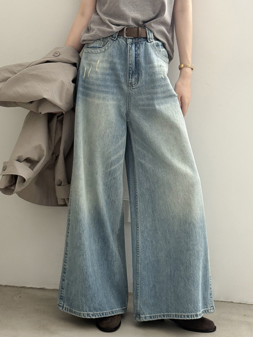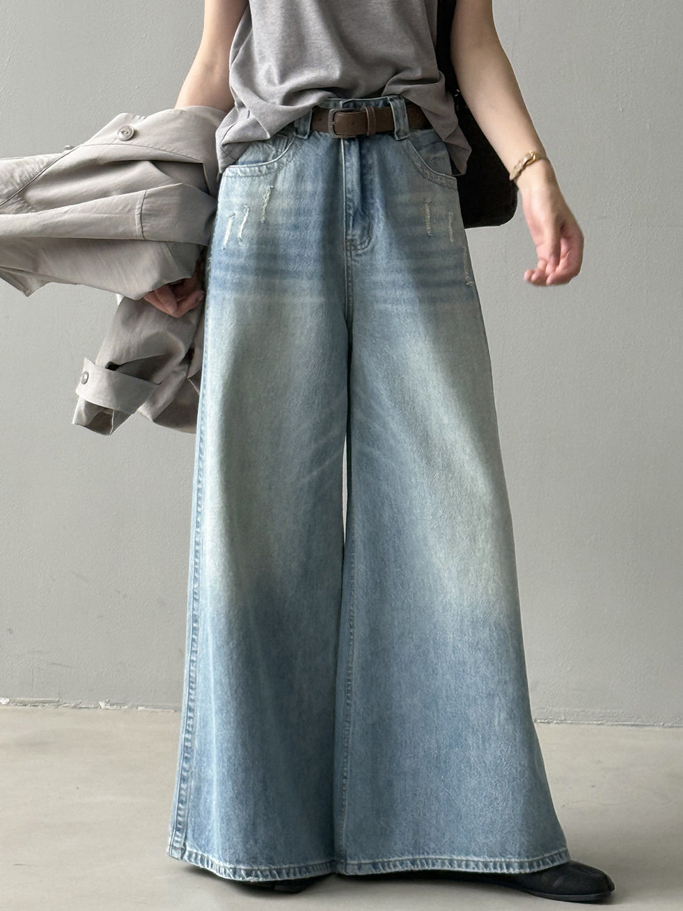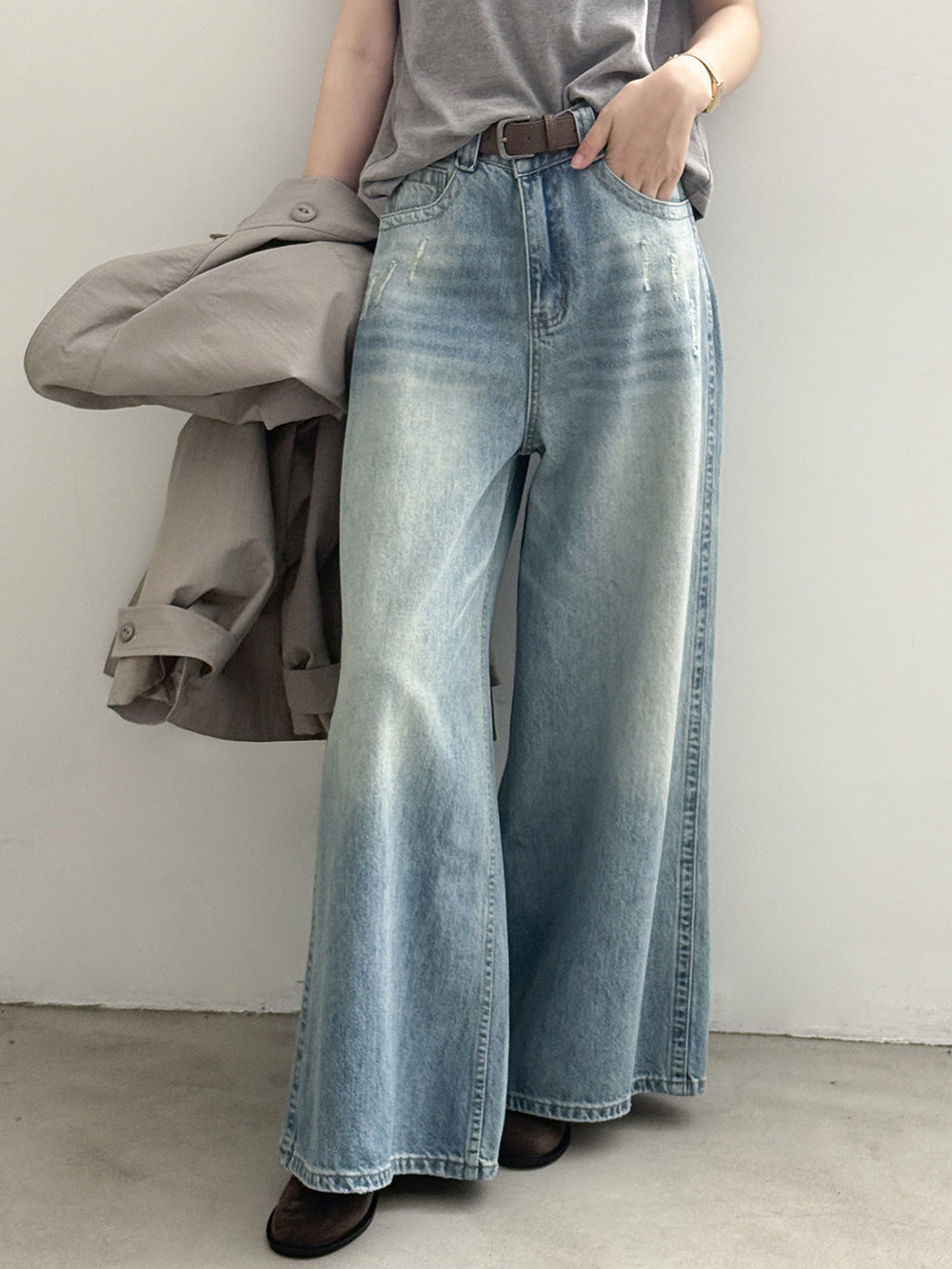 程よいルーズさとハイウエストデザインで脚長&華奢見え効果抜群なデニムパンツ。