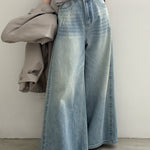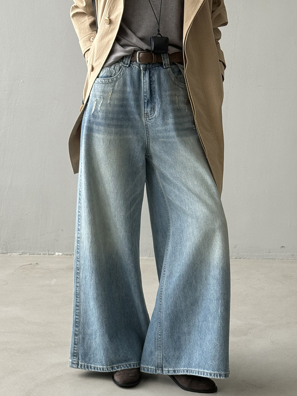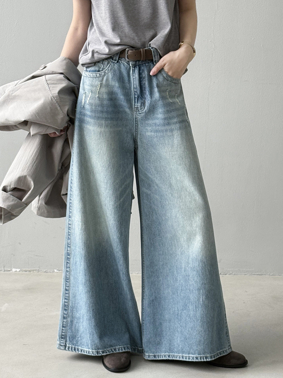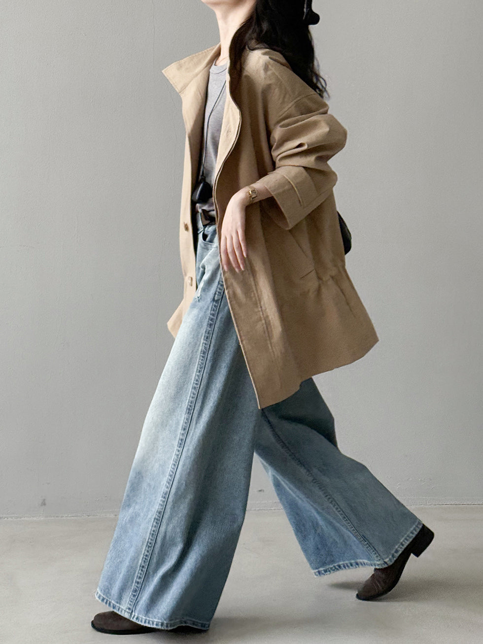 ☆やや深めの股上で腰回りにゆとりを出し、股下から裾にかけて緩やかにかけたワイドシルエット。