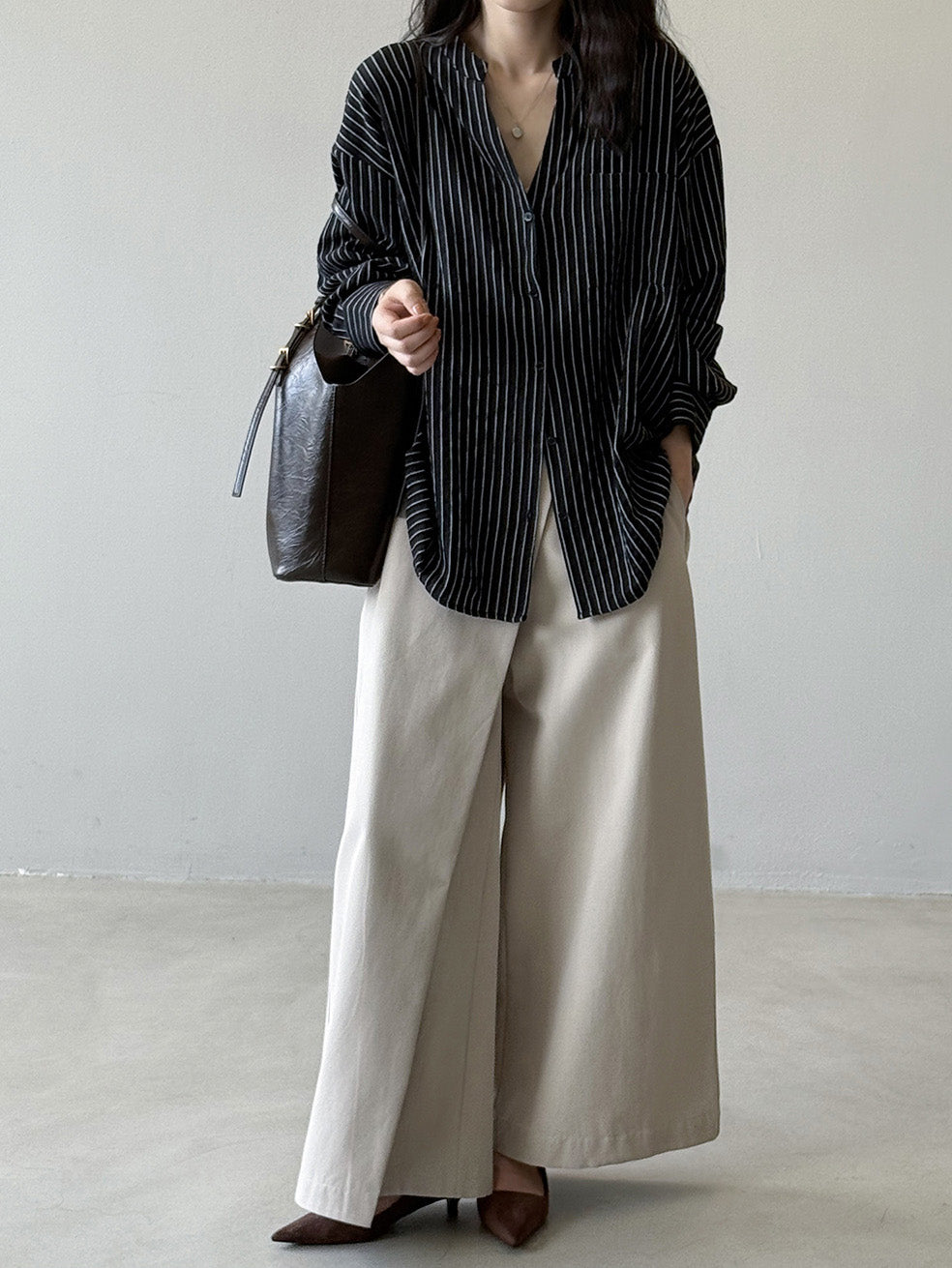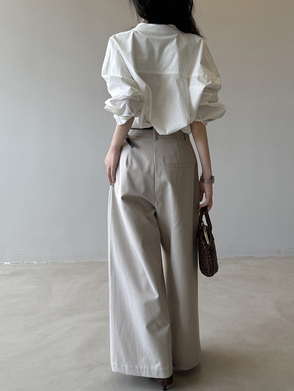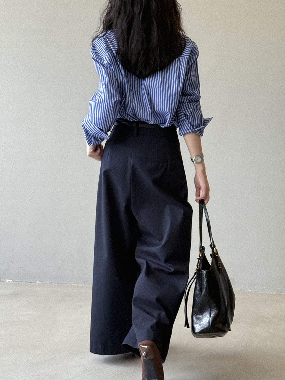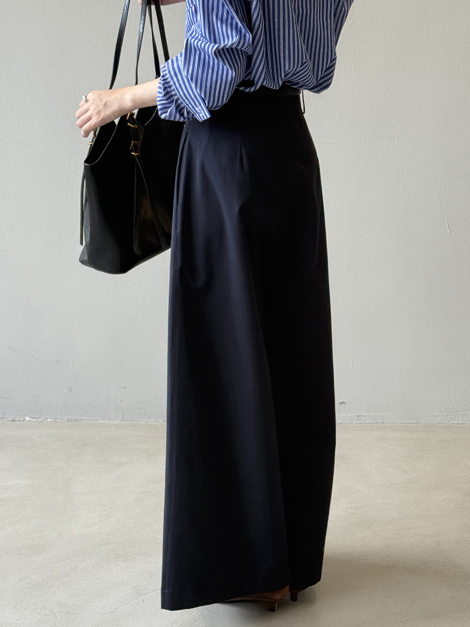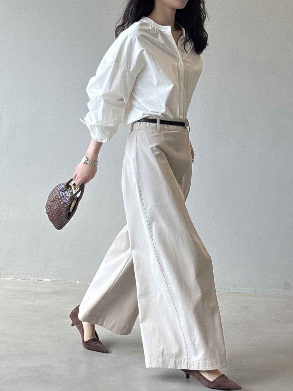 ☆ワイドなシルエットで脚のラインを拾わないのも嬉しいポイント。
