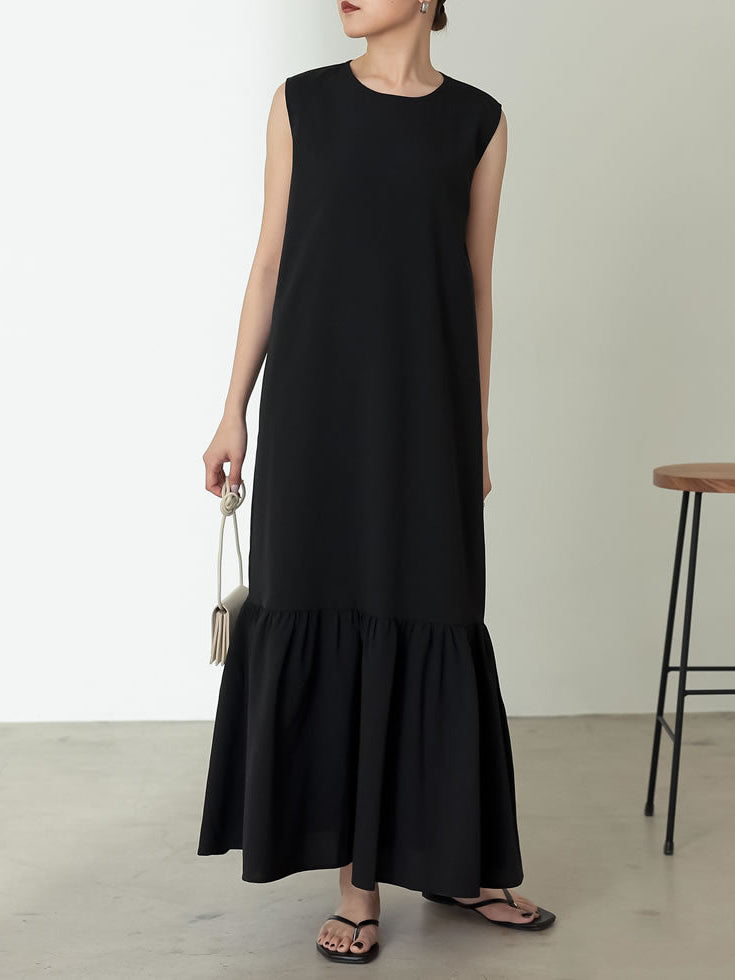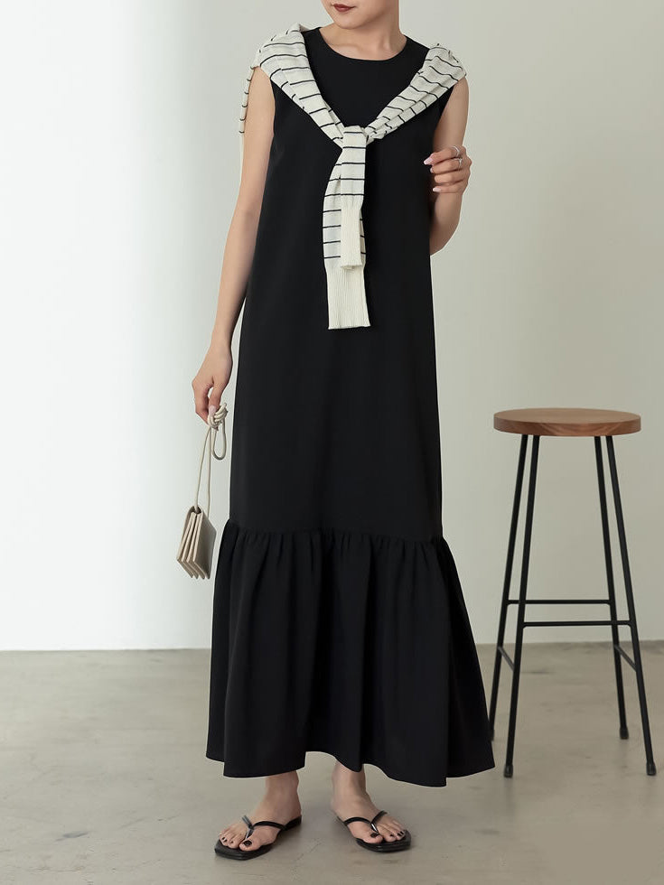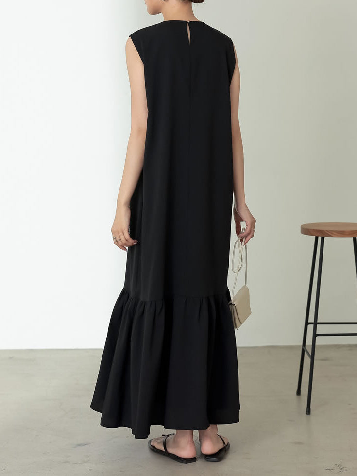クレープノースリ―ブティアードフレアワンピース 3色入