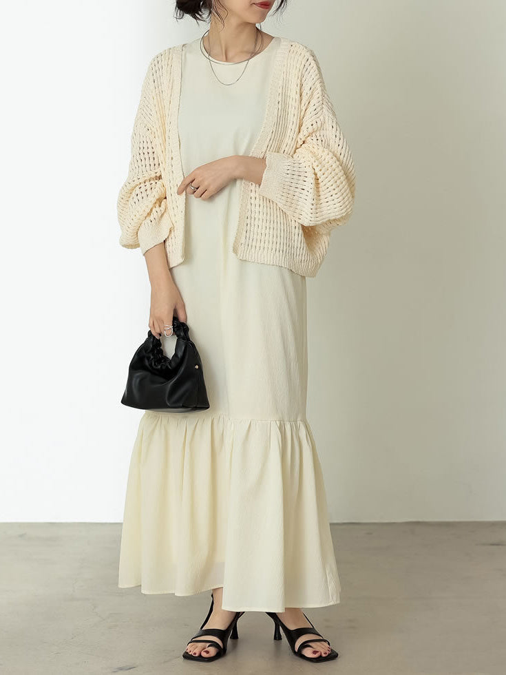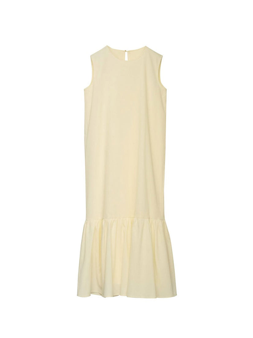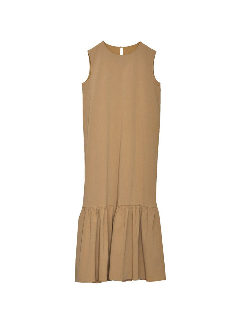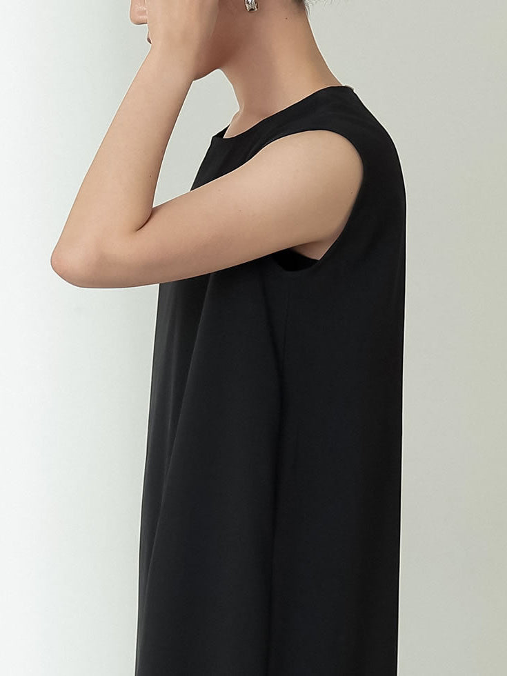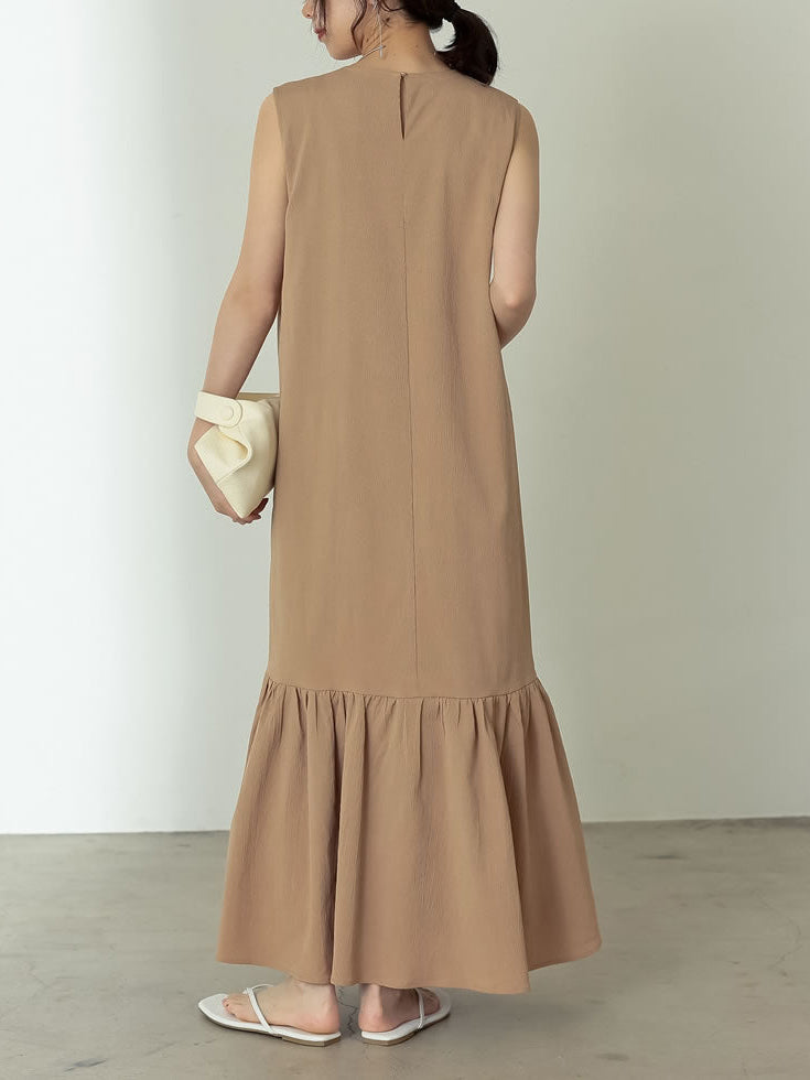 表面変化のある楊柳ライクなクレープ生地で仕上げたノースリーブワンピース。