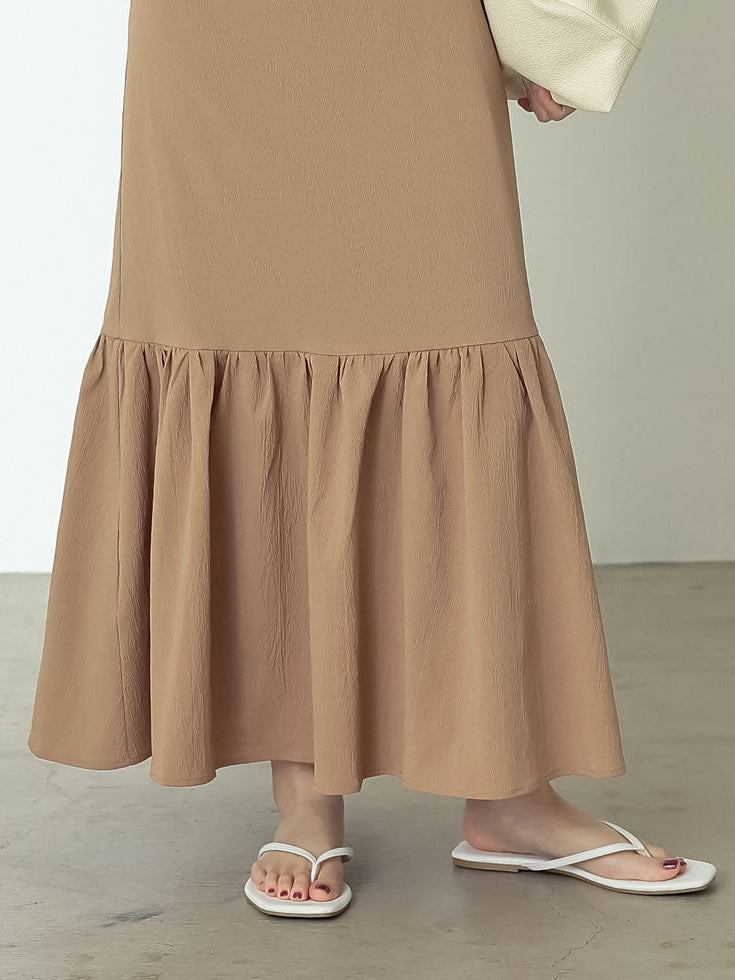 トレンドのマーメイドシルエットは、歩くたびに優美な雰囲気を演出。