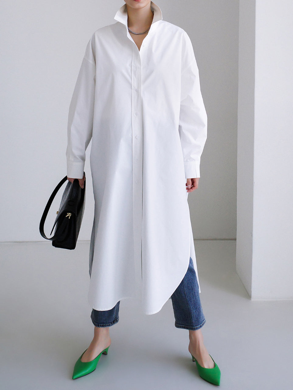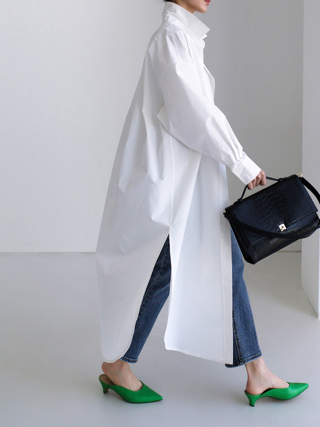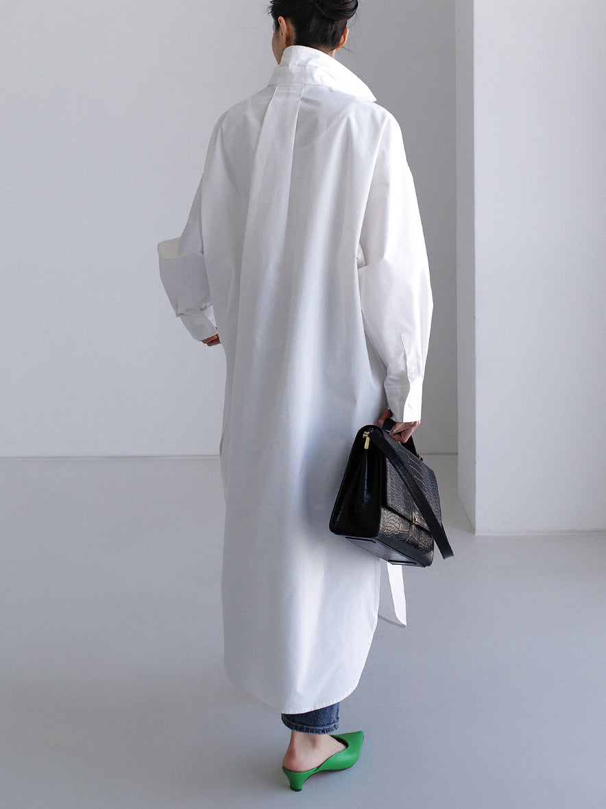 ばさっと一枚で様になり、大人スタイルが叶うシャツワンピース。