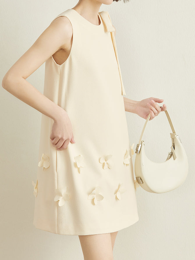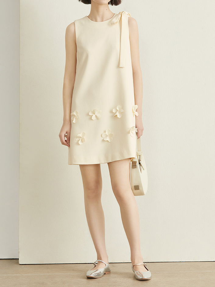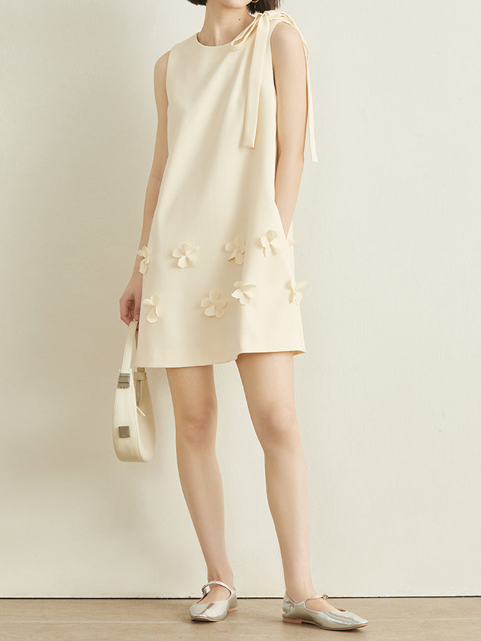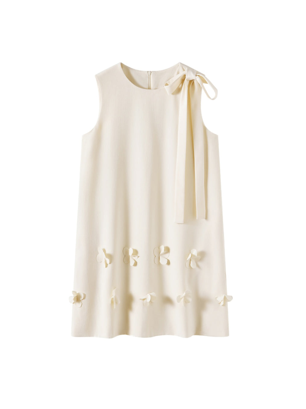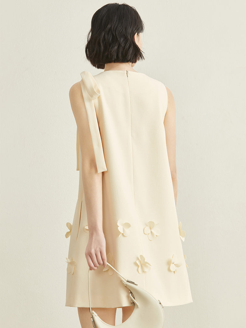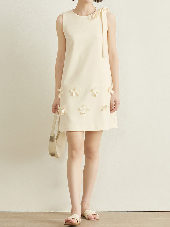 【存在感たっぷりなボウタイが華やかに着映えるミニワンピース】