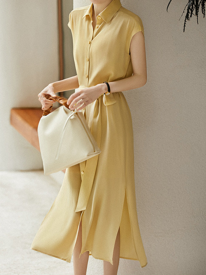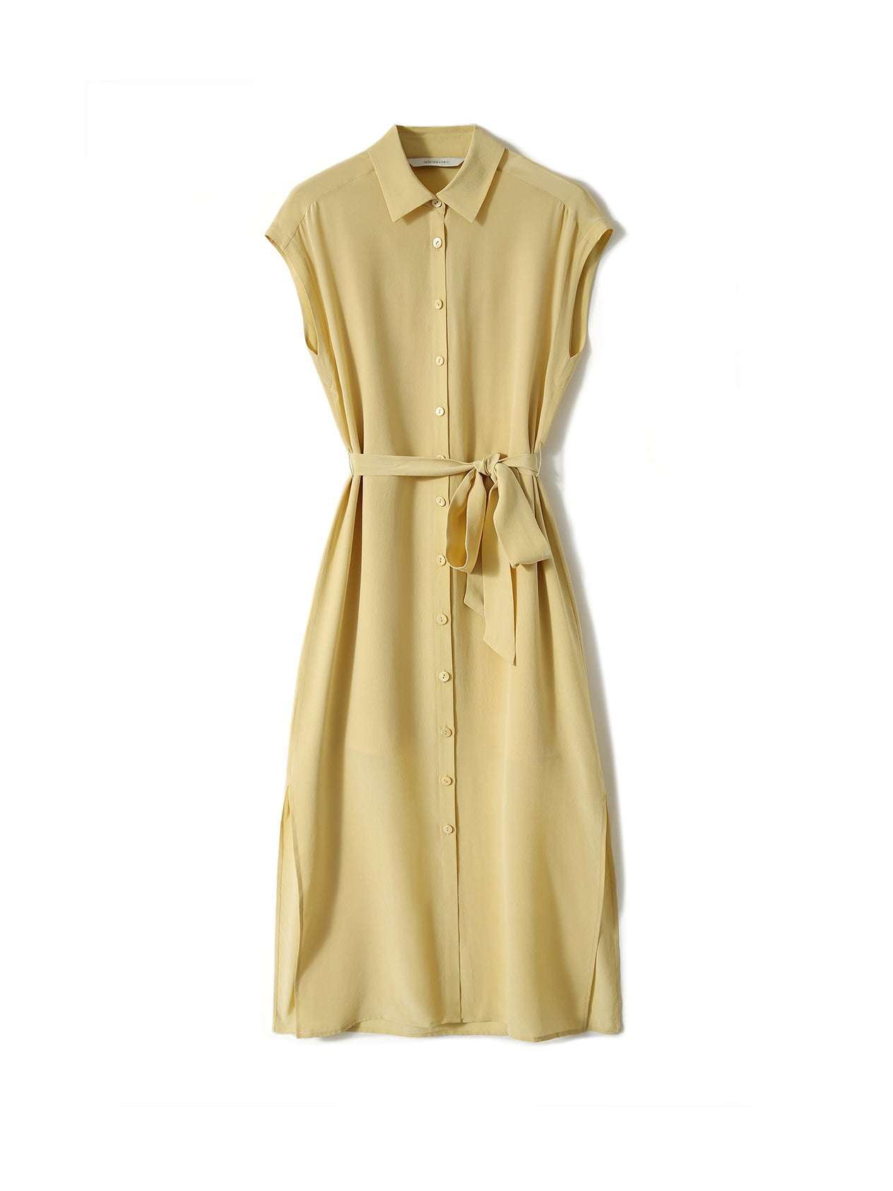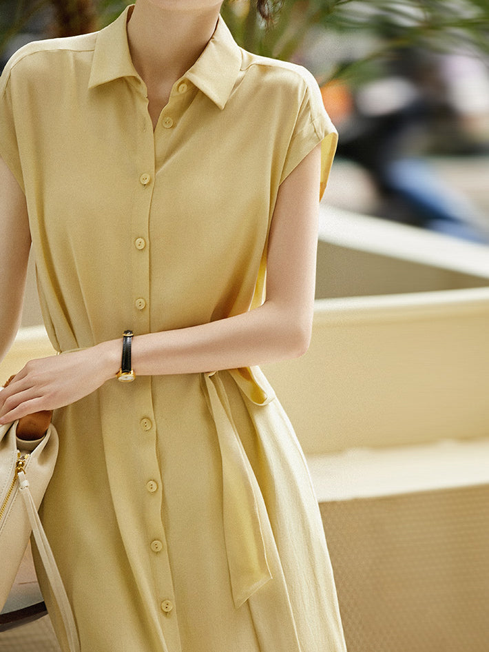 手軽ながらもエレガントな雰囲気を演出する軽やかなシャツドレス。