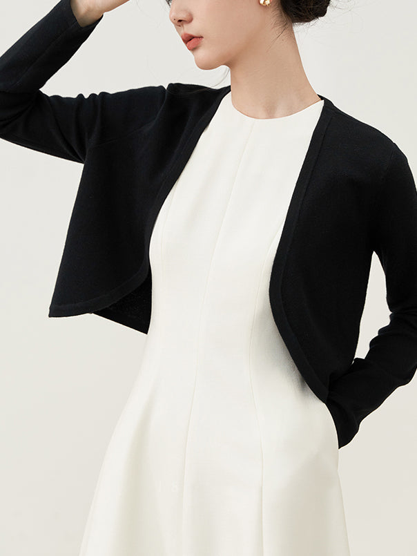 ロングカーディガンやクロップド丈のジャケットなどアウターの中に着やすいです。