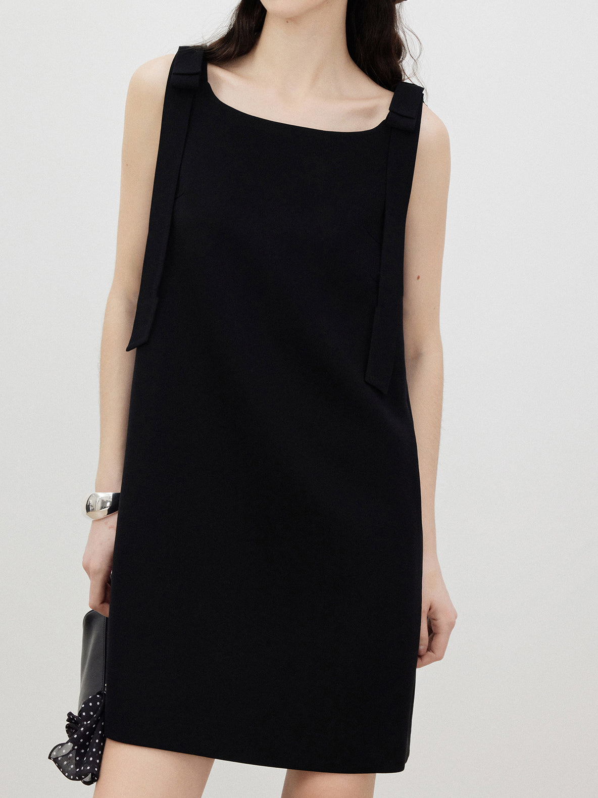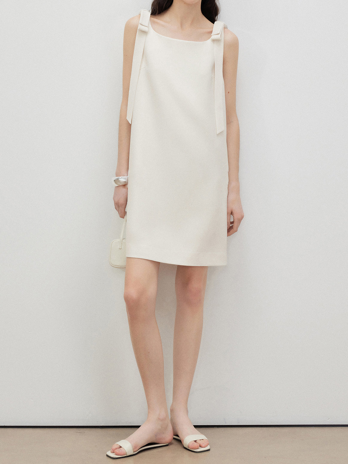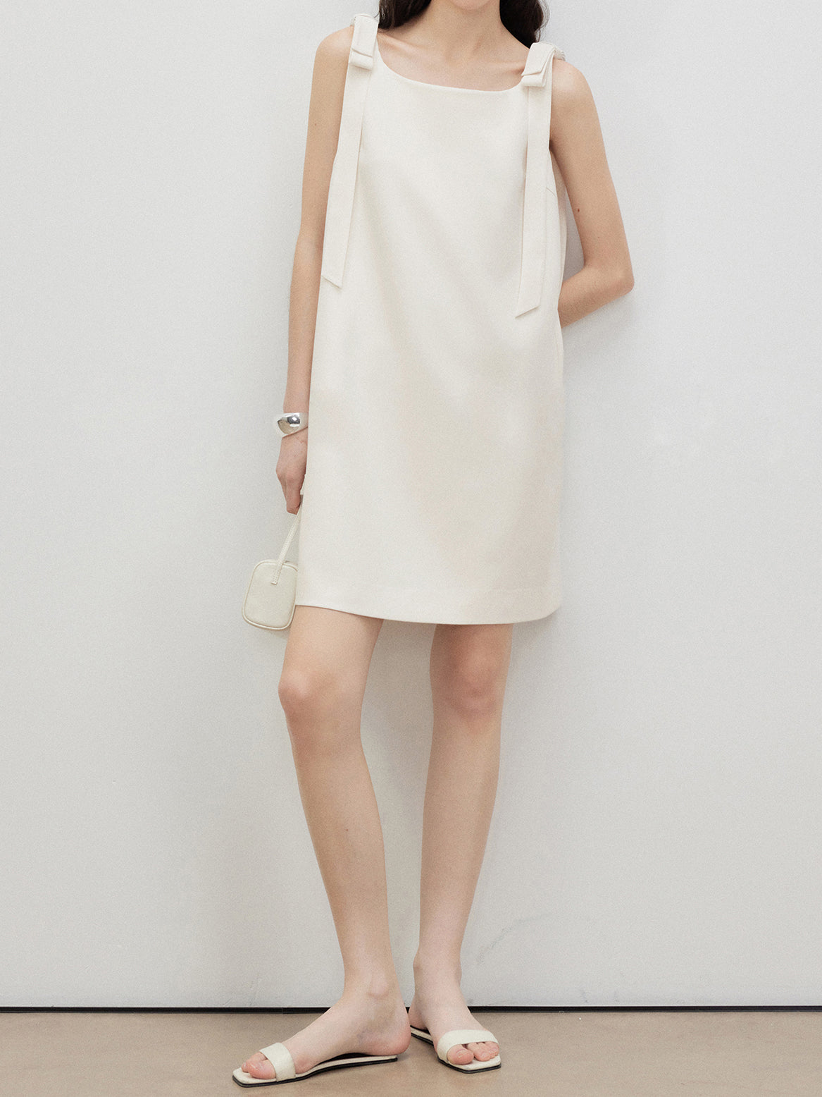 華奢な肩リボンがアクセントになったタンクワンピース。