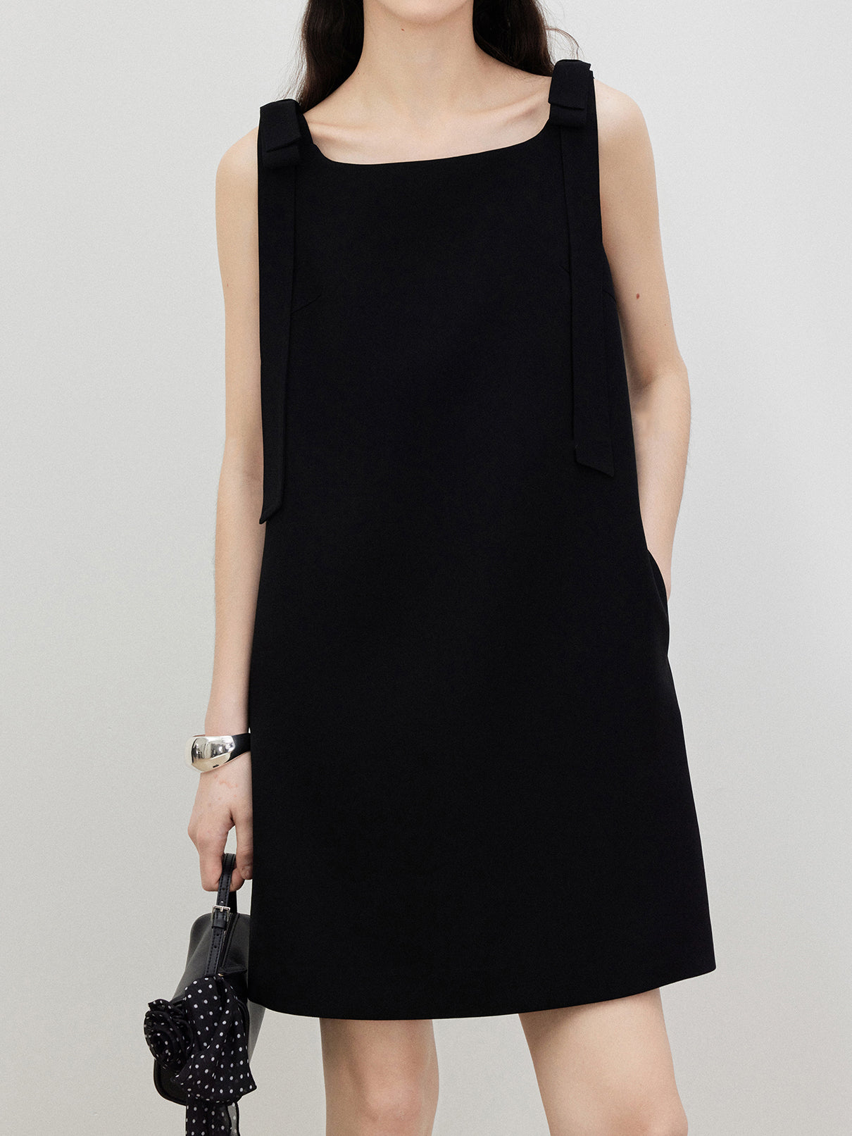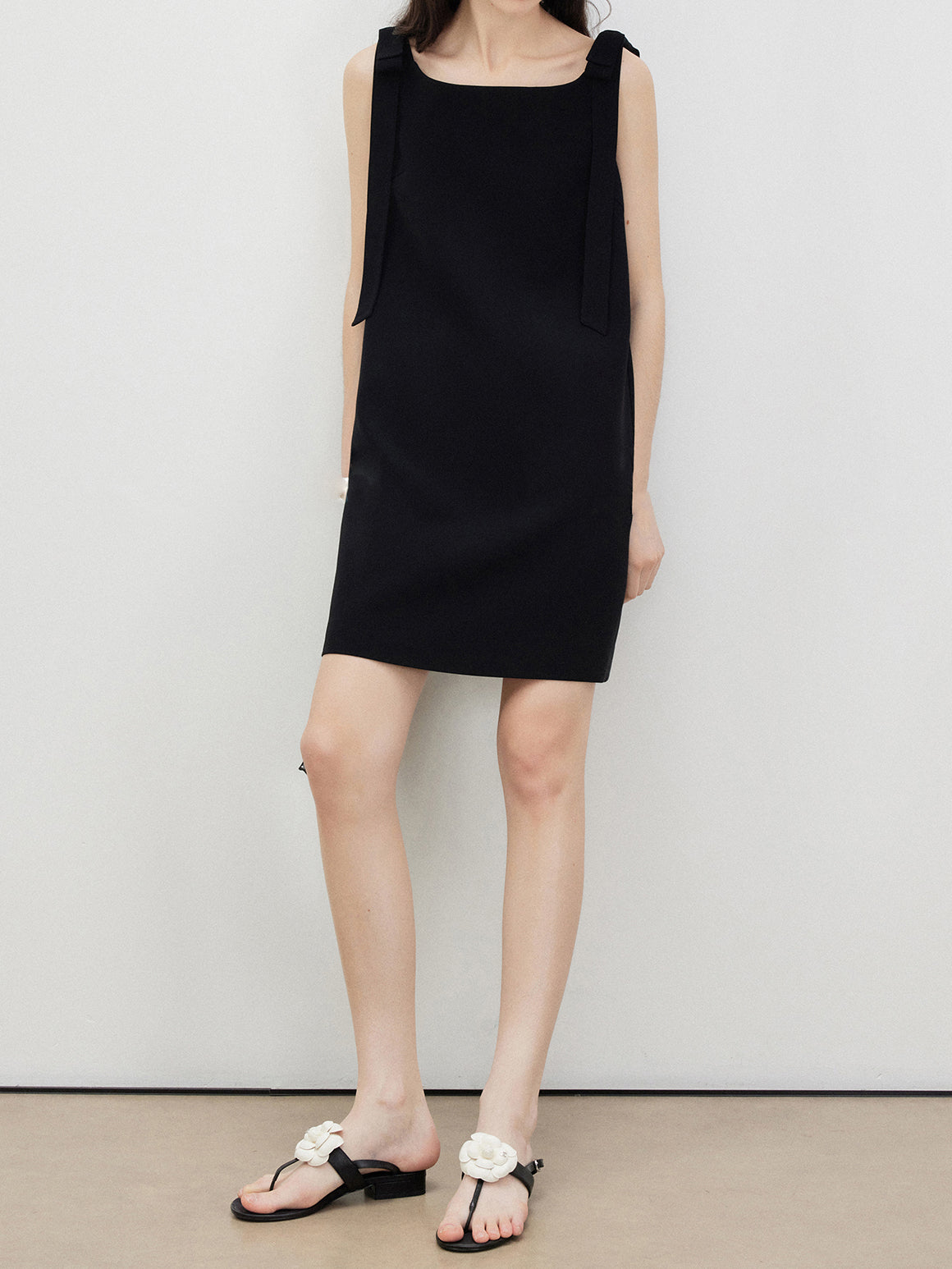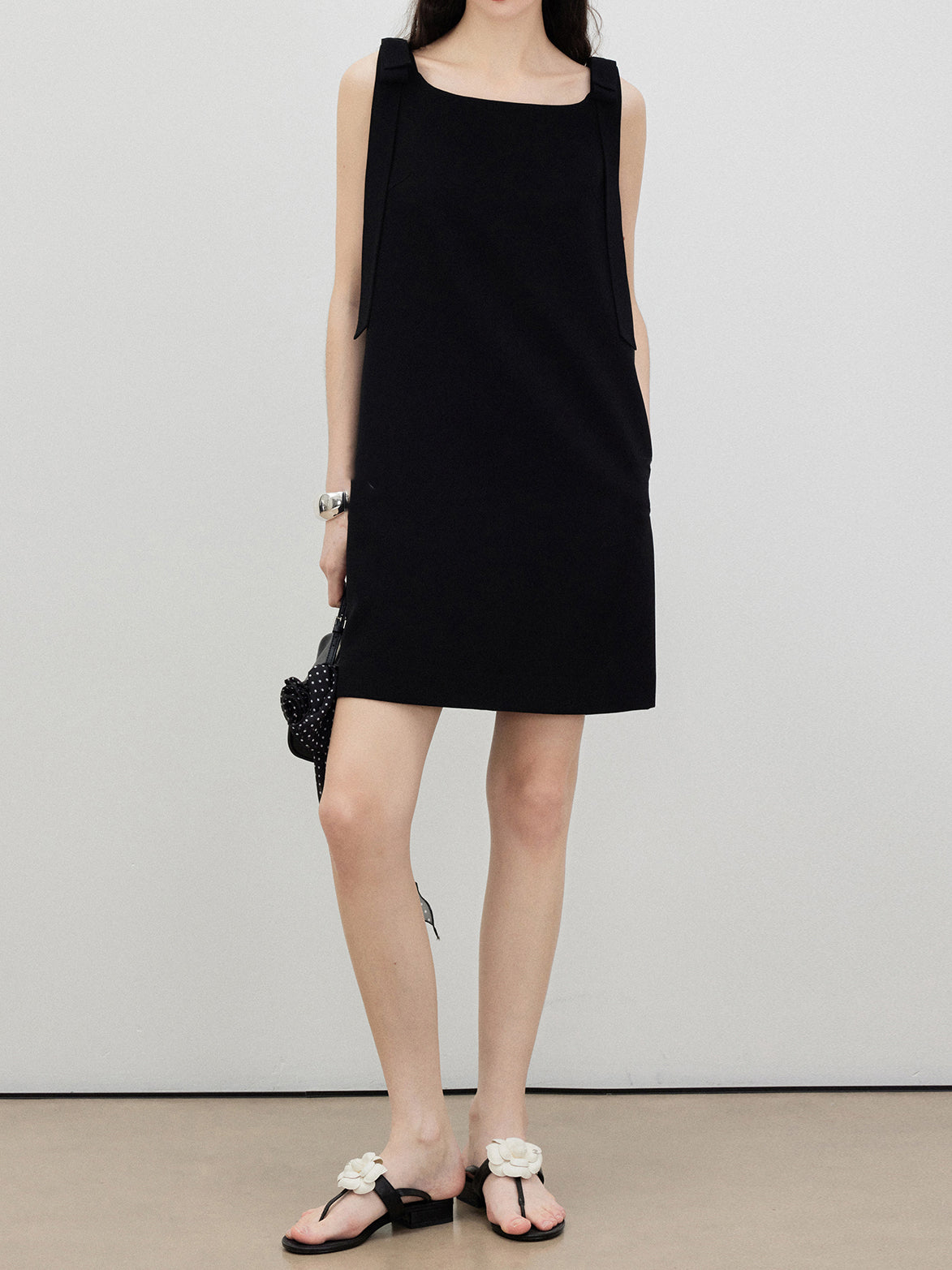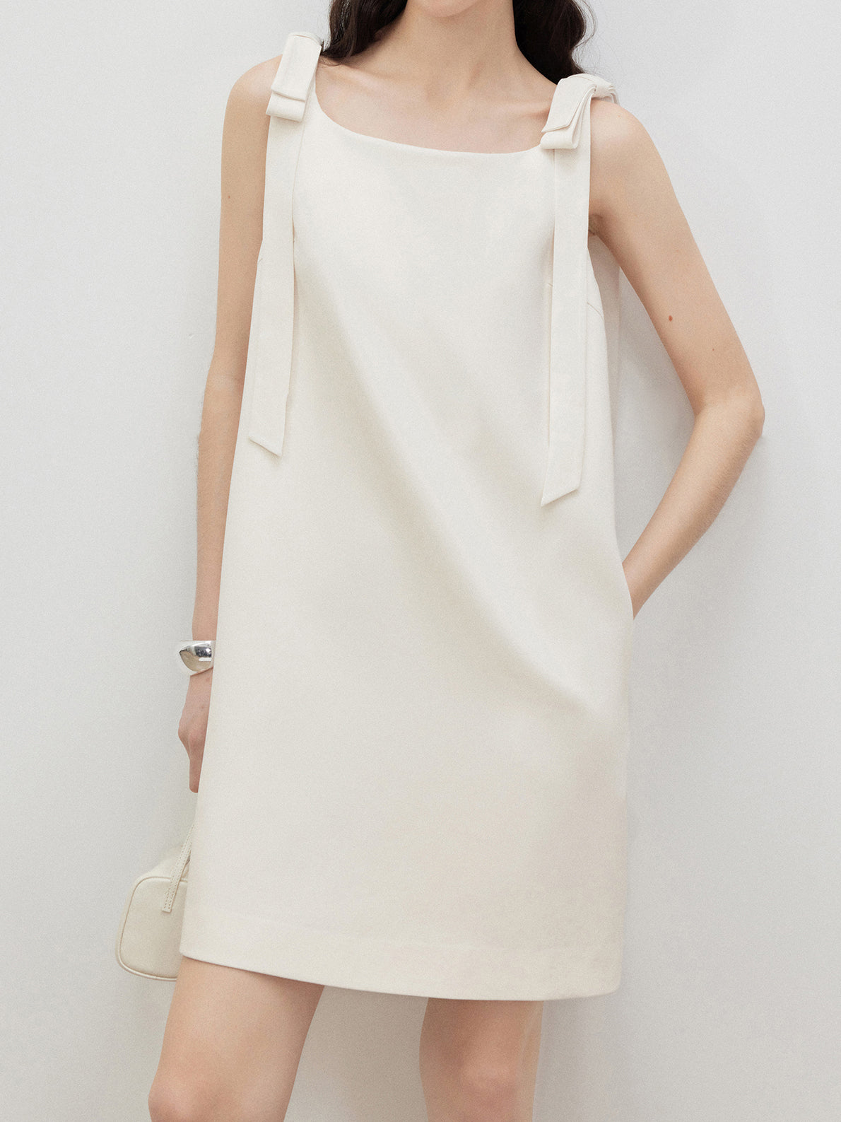 華奢な肩リボンがアクセントになったタンクワンピース。