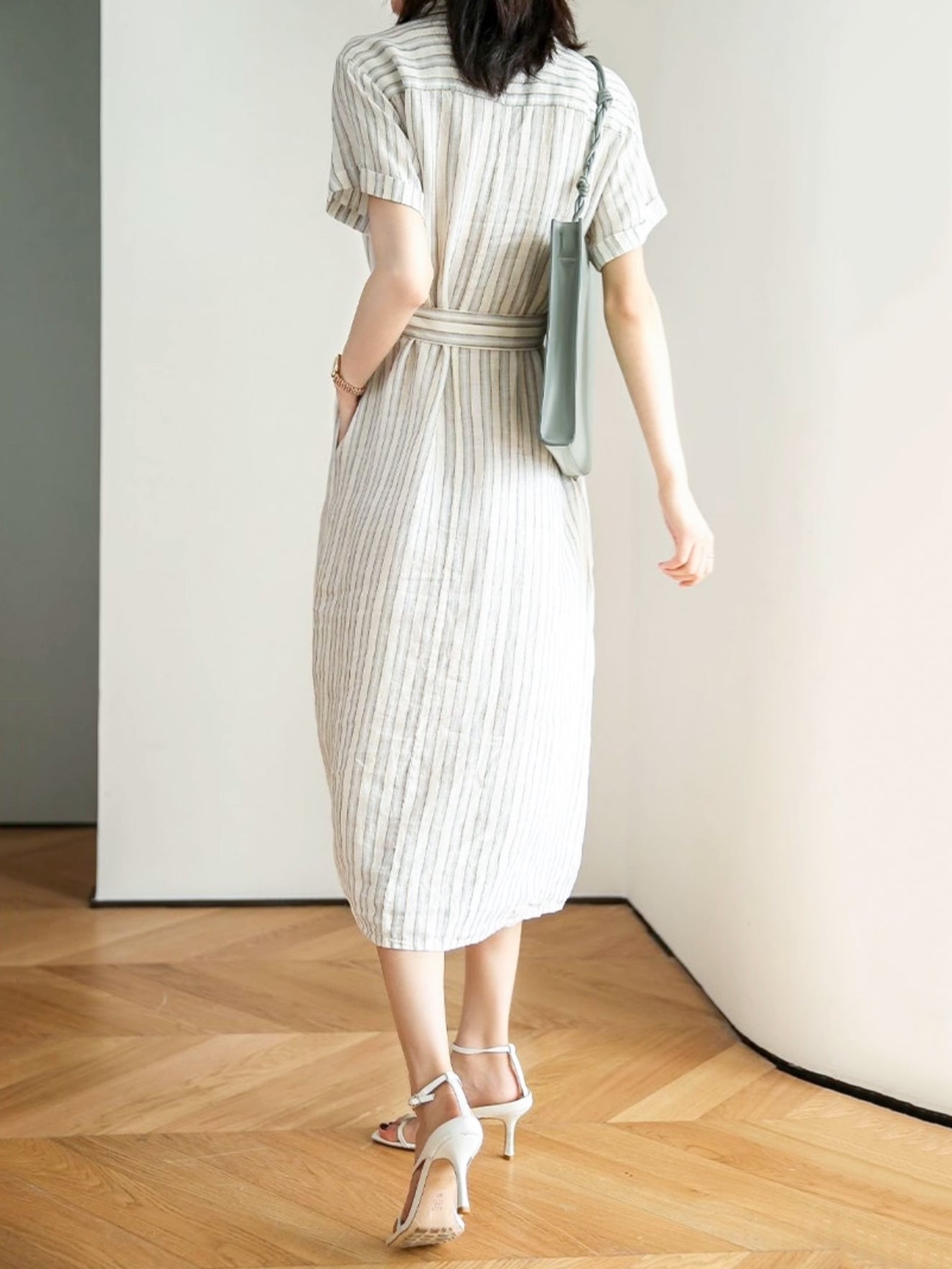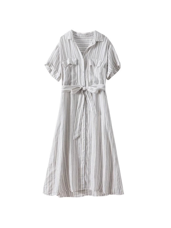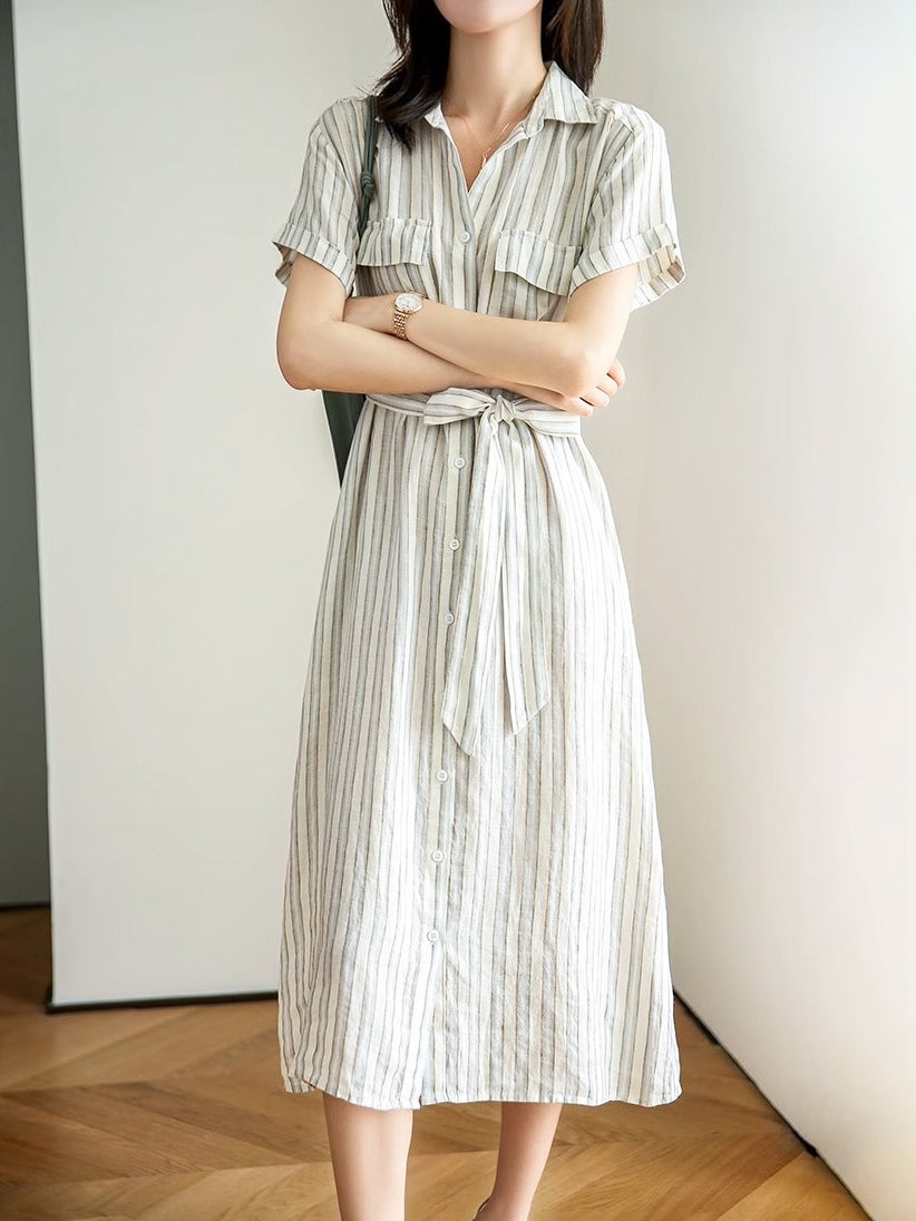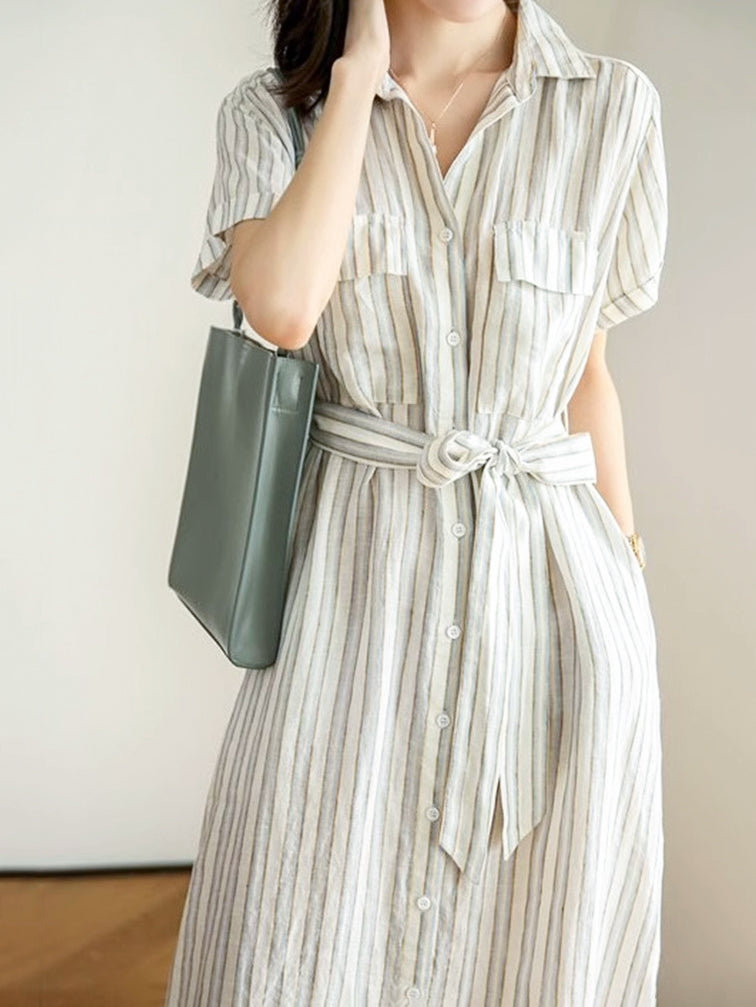 【上品でクラシカルなストライプシャツワンピース】