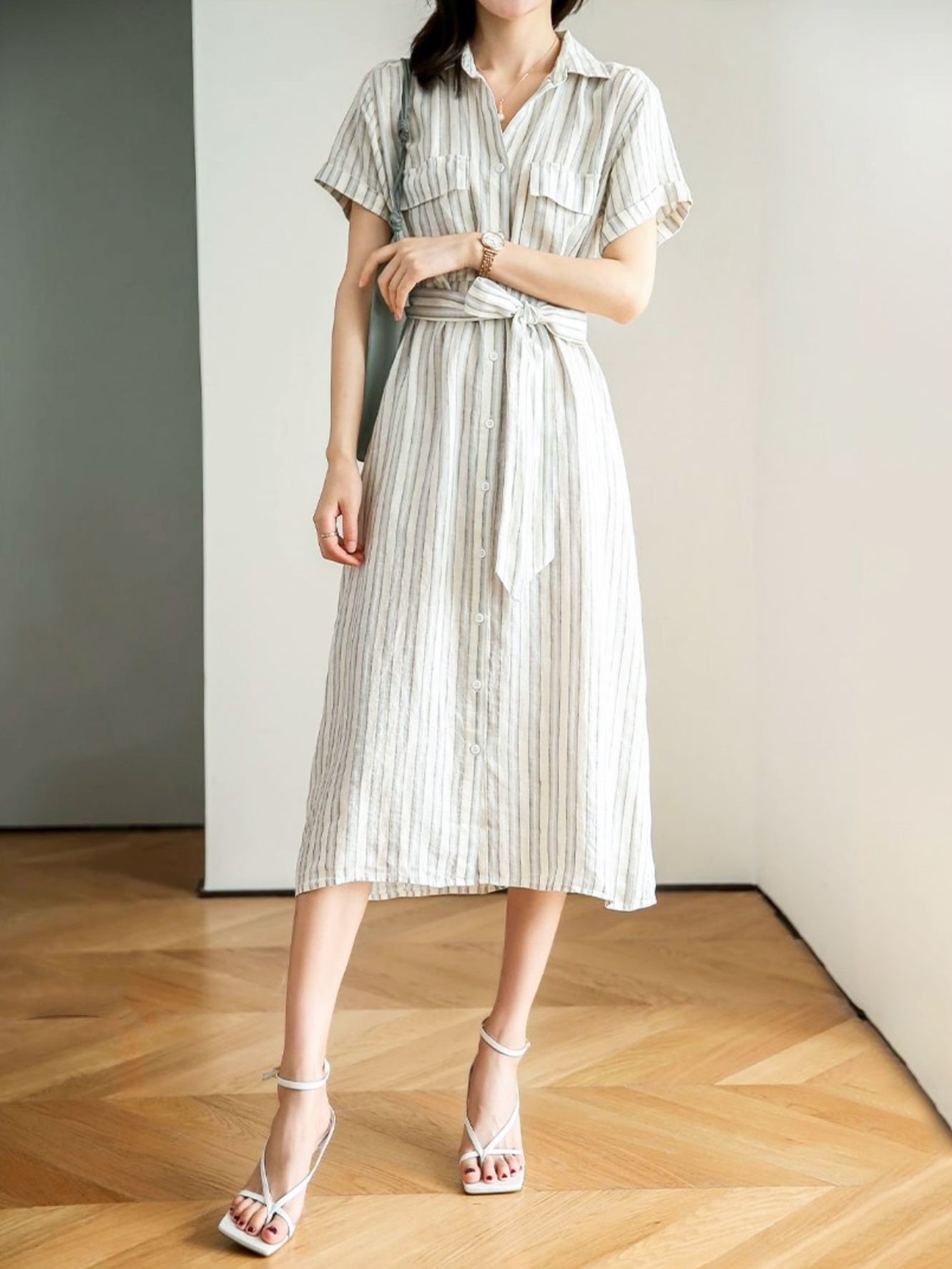 ☆ワンピースと同生地のベルトが付属しているので、シーンやご自身の好みに合わせて取り外しいただけます。