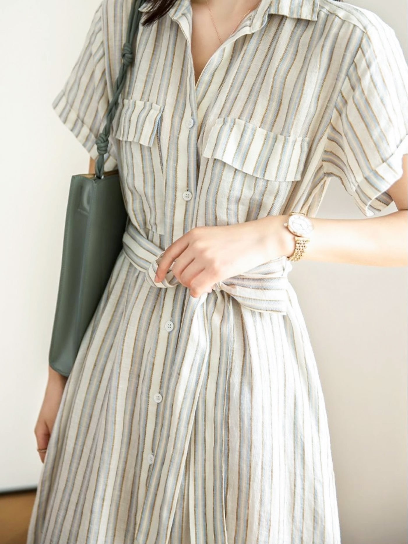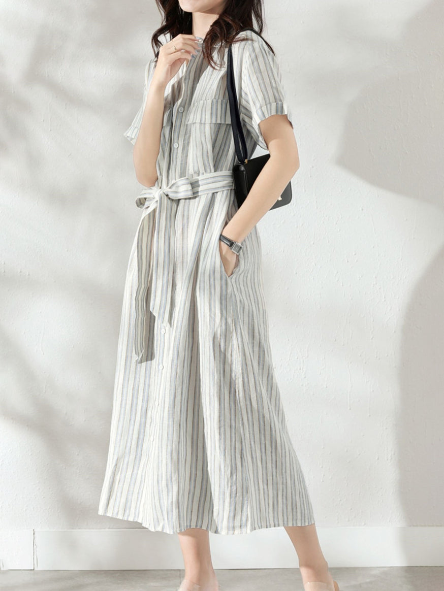 ストライプベルテッドワンピース