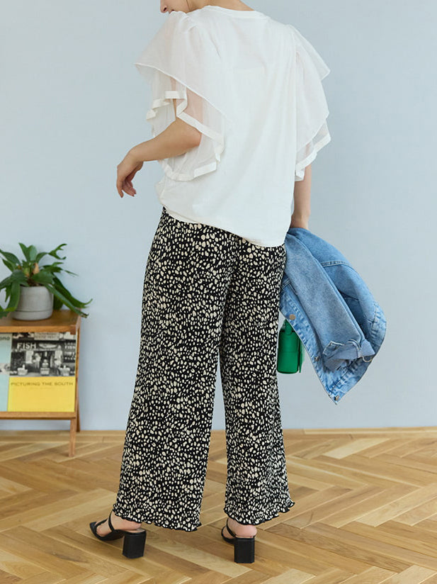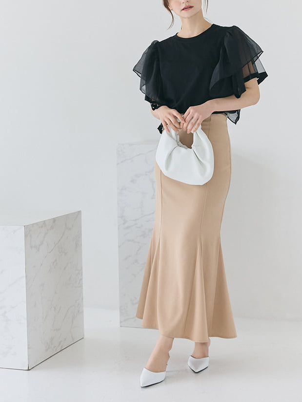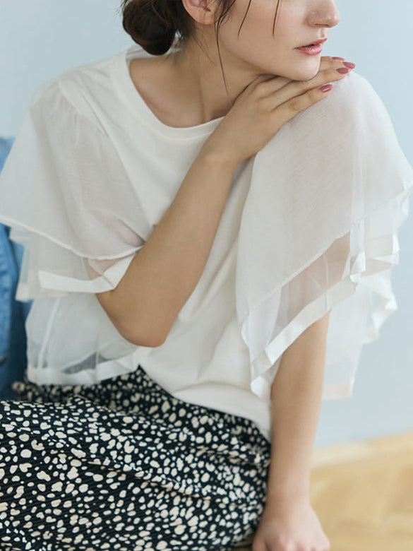 【オーガンジーのフリル袖が女性らしいドッキングトップス】
