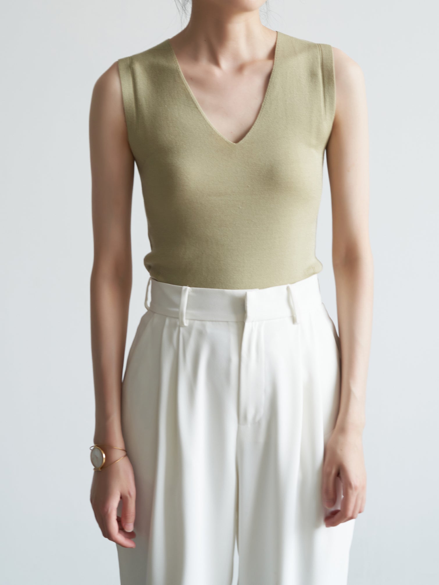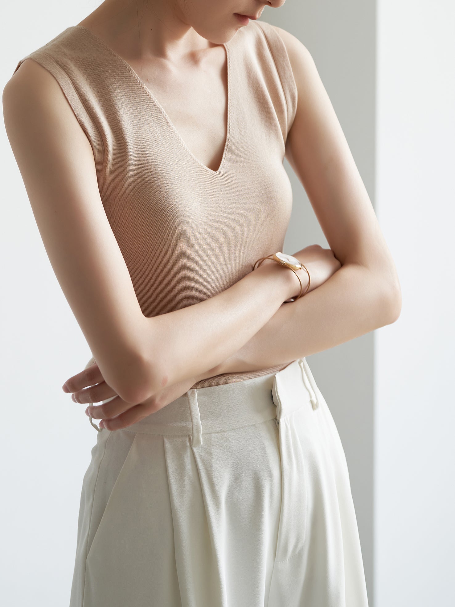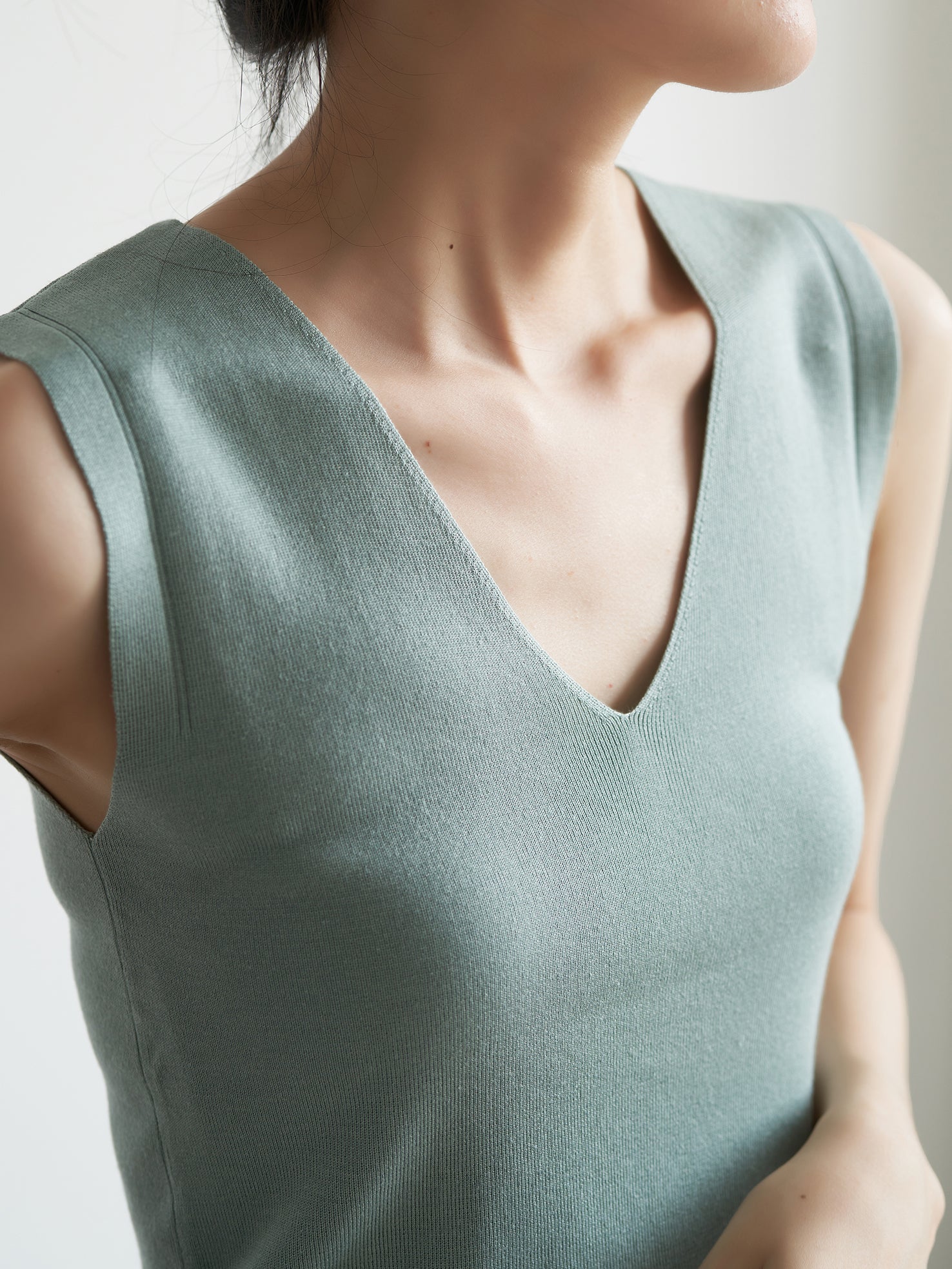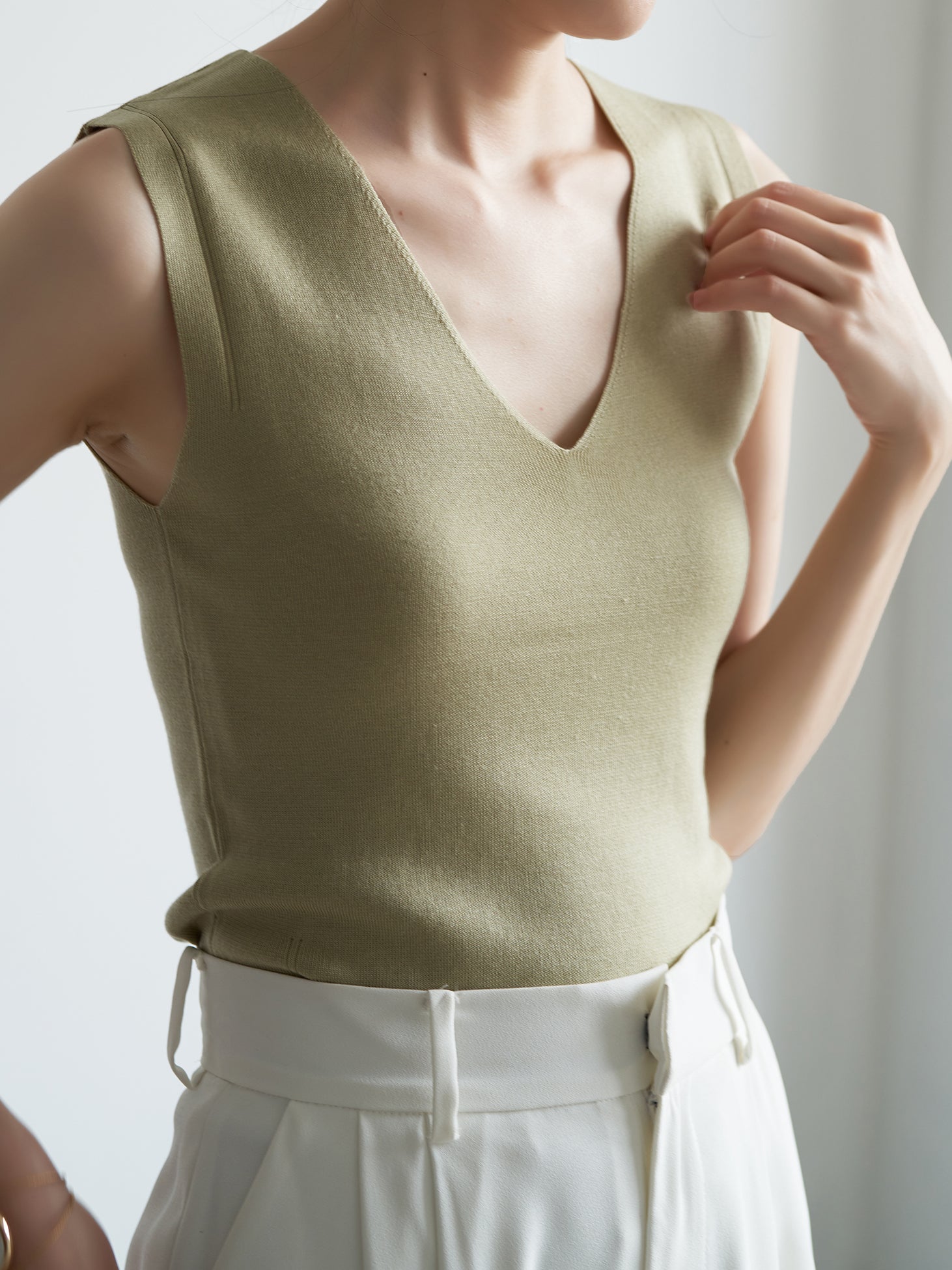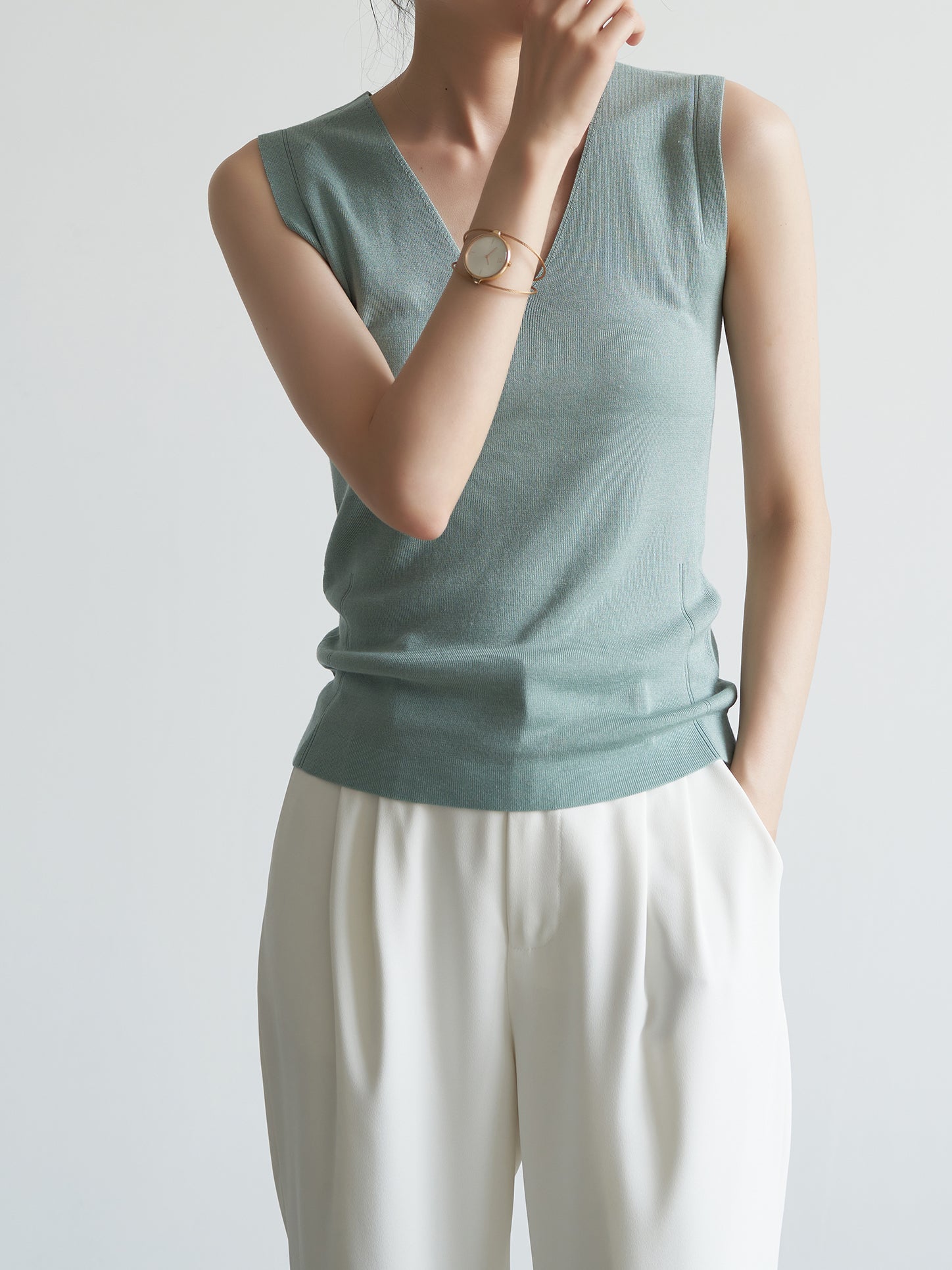 涼しい肌ざわりと着回し力が抜群で、毎日でも着たくなるVネックタンクトップ。