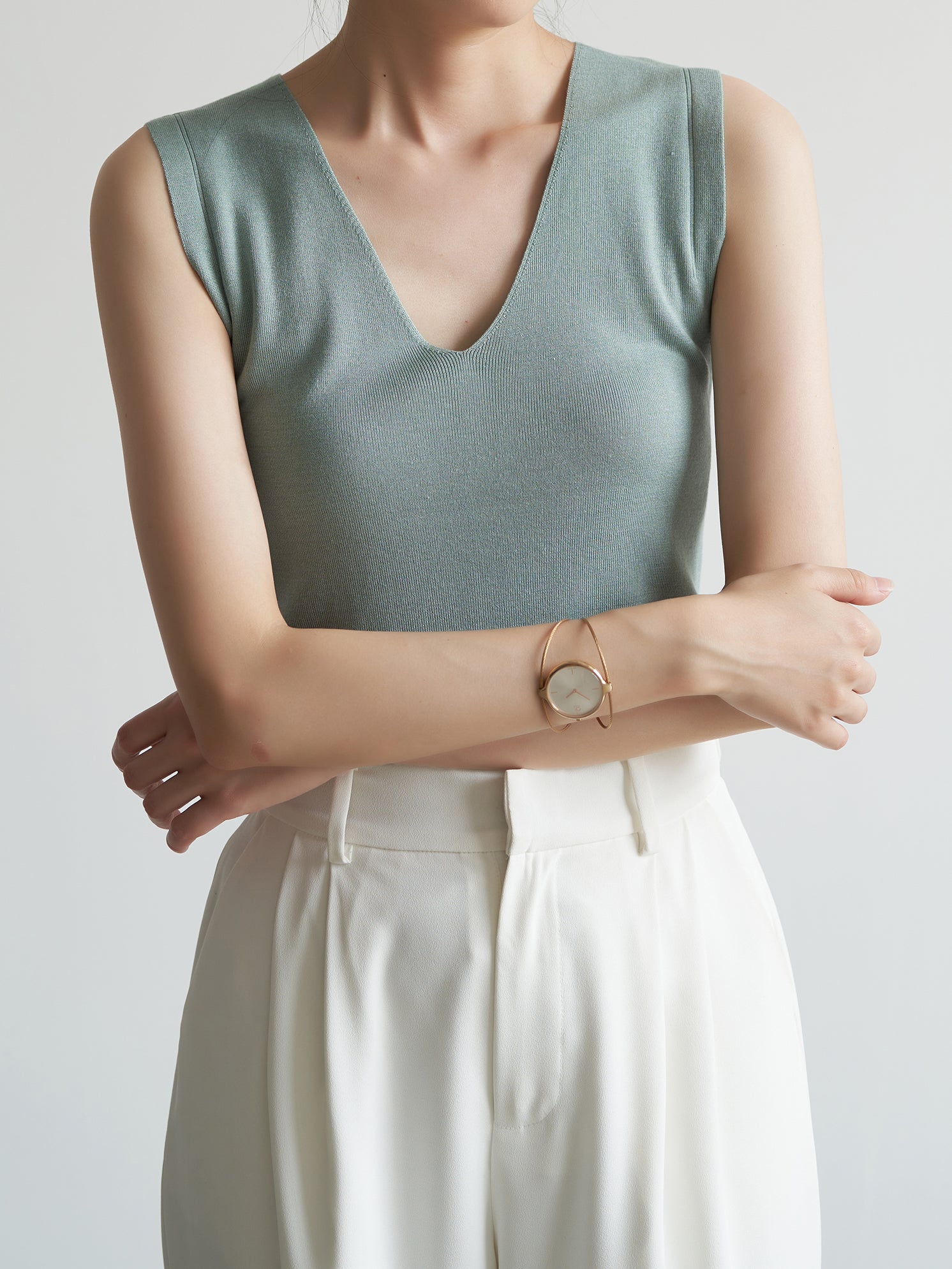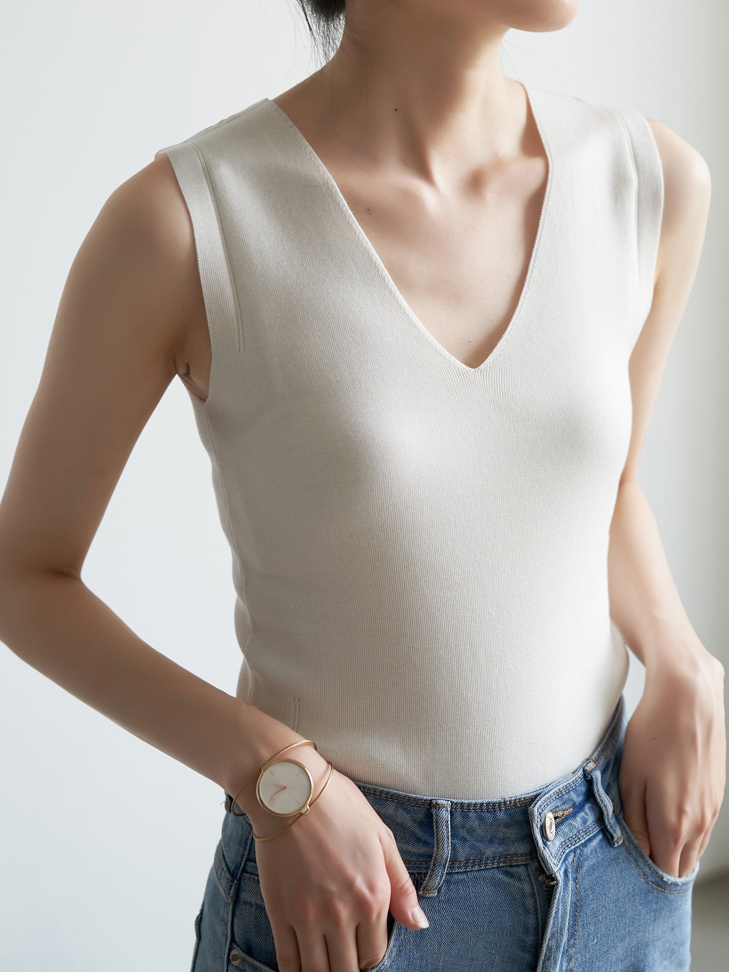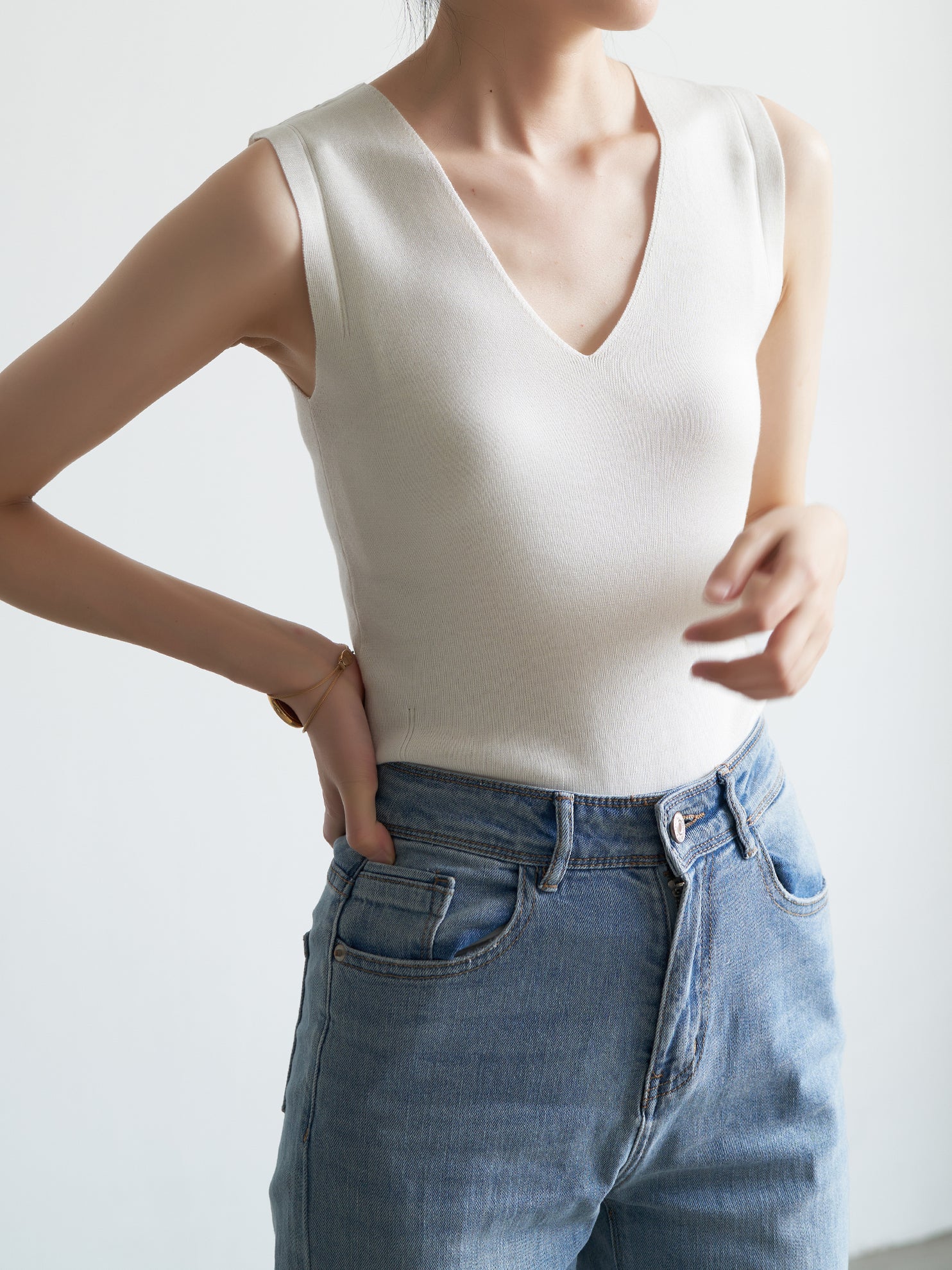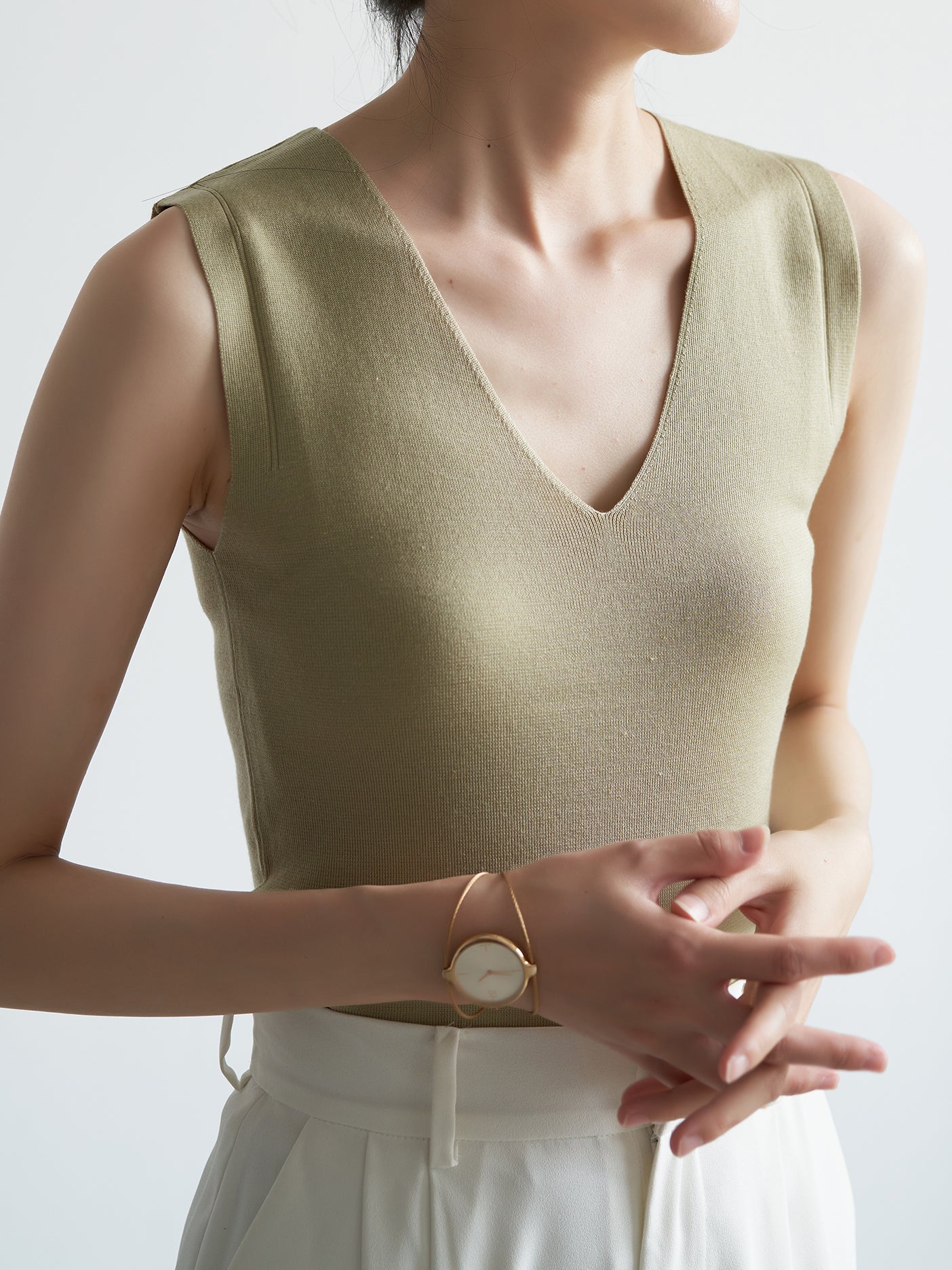 涼しい肌ざわりと着回し力が抜群で、毎日でも着たくなるVネックタンクトップ。
