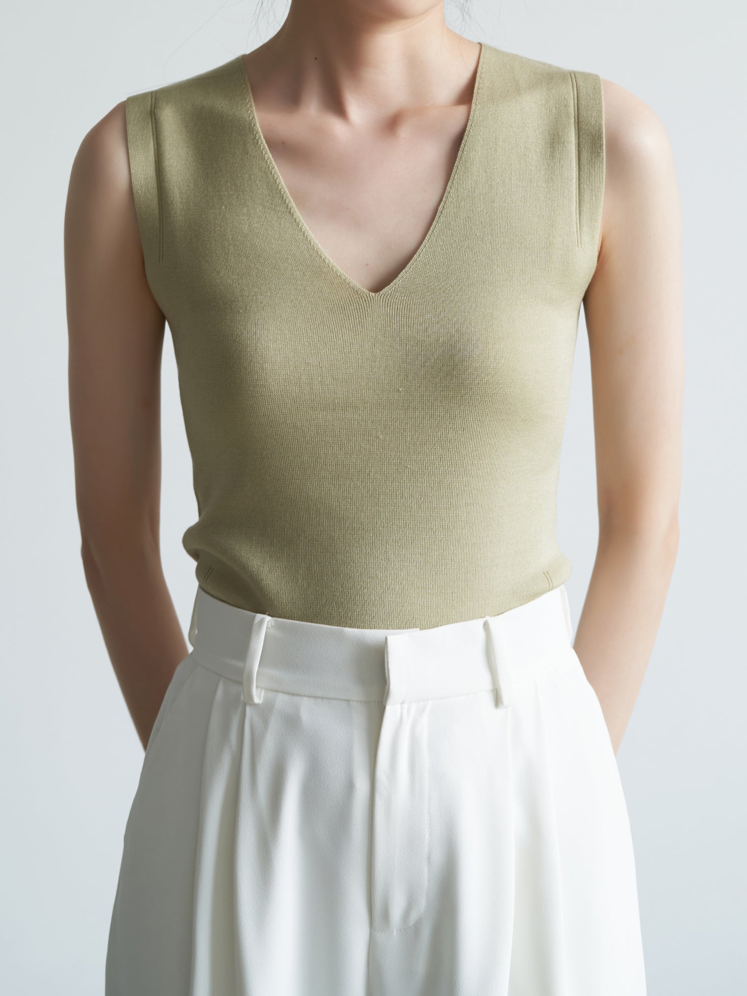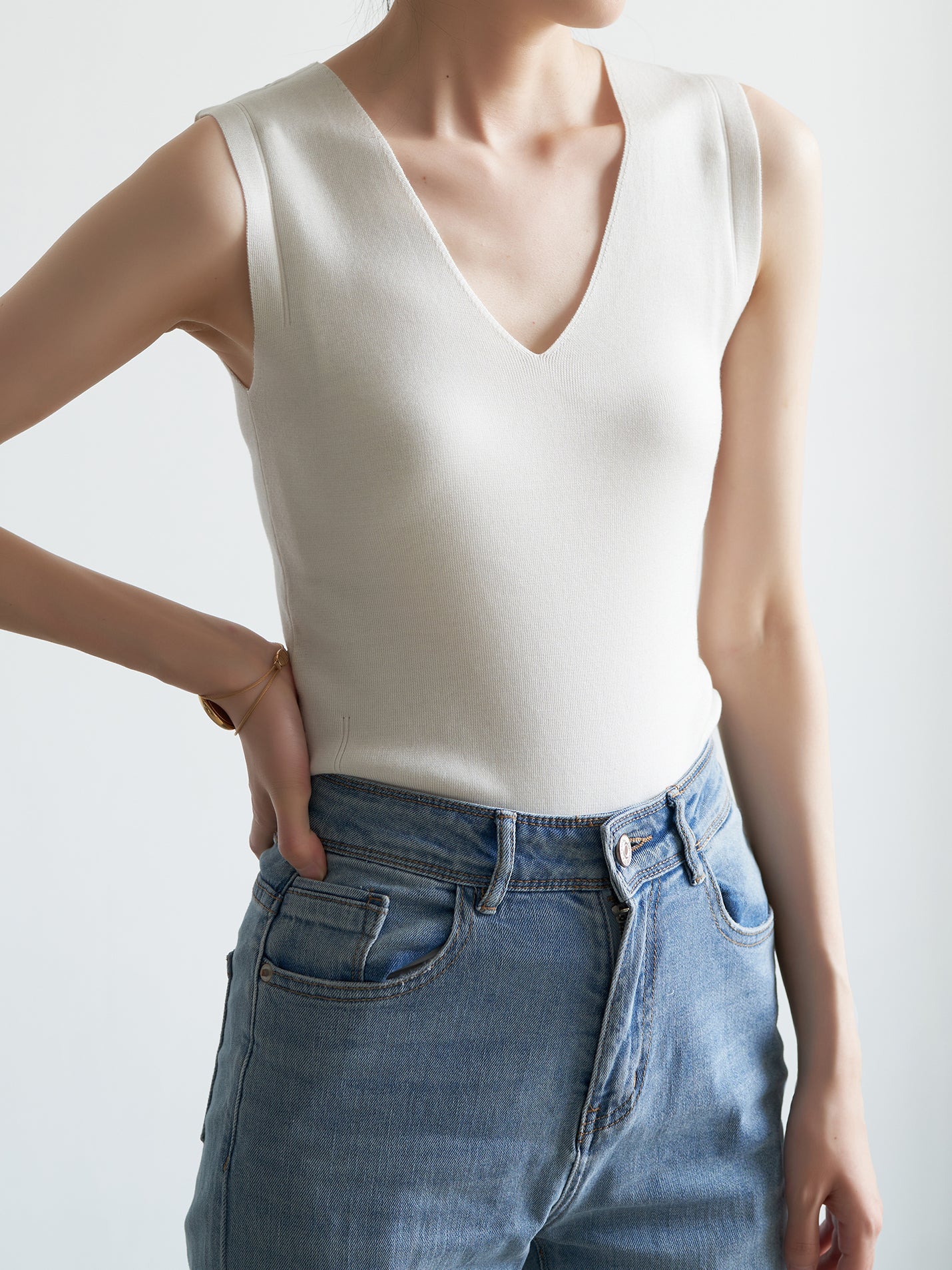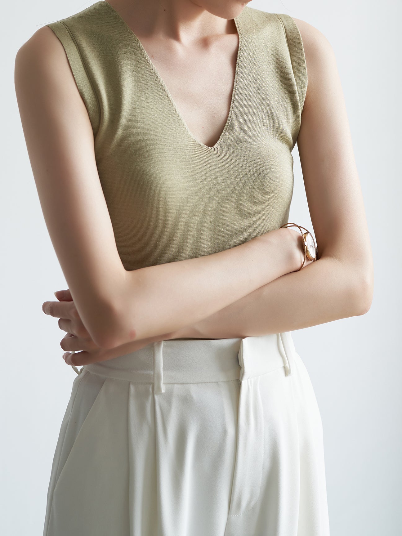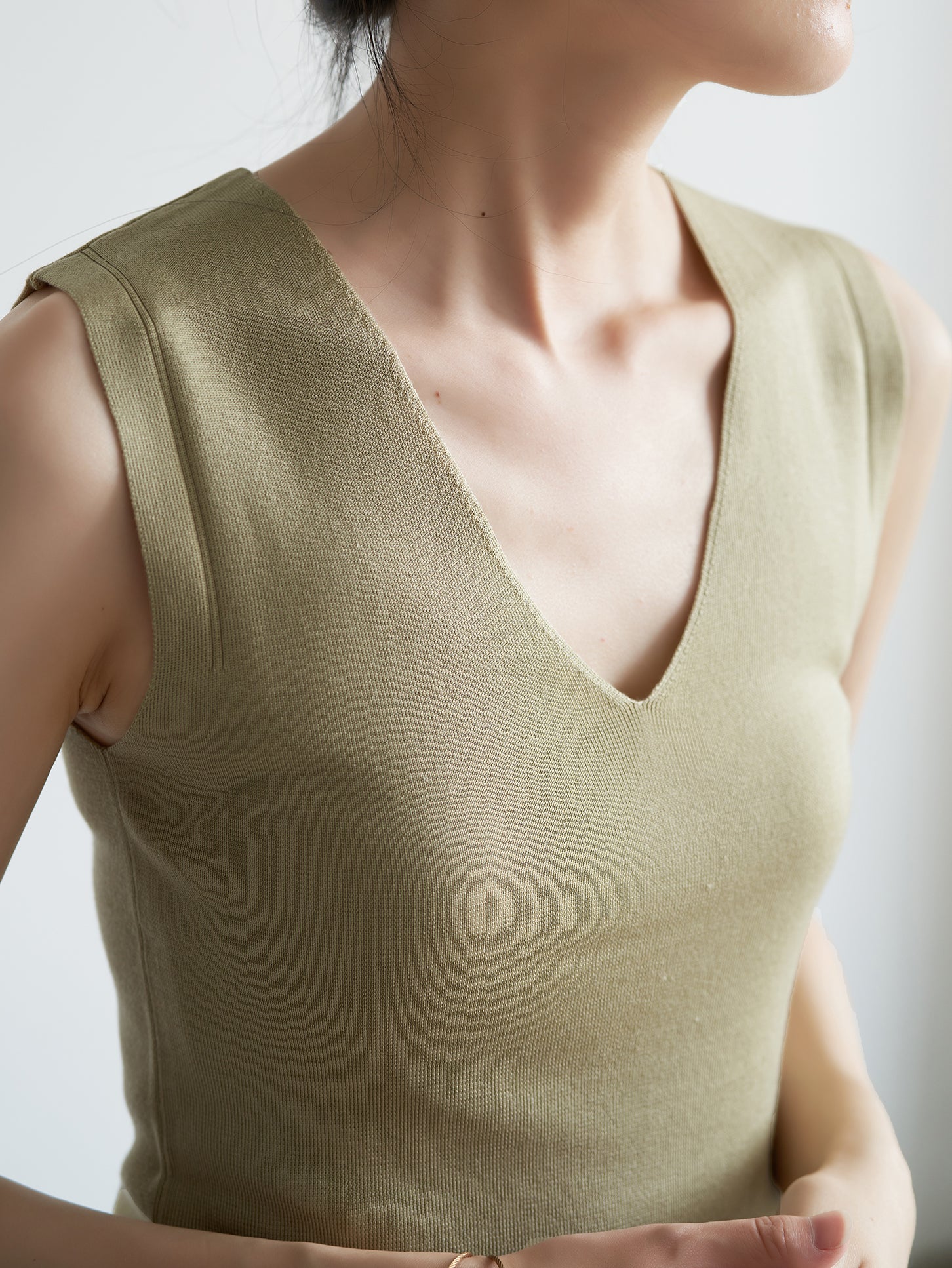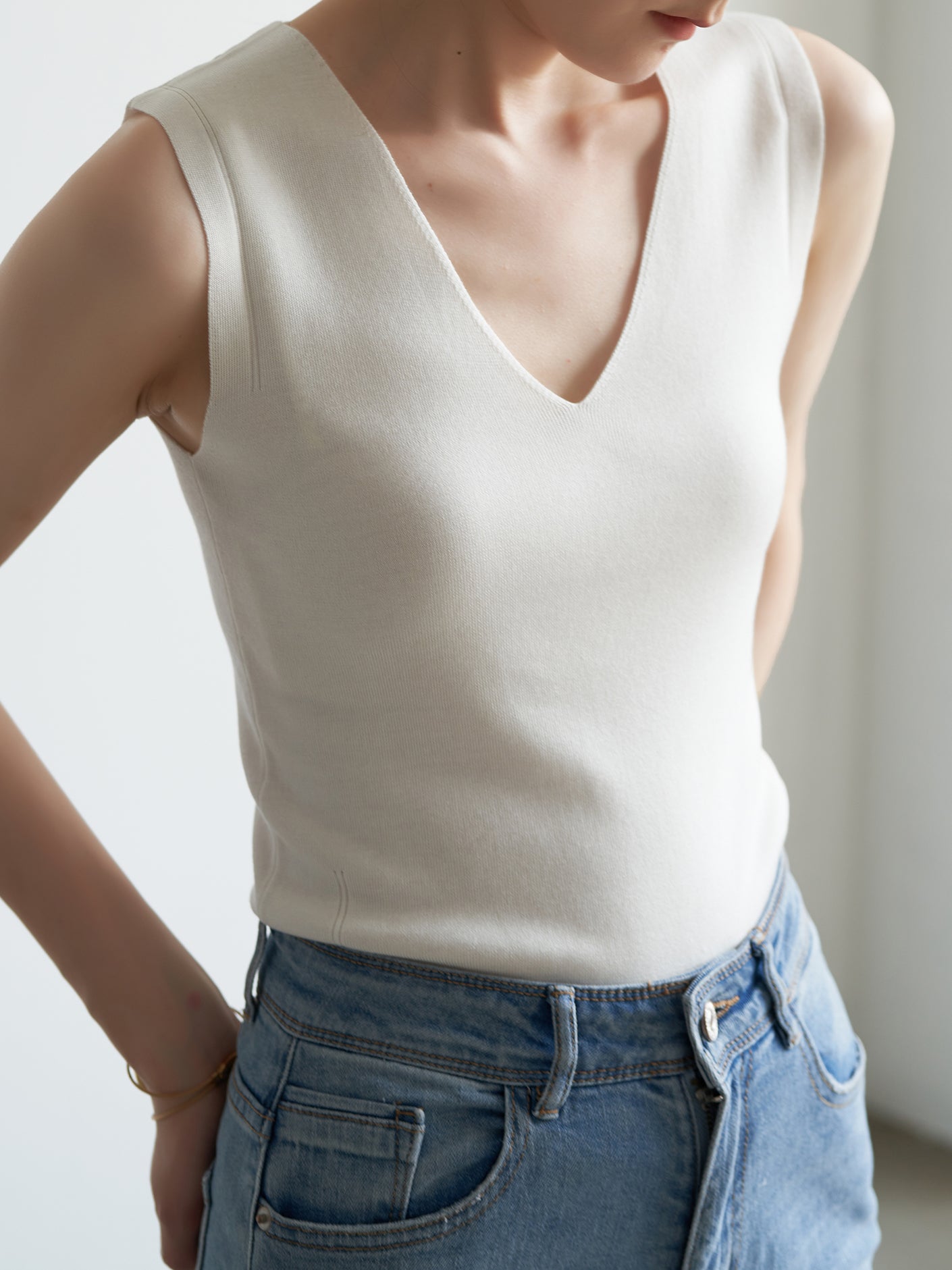 涼しい肌ざわりと着回し力が抜群で、毎日でも着たくなるVネックタンクトップ。