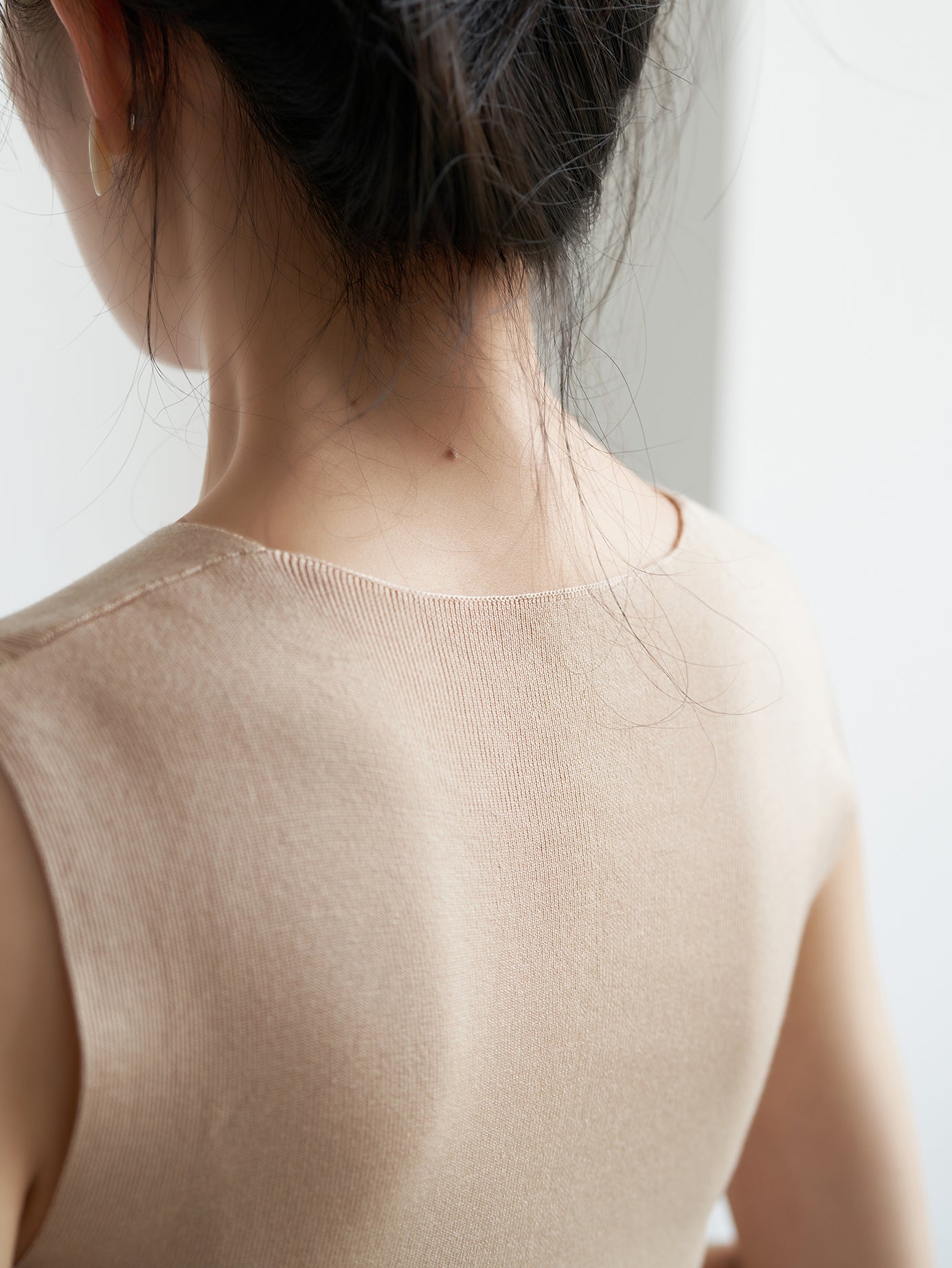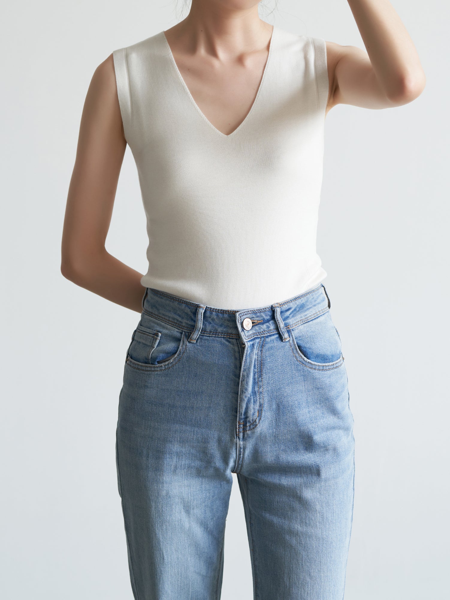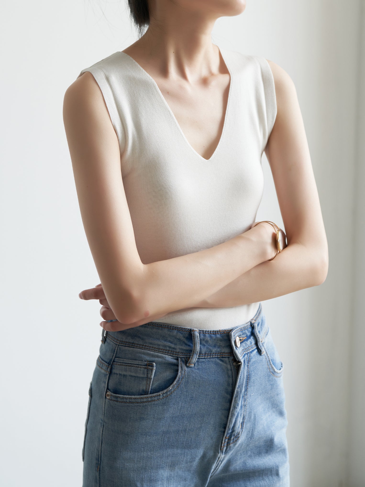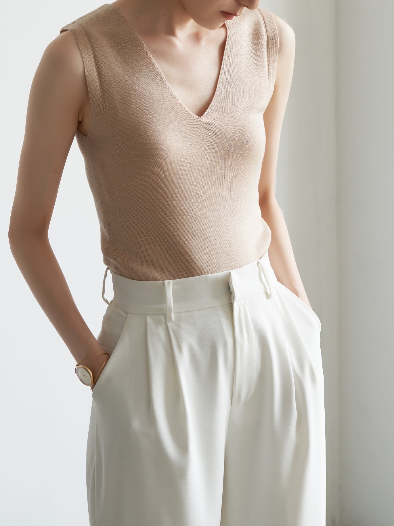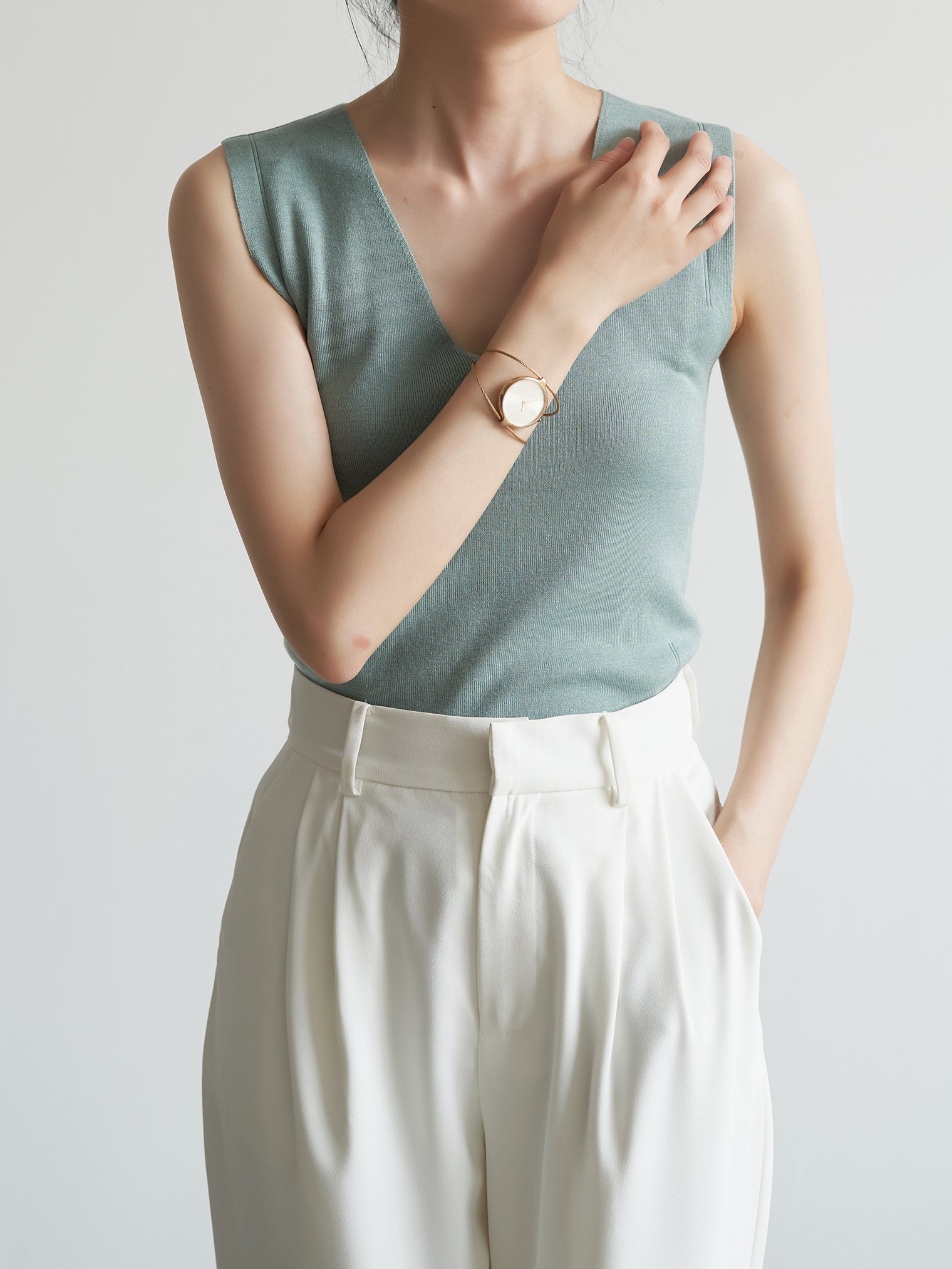 涼しい肌ざわりと着回し力が抜群で、毎日でも着たくなるVネックタンクトップ。