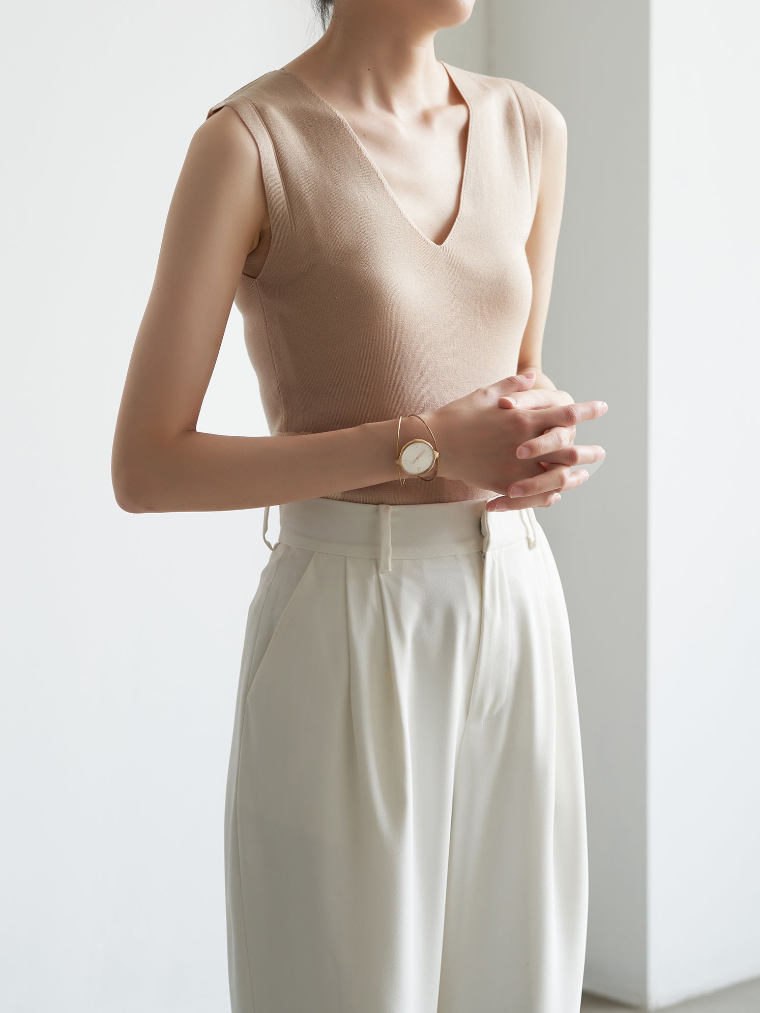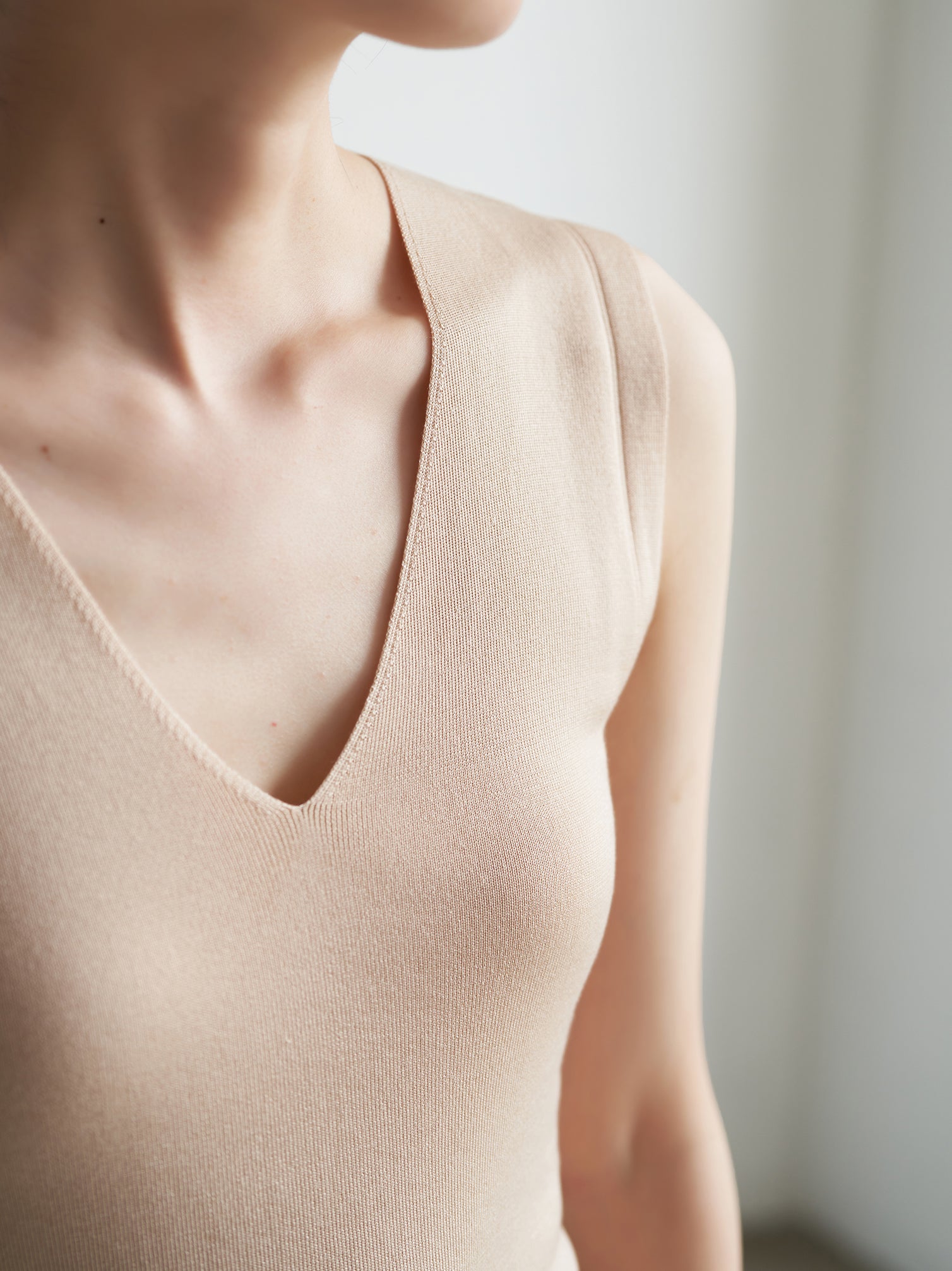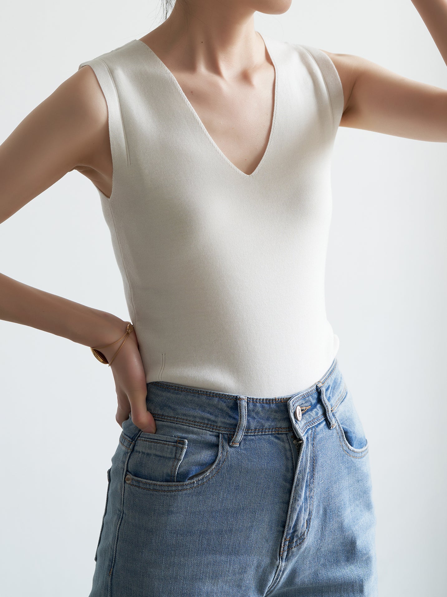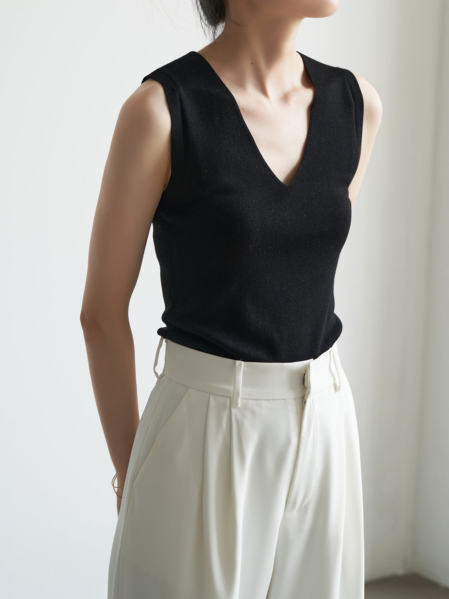 涼しい肌ざわりと着回し力が抜群で、毎日でも着たくなるVネックタンクトップ。