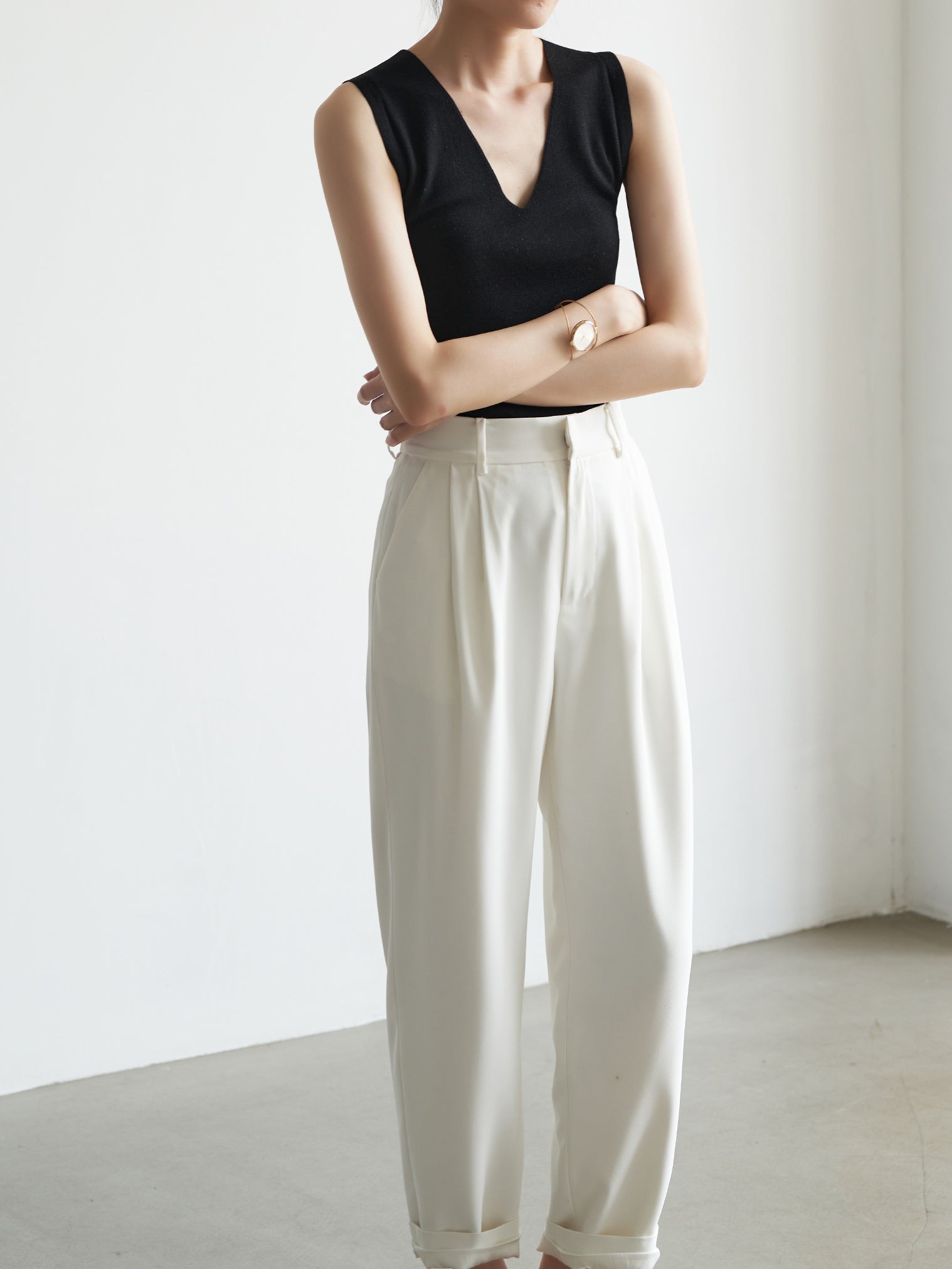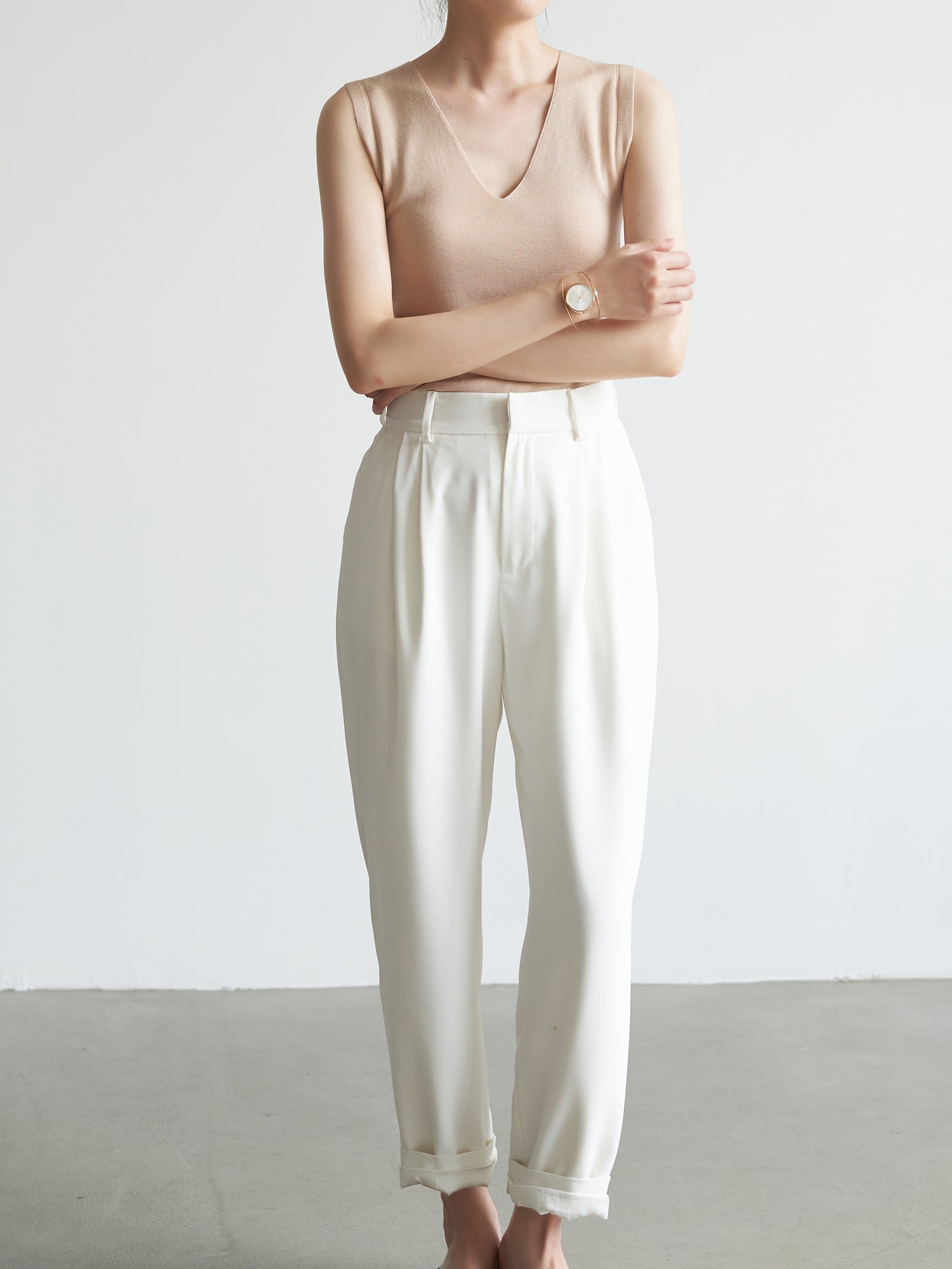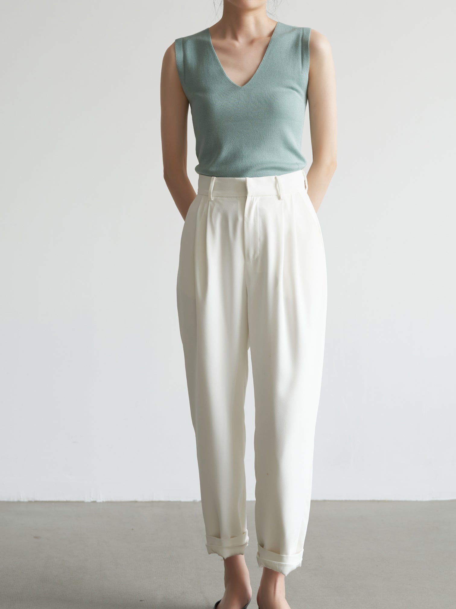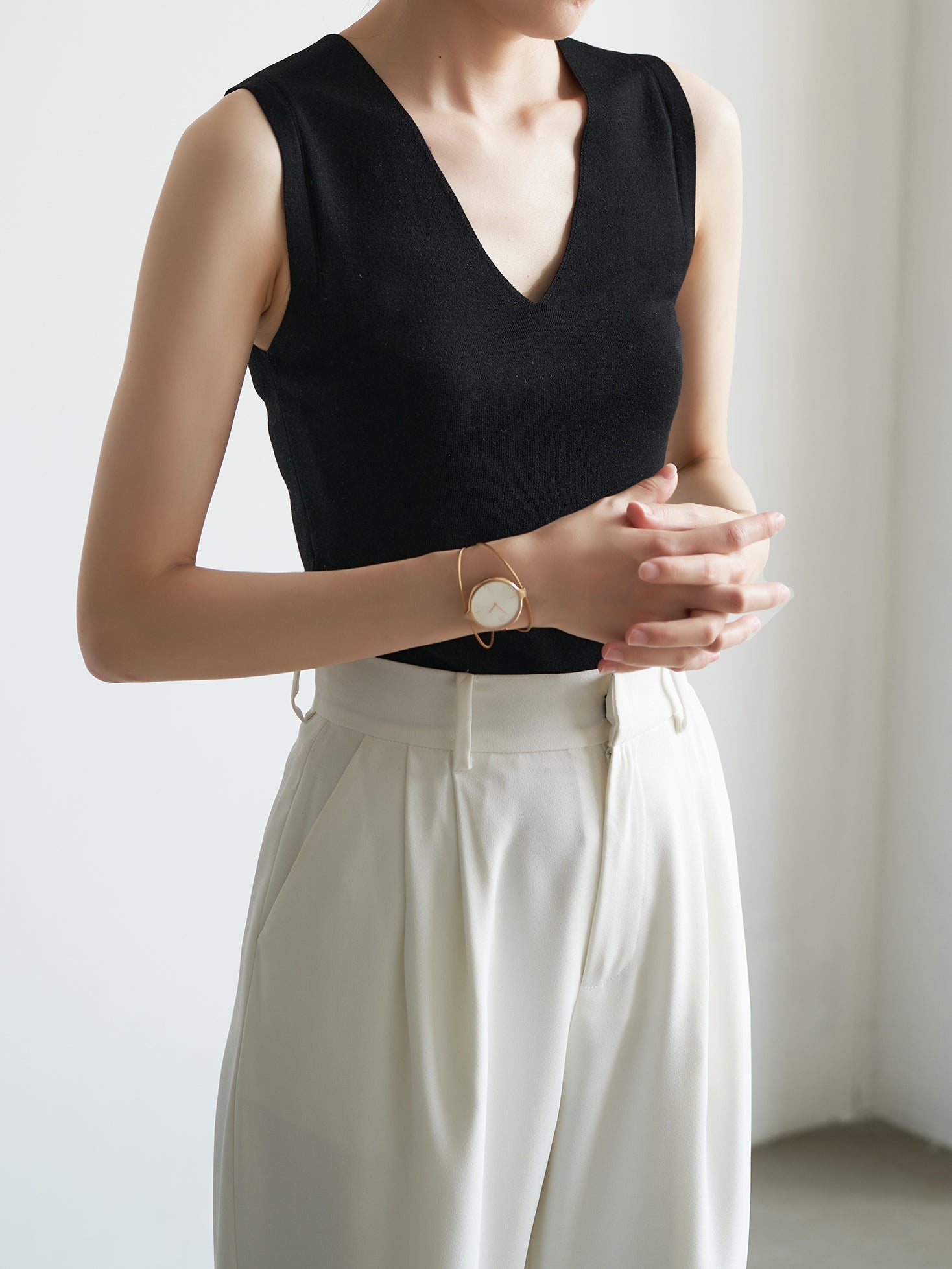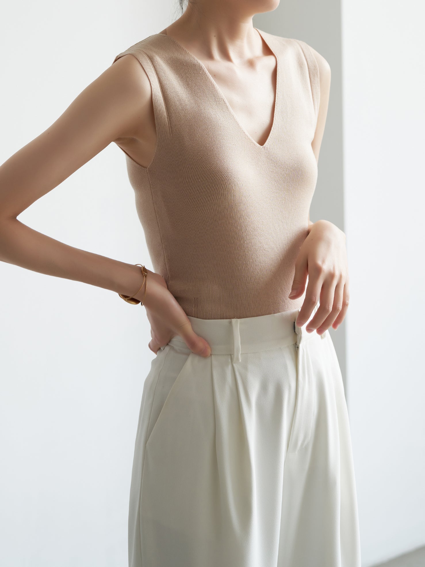 涼しい肌ざわりと着回し力が抜群で、毎日でも着たくなるVネックタンクトップ。