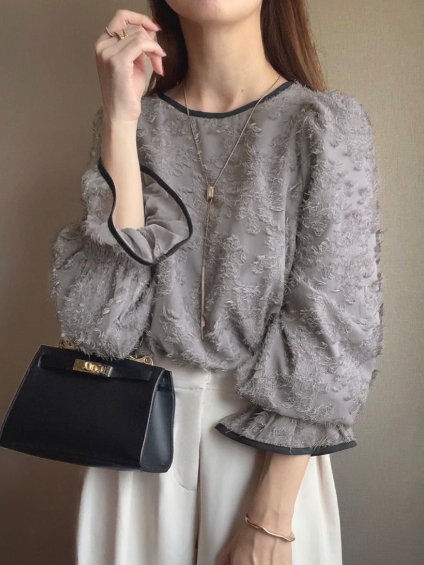 フリンジビジューボタンニットカーディガン+フロントスリットフリンジスカートSET 4色入