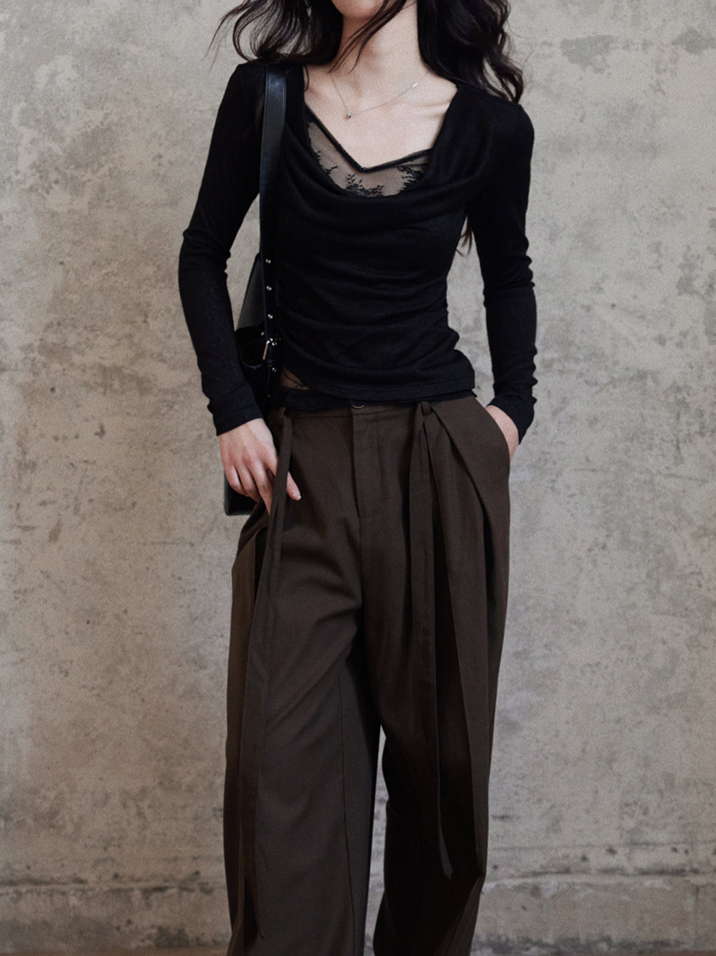 透け感のレースと合わせて、レイヤード風なテイストがより大人っぽく、女性らしさを引き立ててくれます。