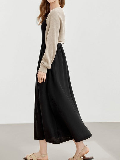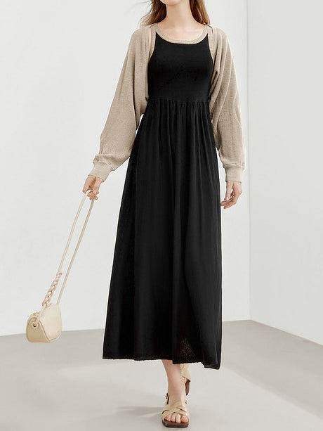 フロントクロスデザインリブニット+リブニットフレアスカートSET 2色入