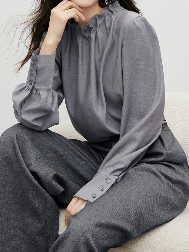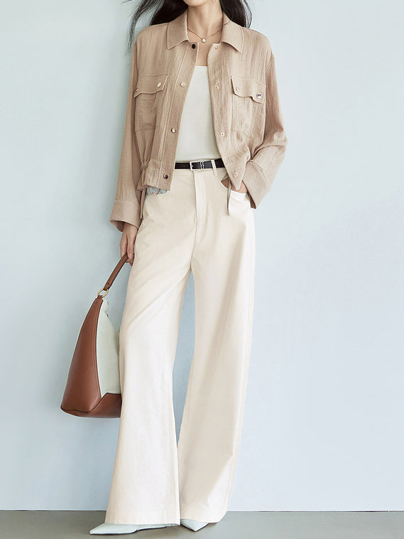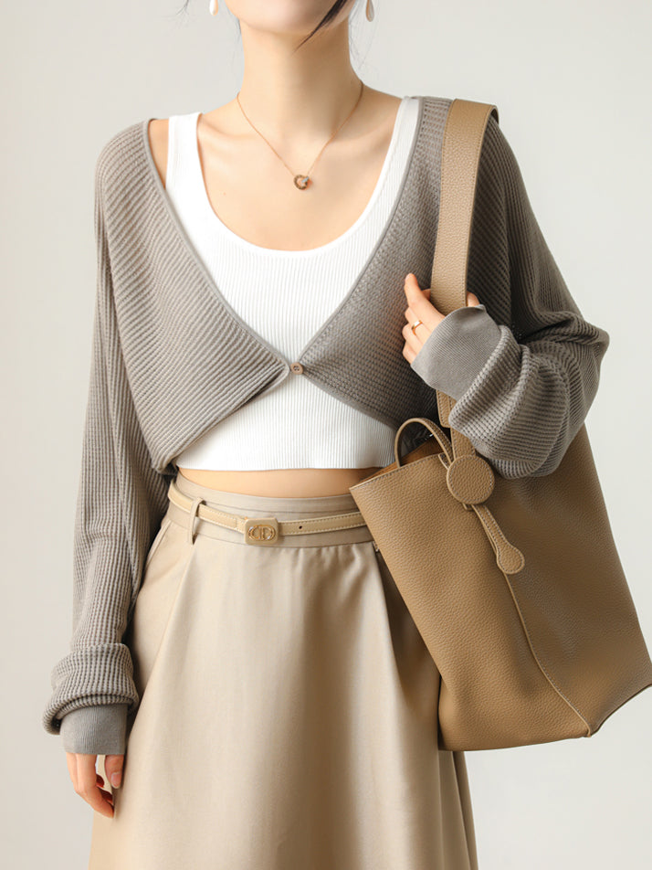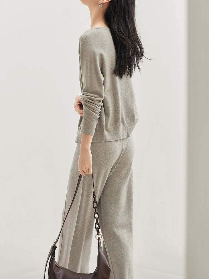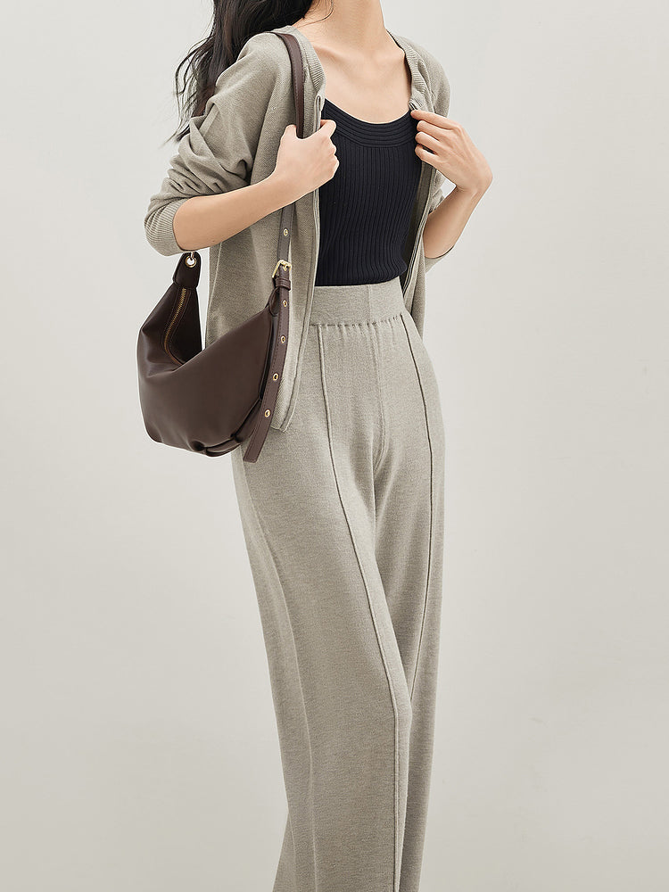 ジップアップカーディガン+ニットワイドパンツSET 2色入