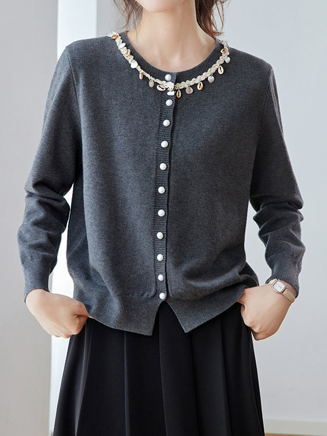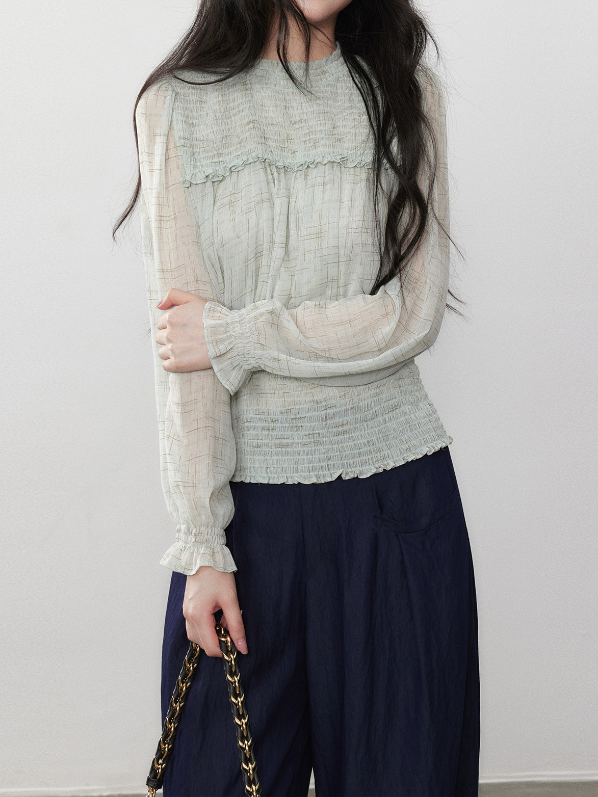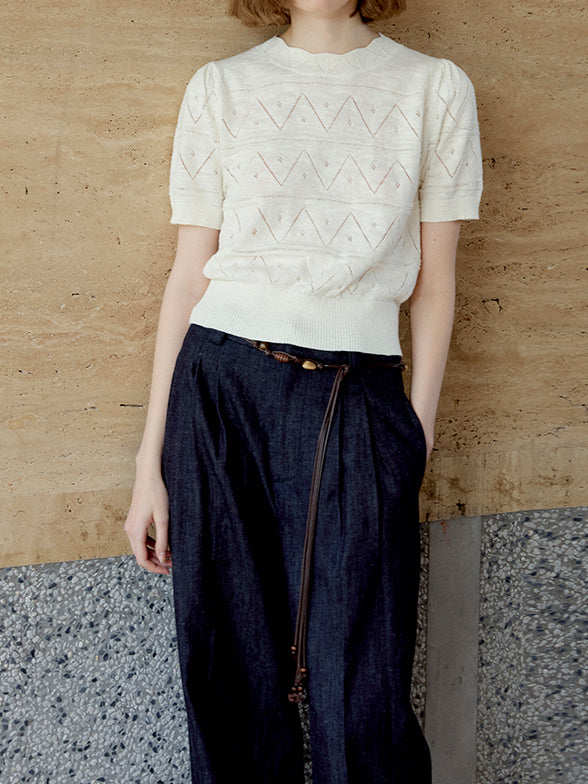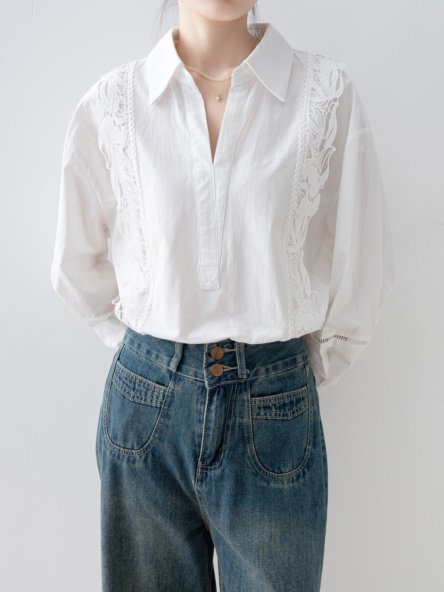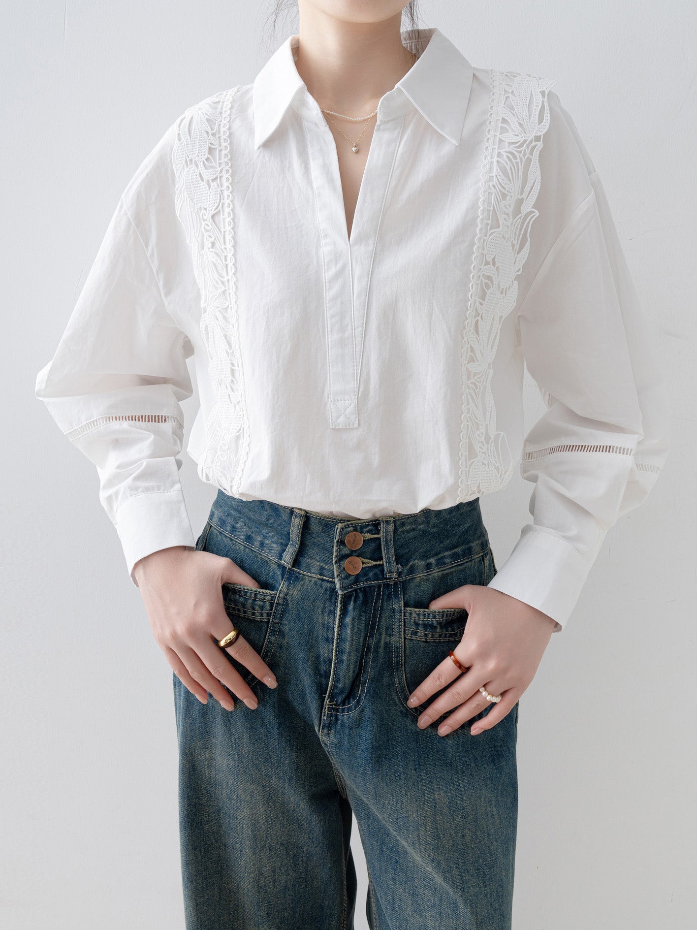 レースレイヤードライトポンチブルオーバー+イージーパンツSET 2色入