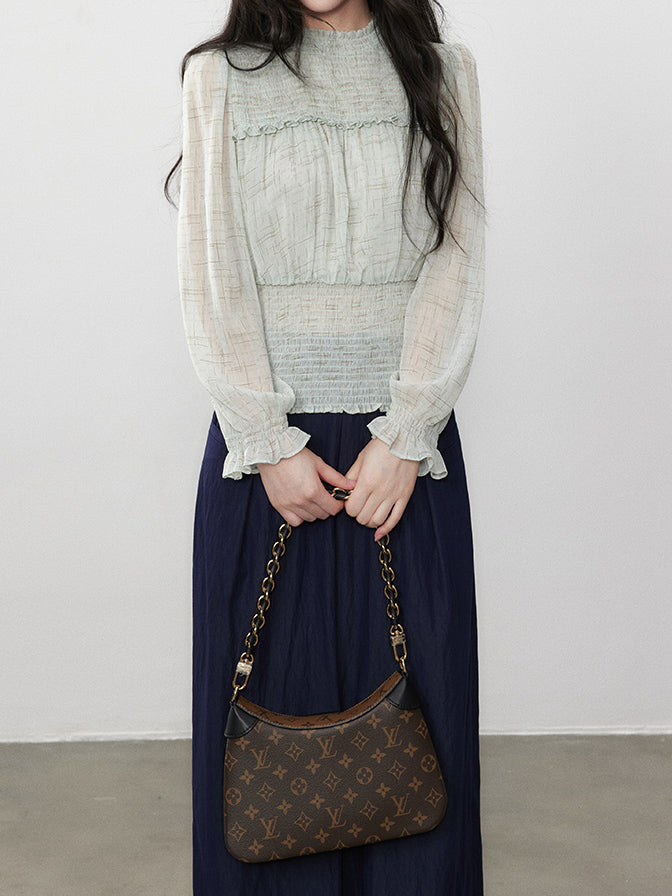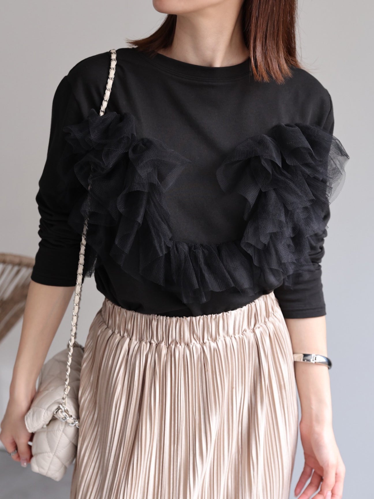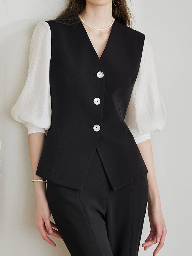 異素材ドッキングバルーンスリーブブラウス 2色入