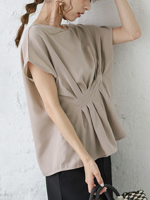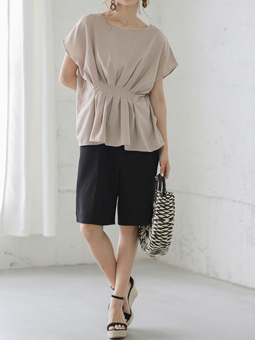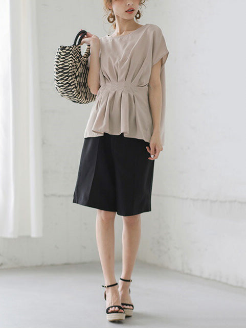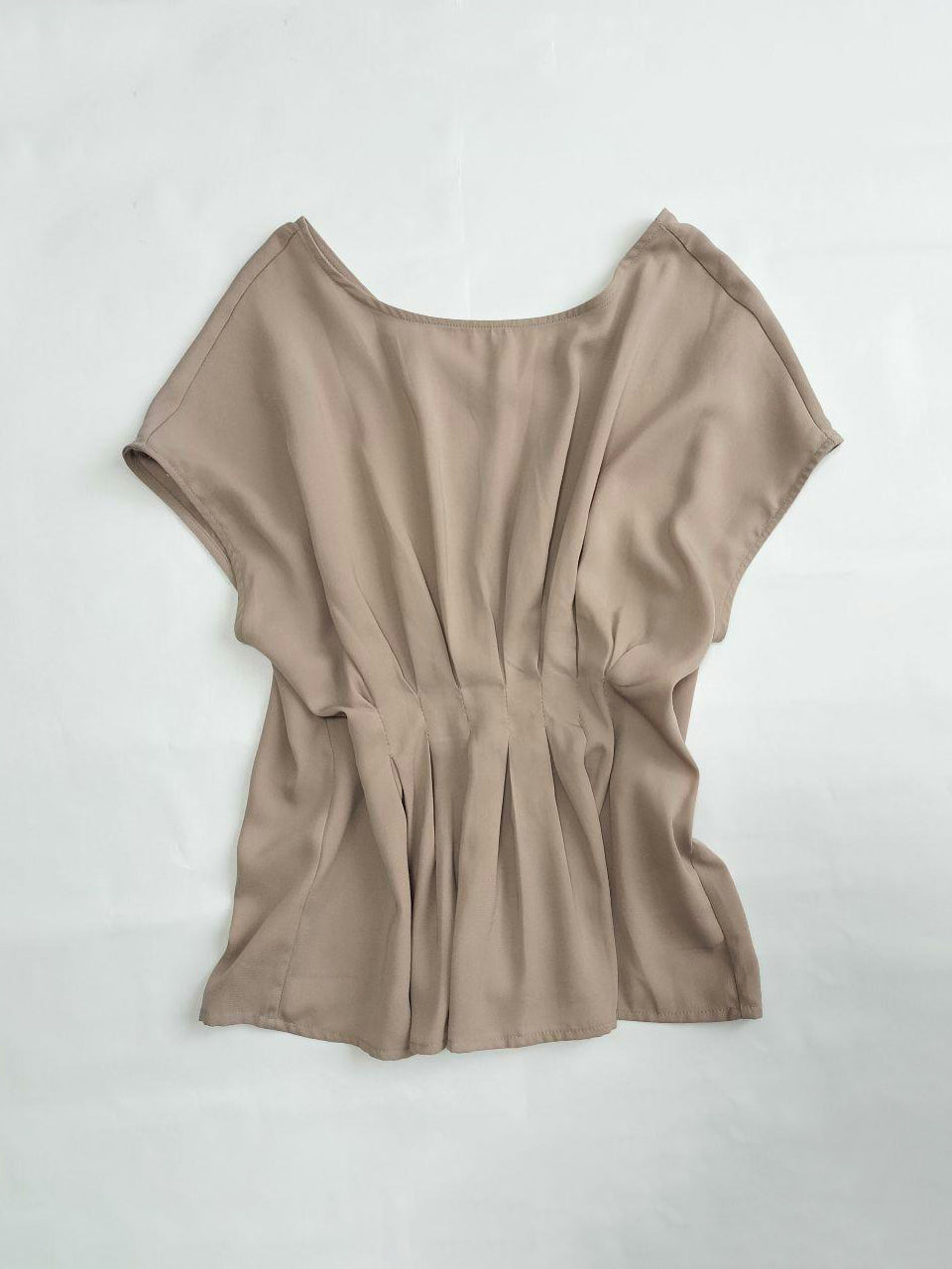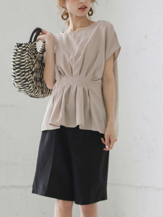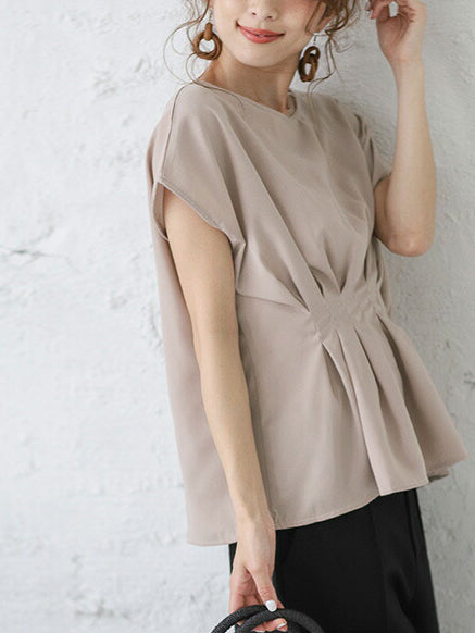 【ウエストのタックデザインが華やか、前後2WAYデザインのブラウス】