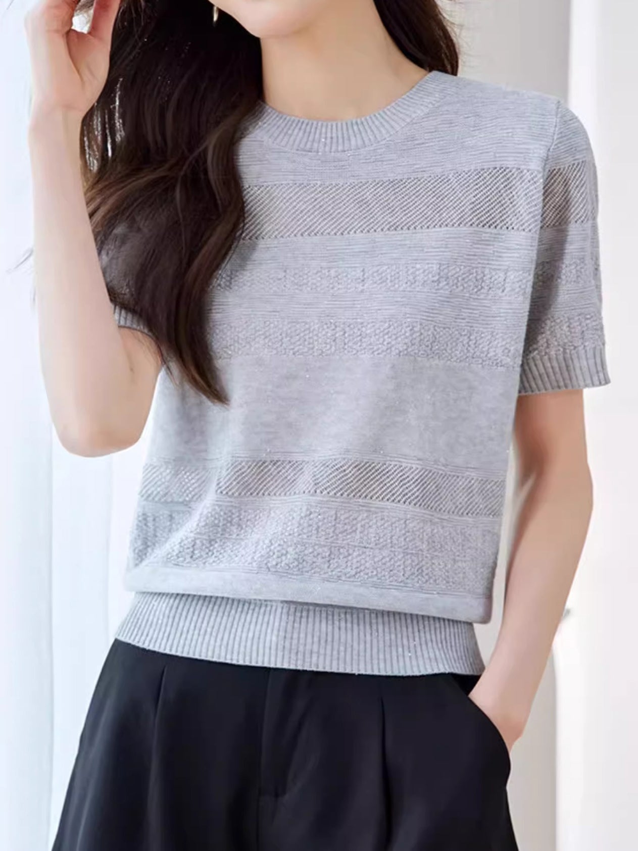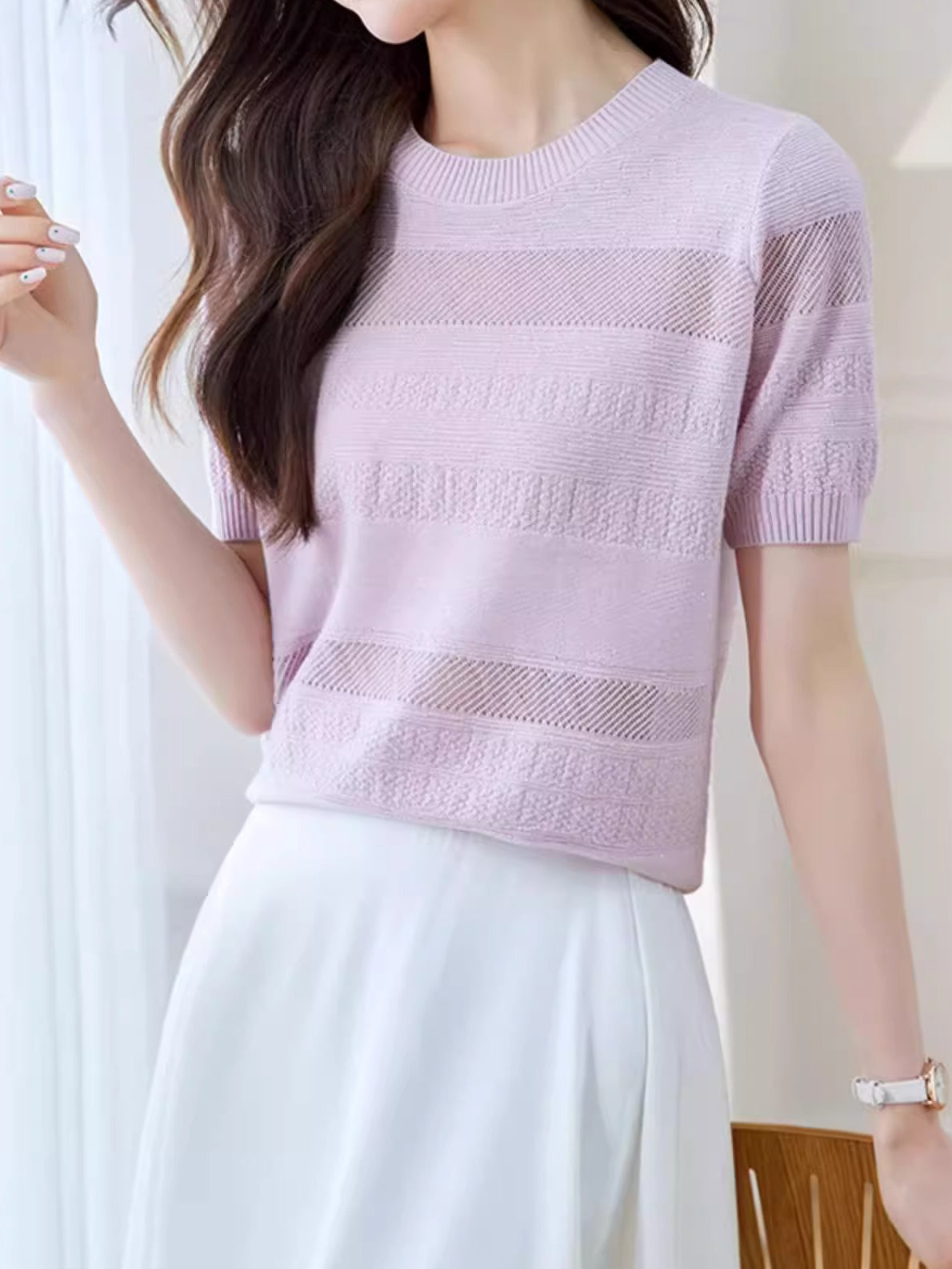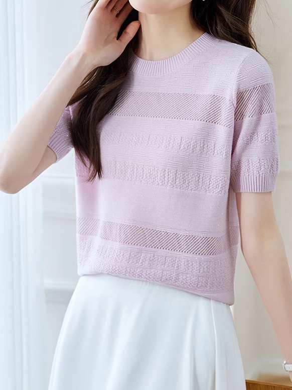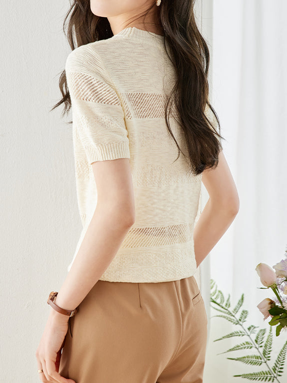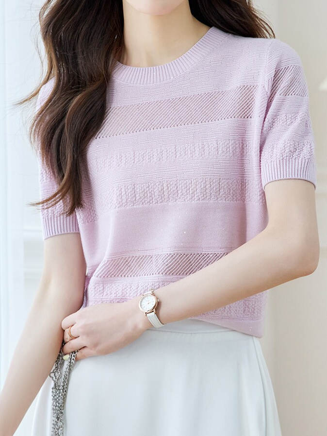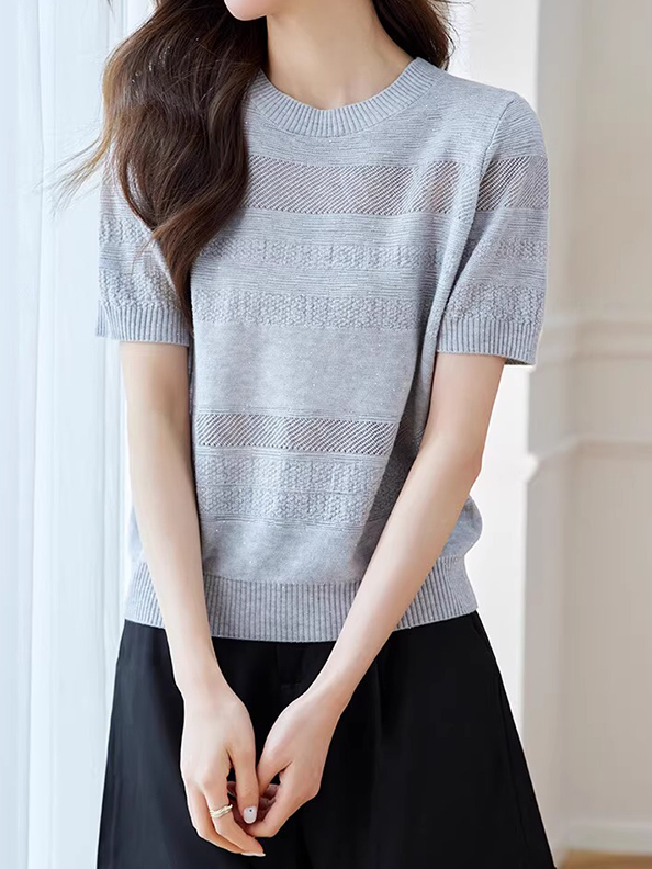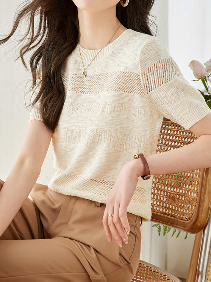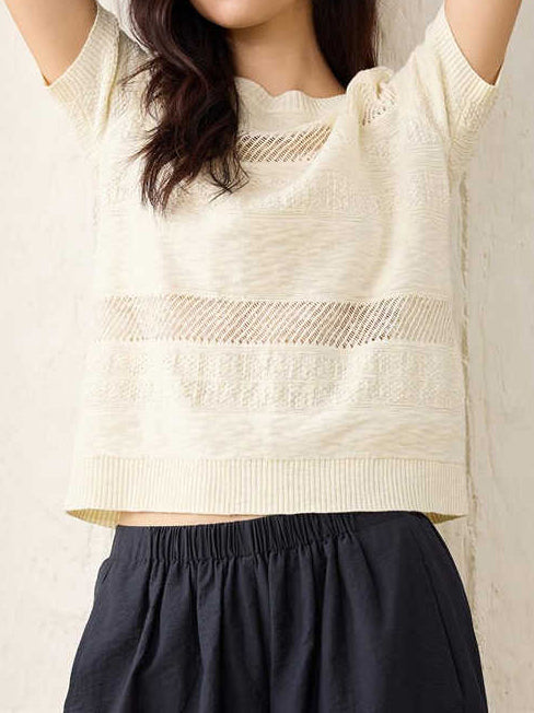 透け感のあるボーダー編みが軽やかで涼しげなニットトップス。