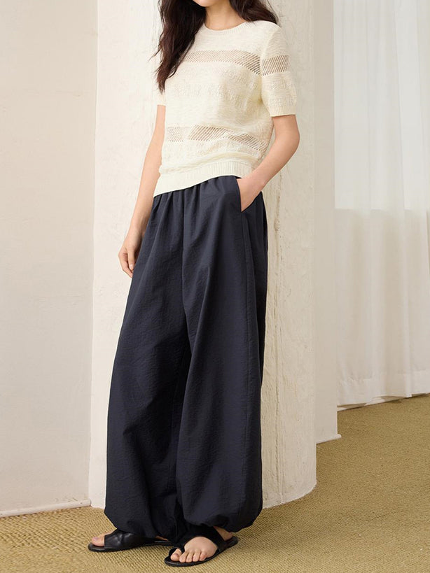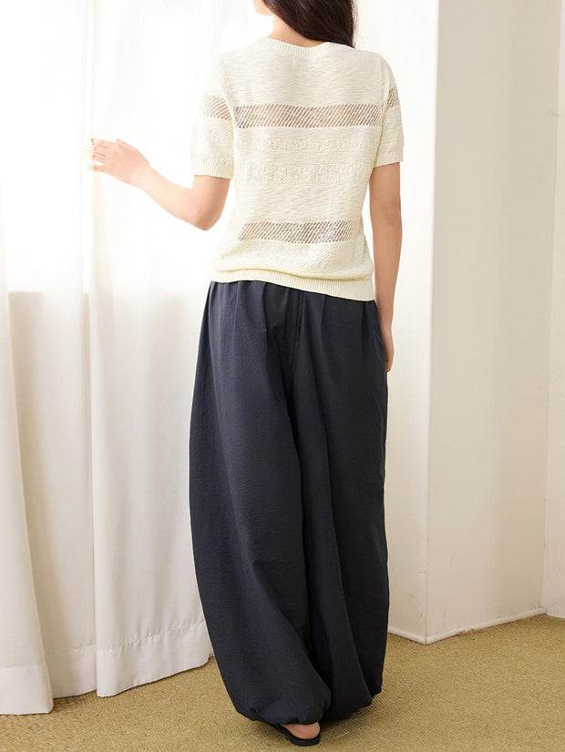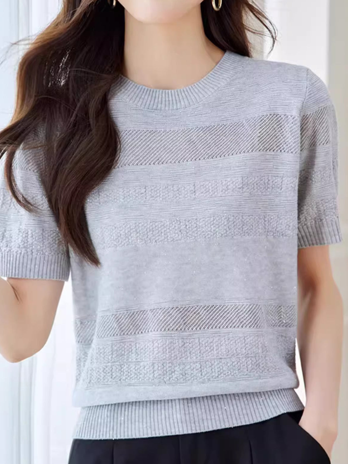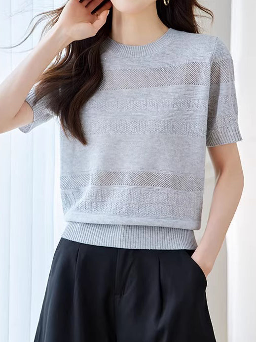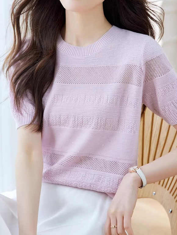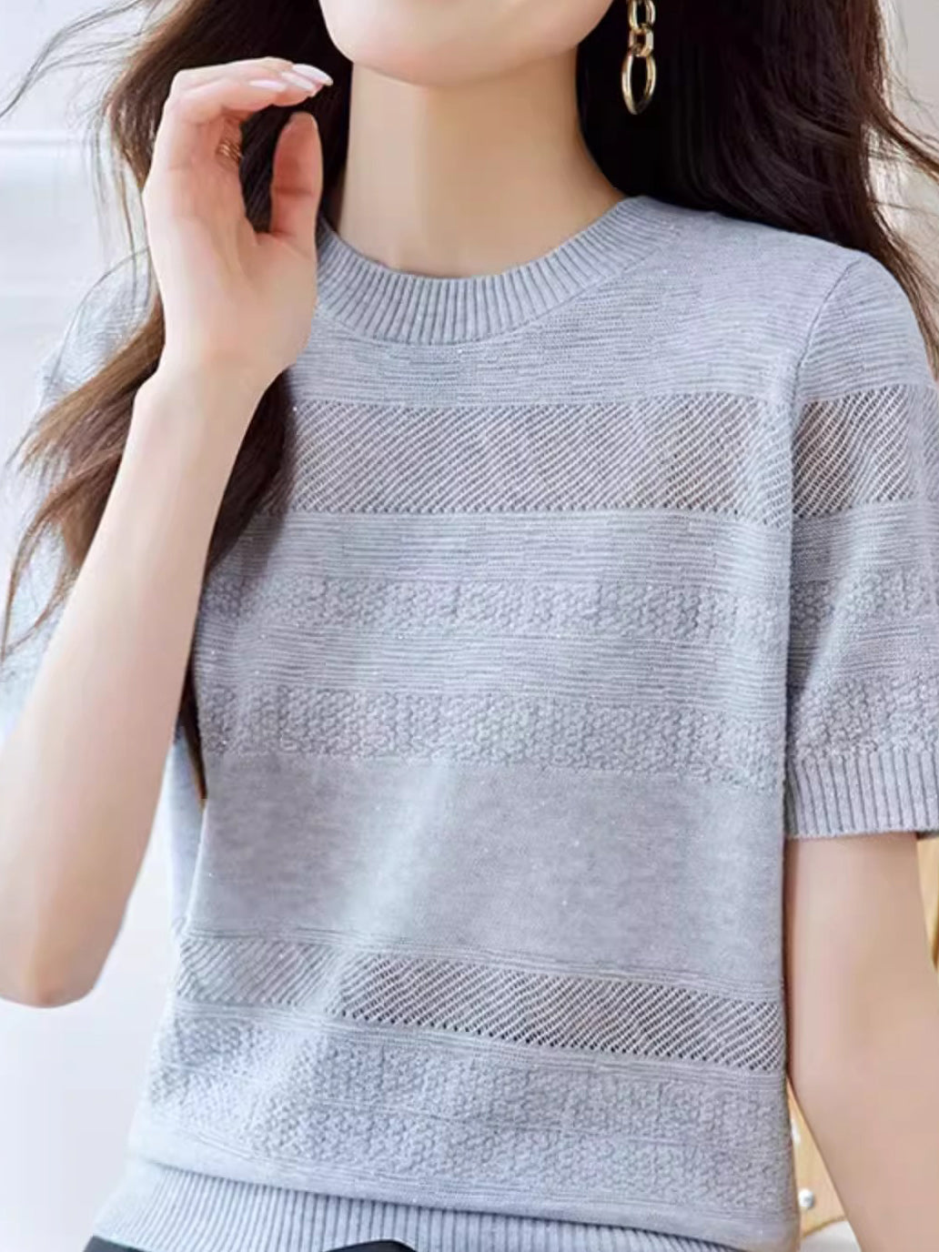 透け感のあるボーダー編みが軽やかで涼しげなニットトップス。