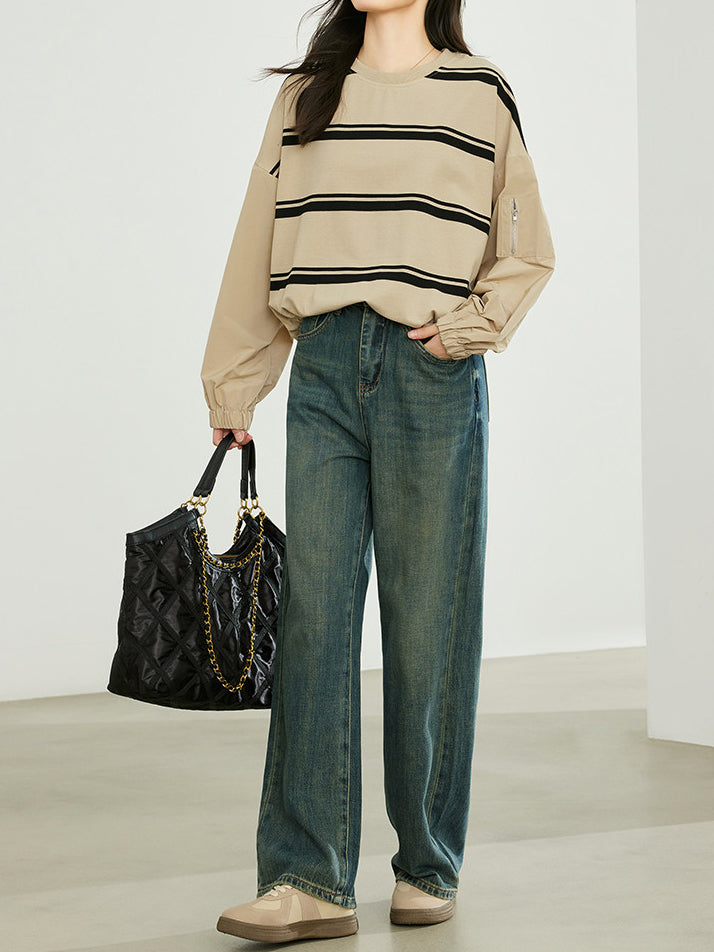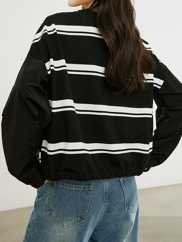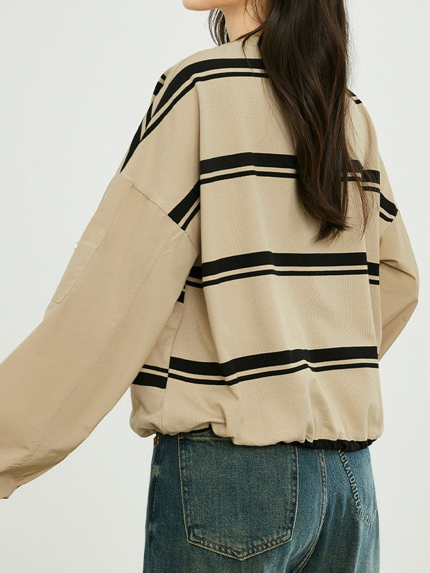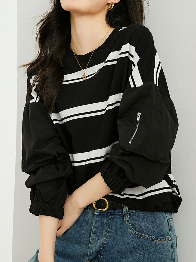 ワークテイストのディテールに、カジュアルなボーダー柄スリーブを組み合わせたプルオーバー。