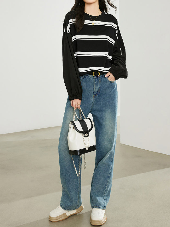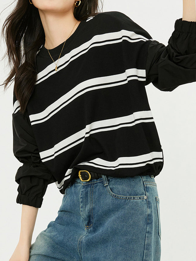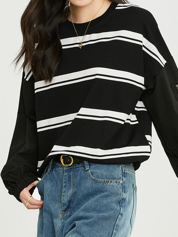 【ワーク×ボーダーの絶妙ミックス・抜け感プルオーバー】