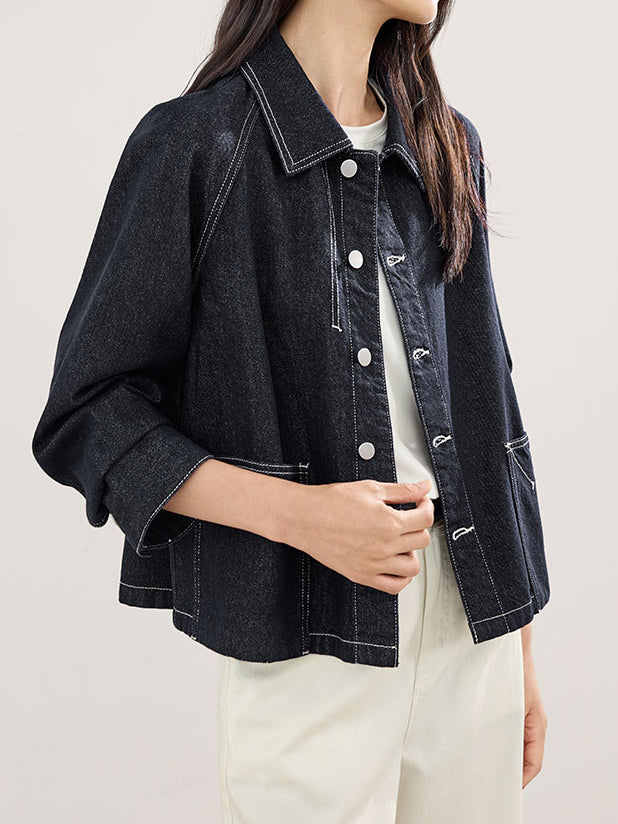 ラグランスリーブステッチデニムジャケット