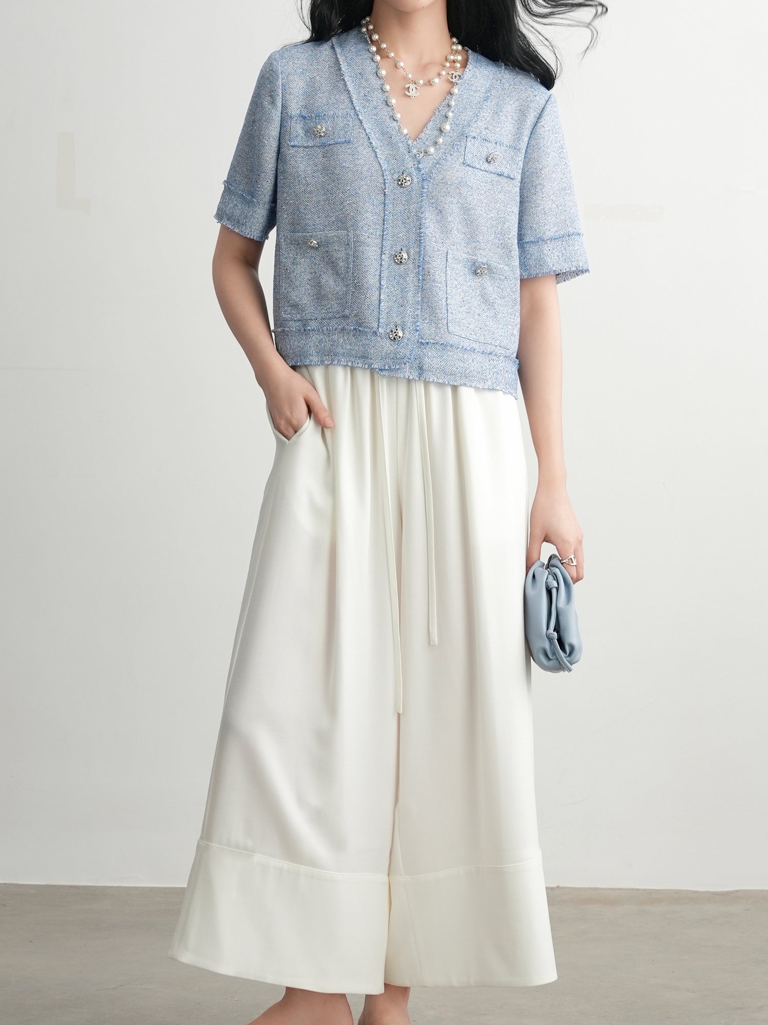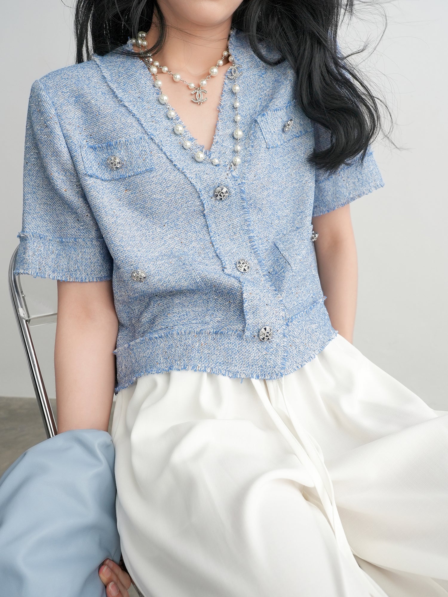 フリンジビジューボタンクロップトカーディガン
