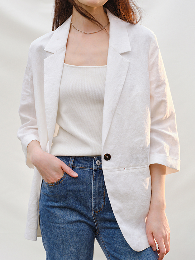 リネンライクテーラードジャケット<セットアップ可能>