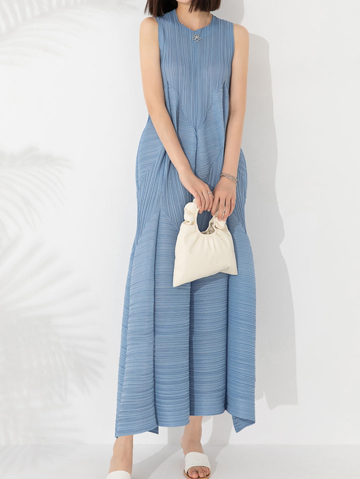 3Dプリーツロングフレアワンピース 4色入