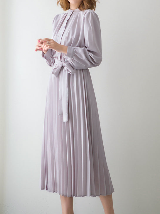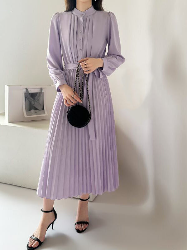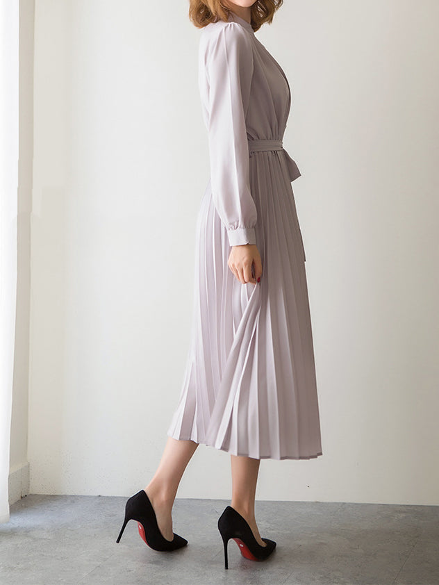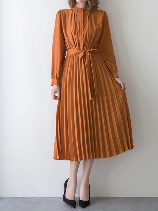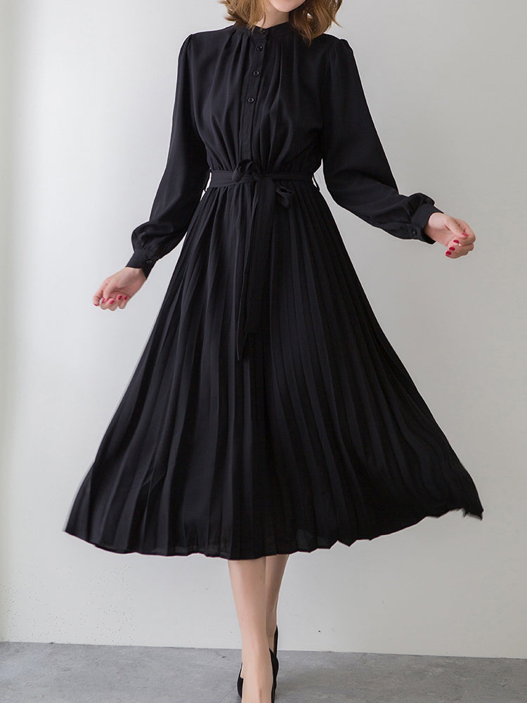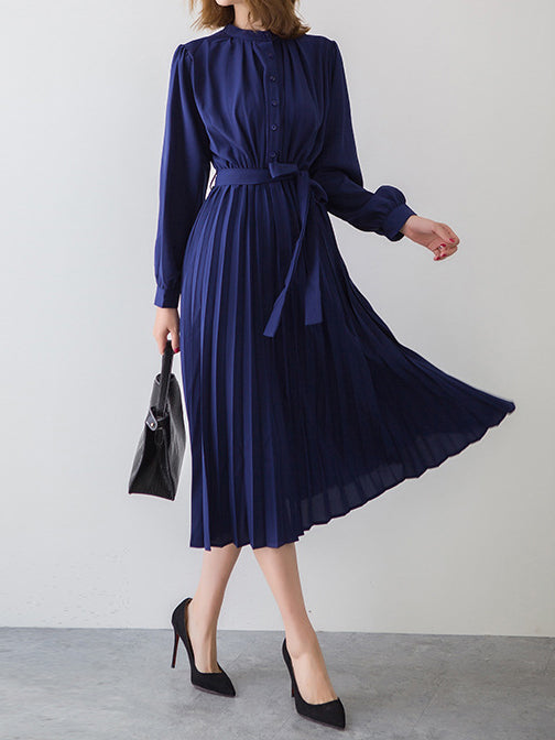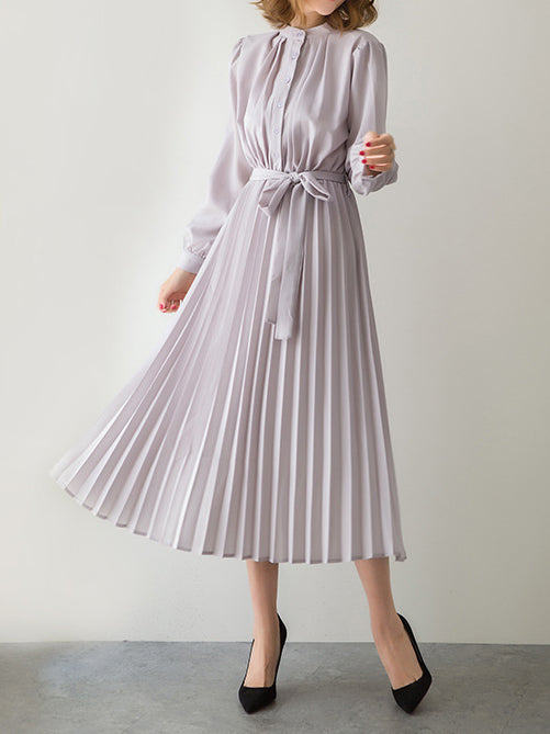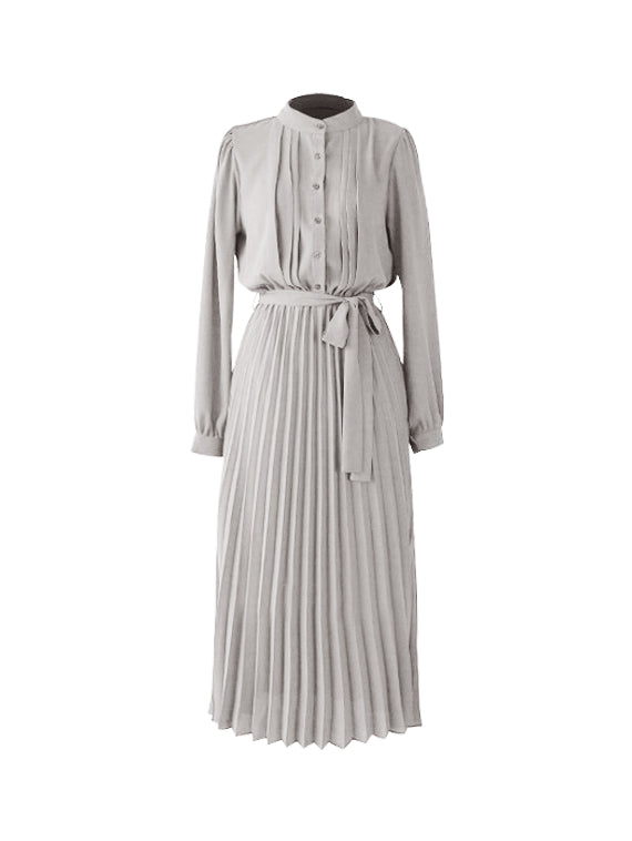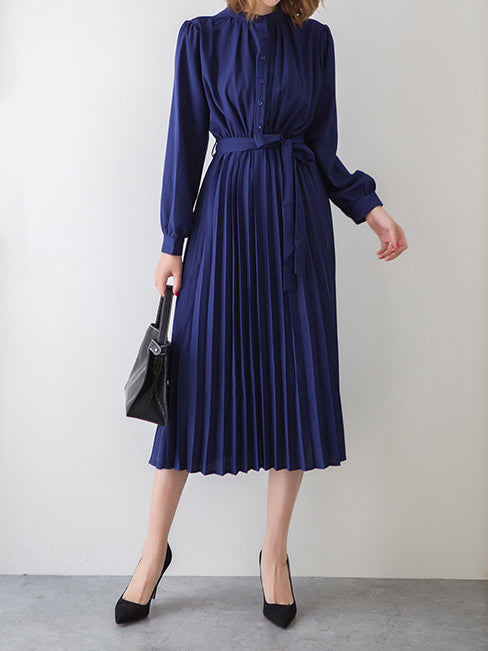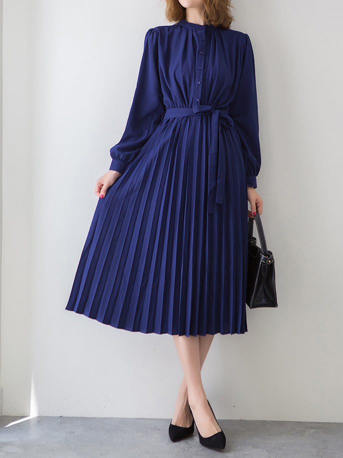☆上身頃部分はスタンドカラーのシャツ風、スカート部分はプリーツデザイン