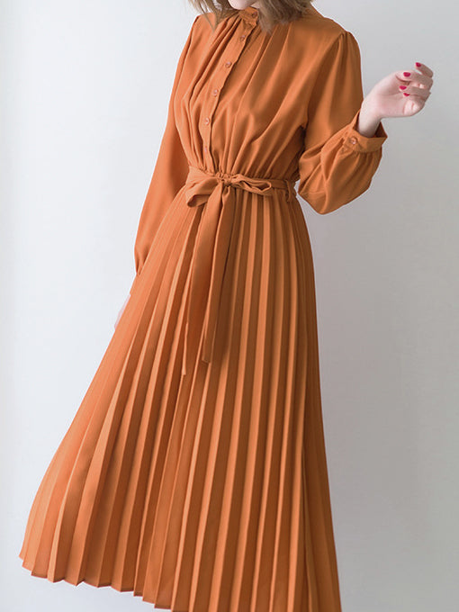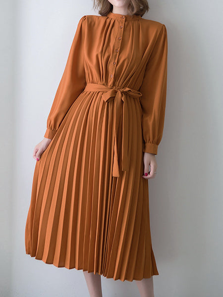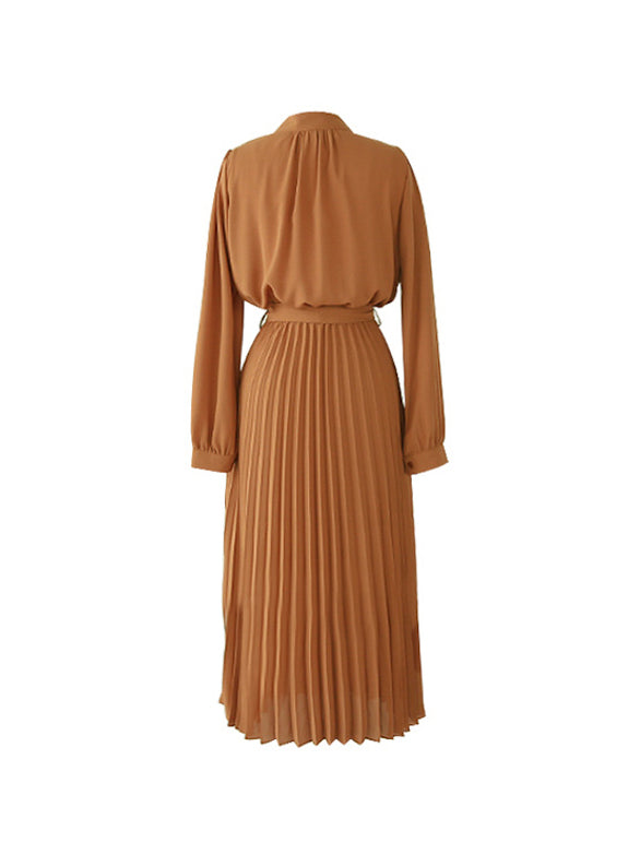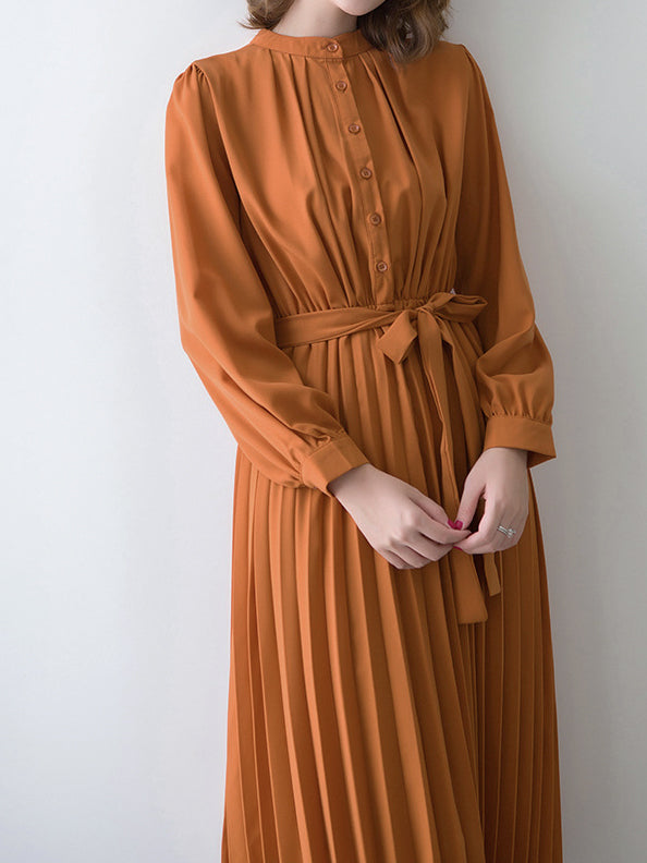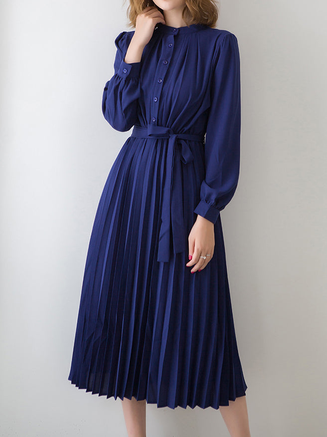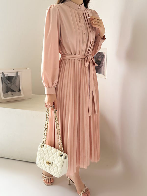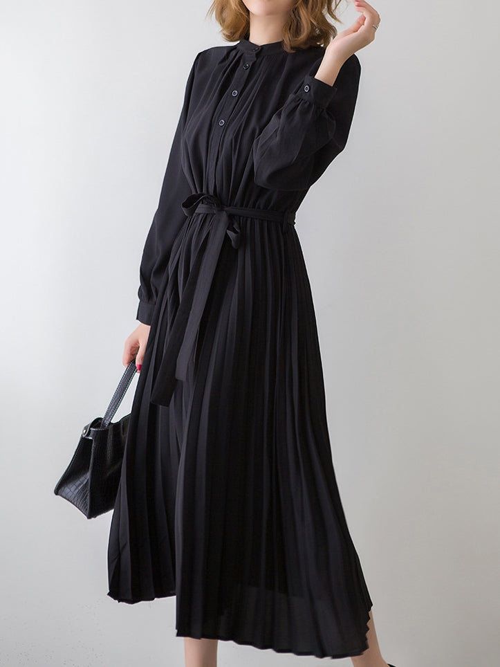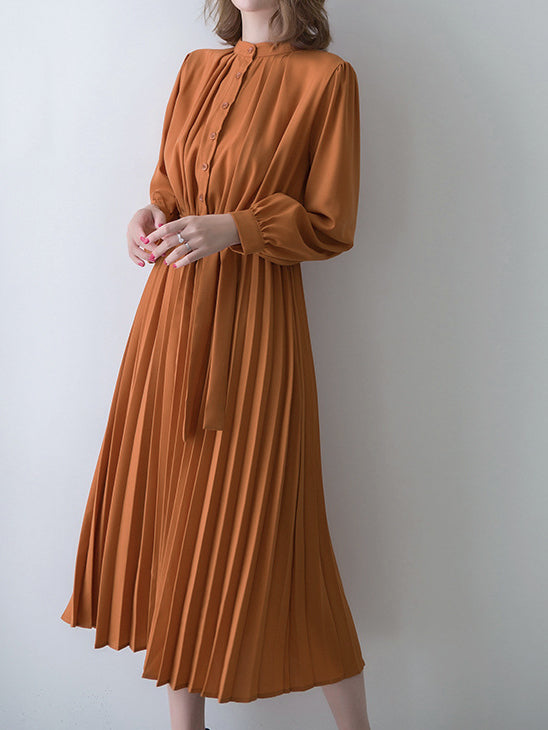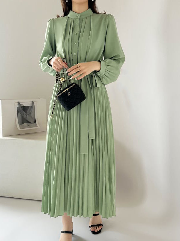 ☆上身頃部分はスタンドカラーのシャツ風、スカート部分はプリーツデザイン