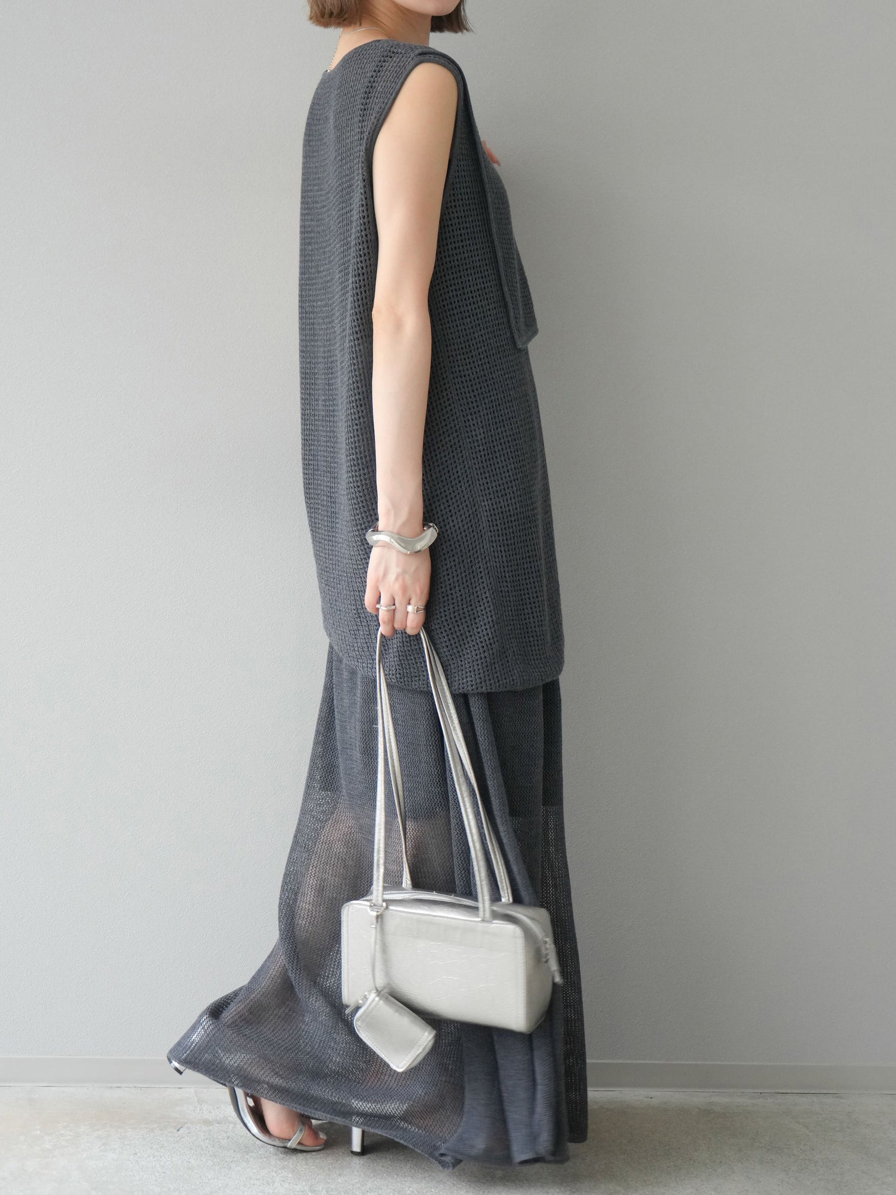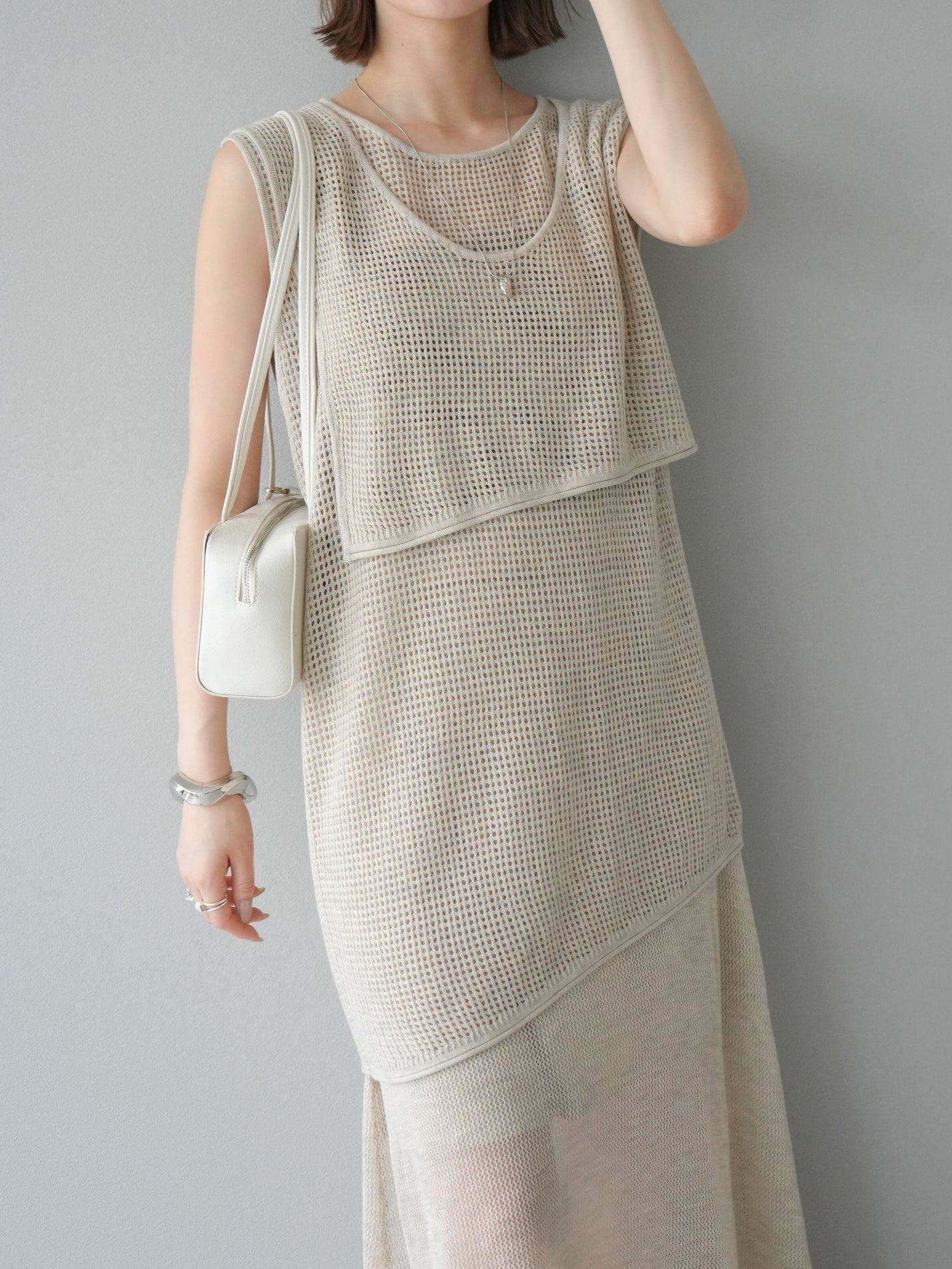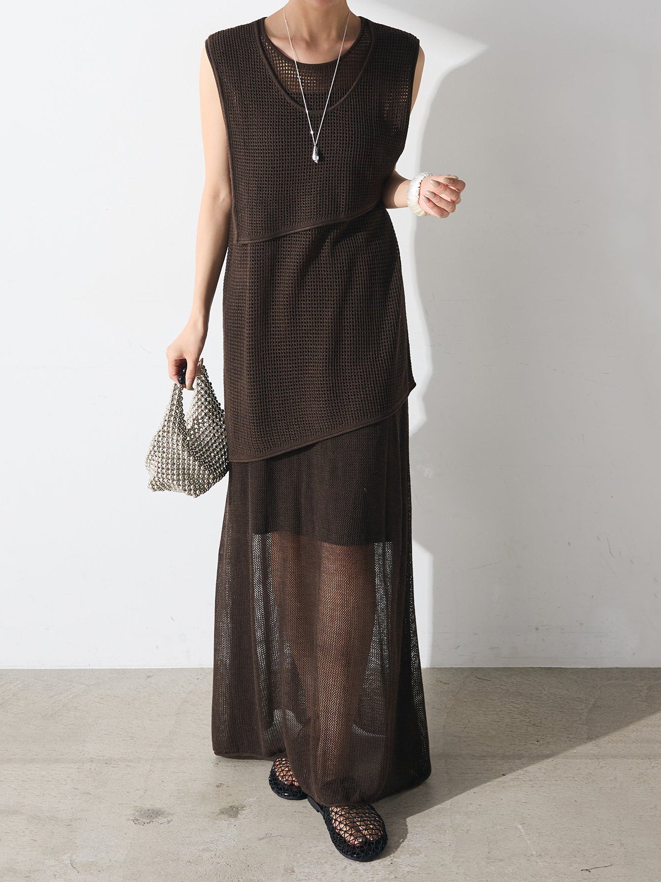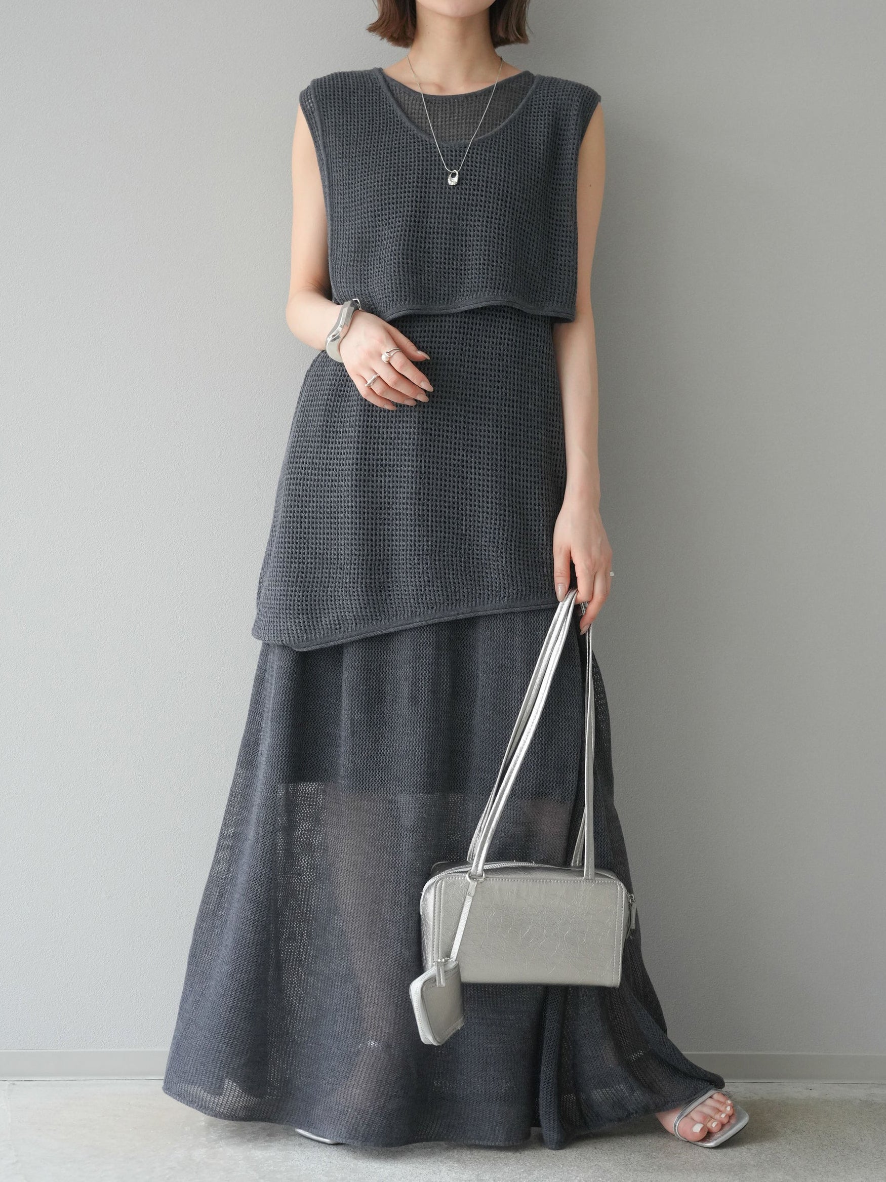 メッシュ編みザインが特徴的な、軽やかな素材感でロングシーズン活躍します。