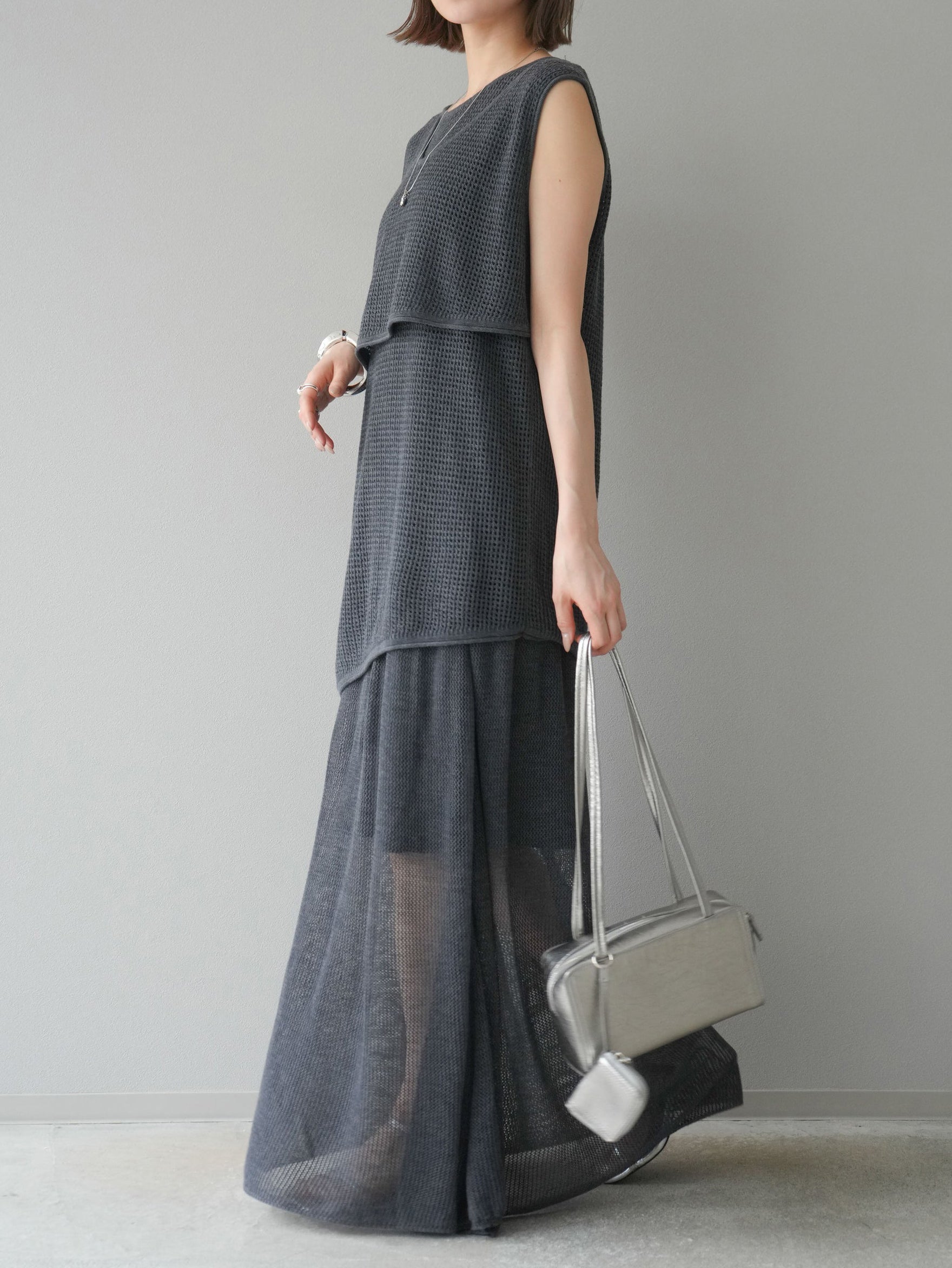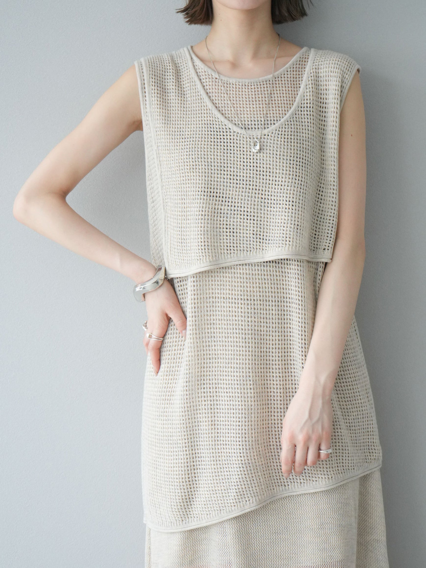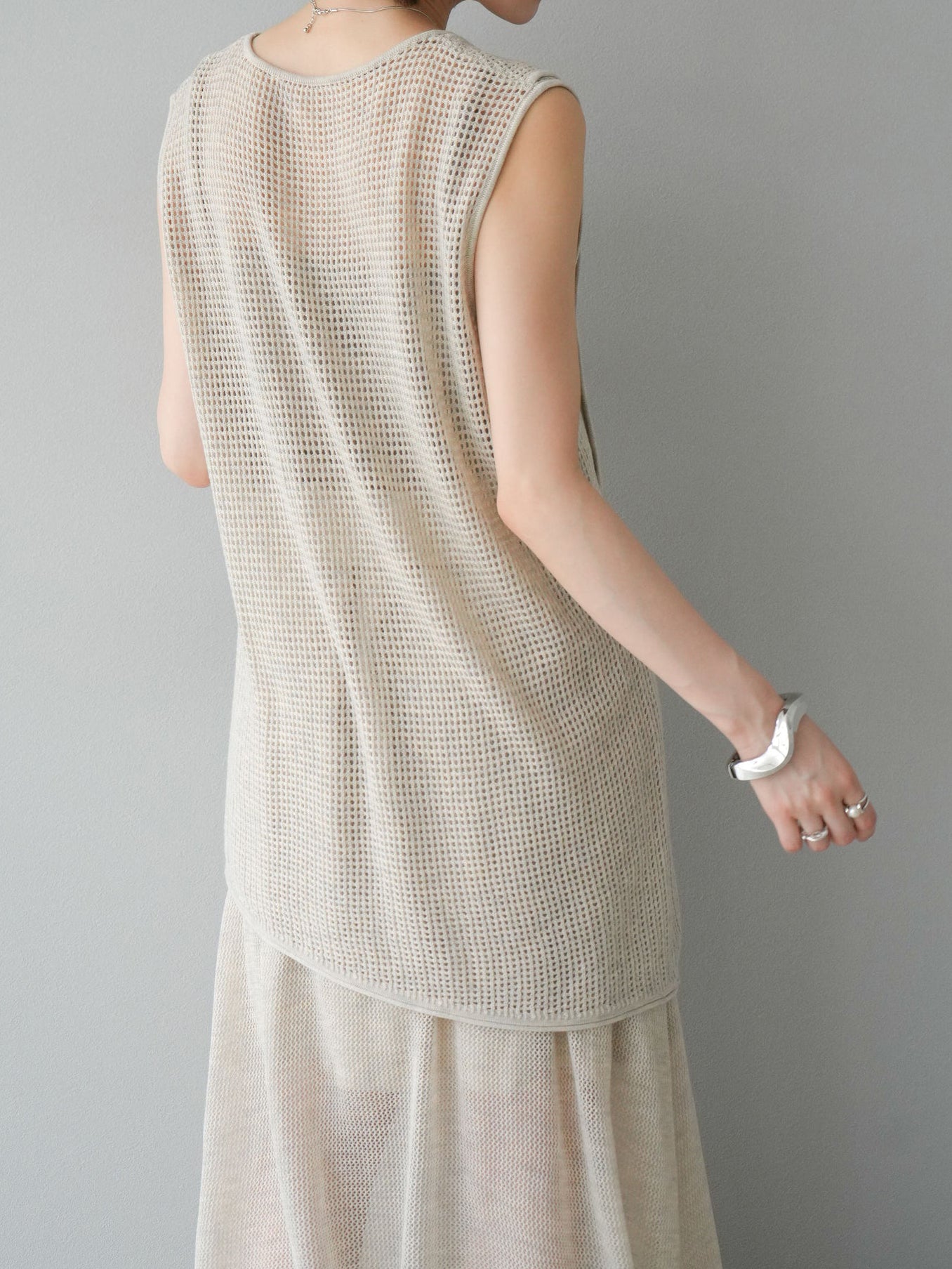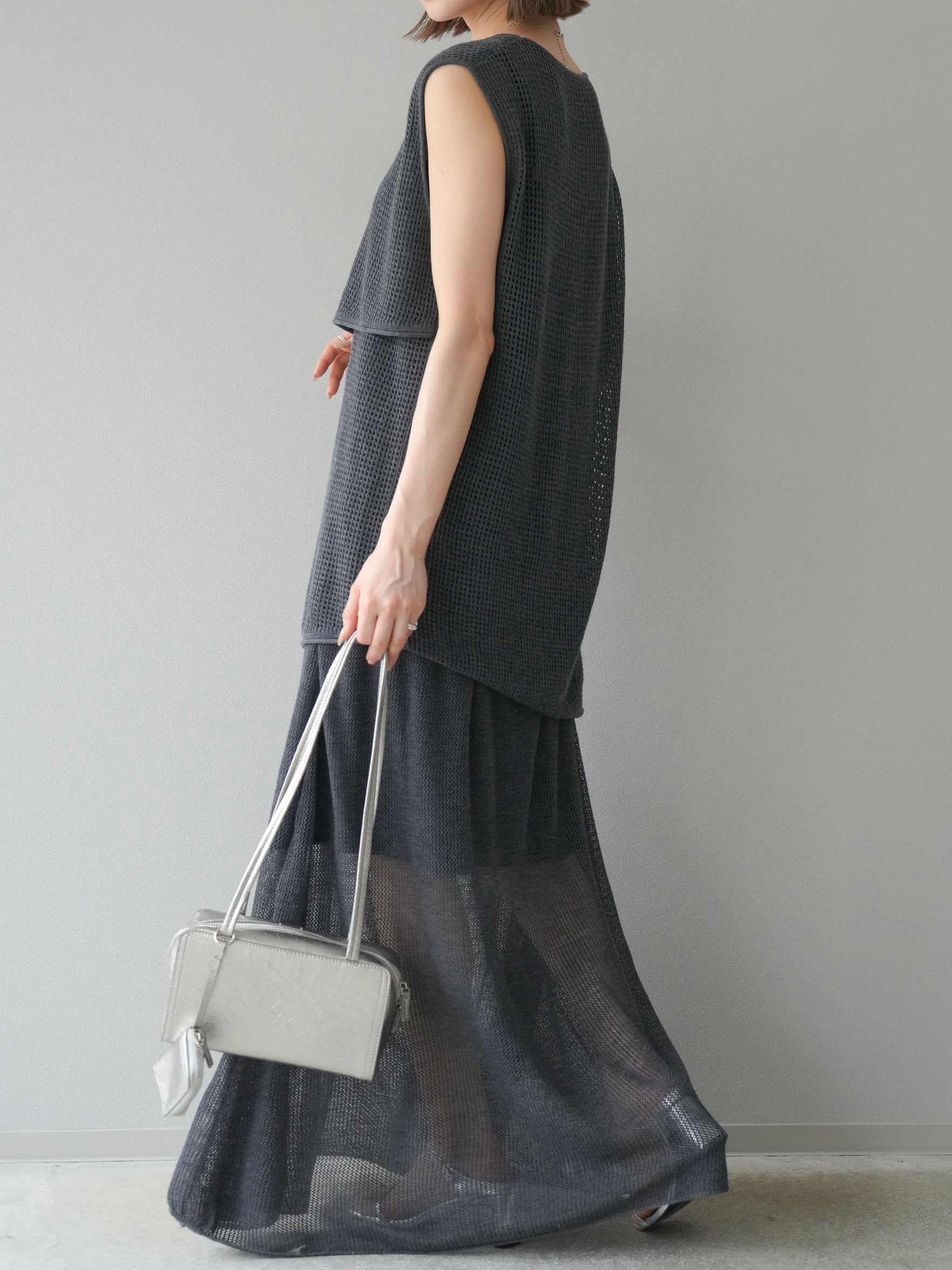 透け感のあるメッシュニット素材を使用しています。