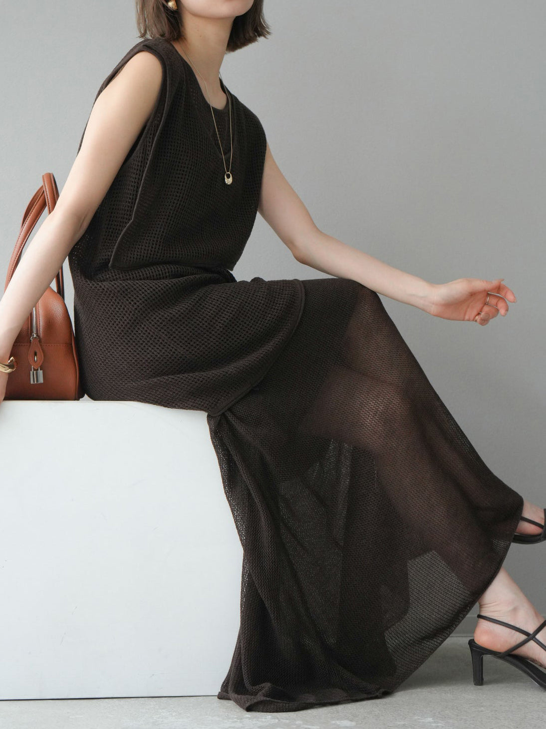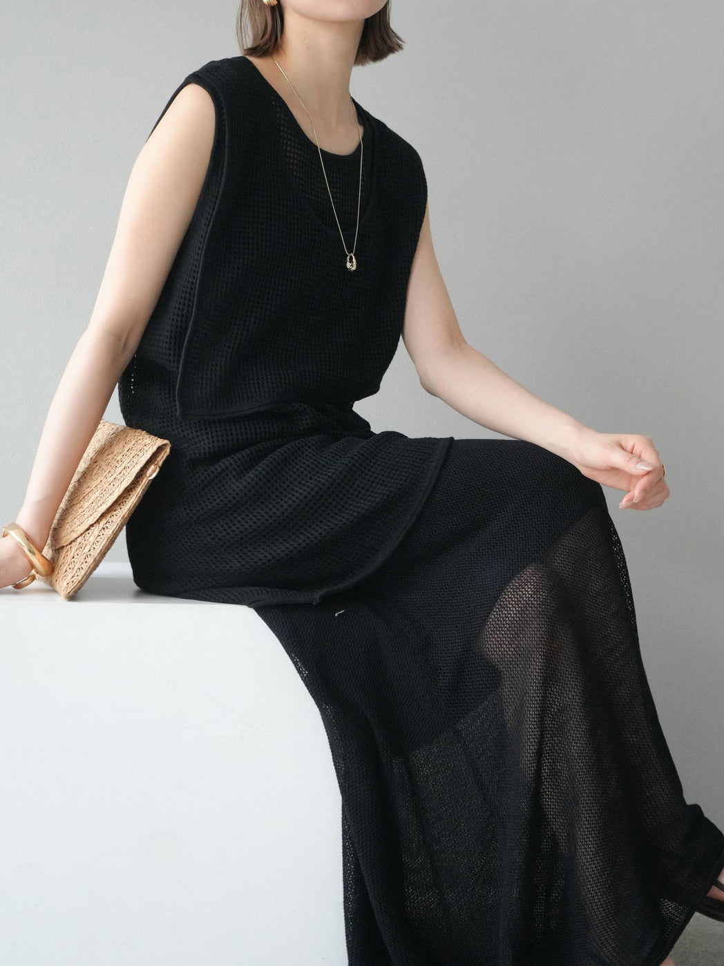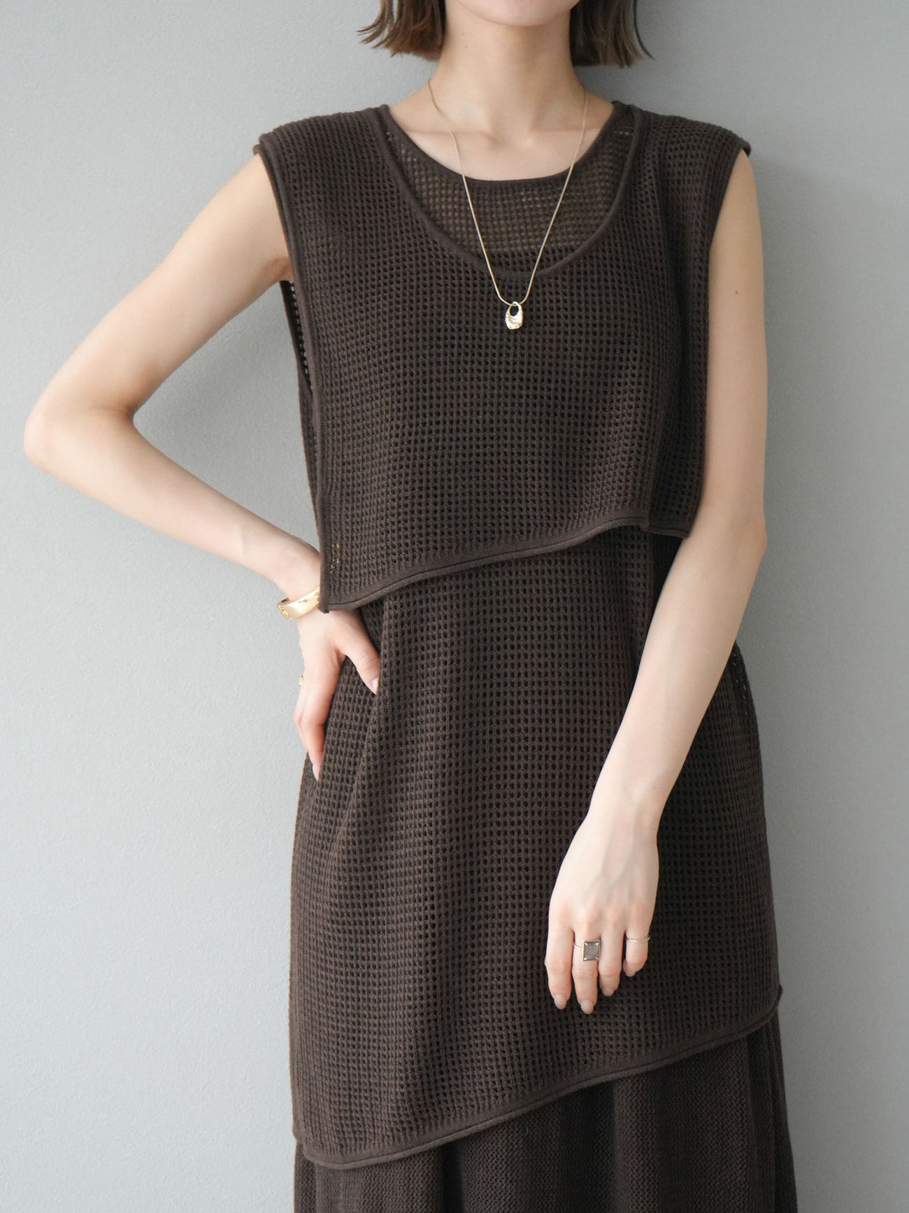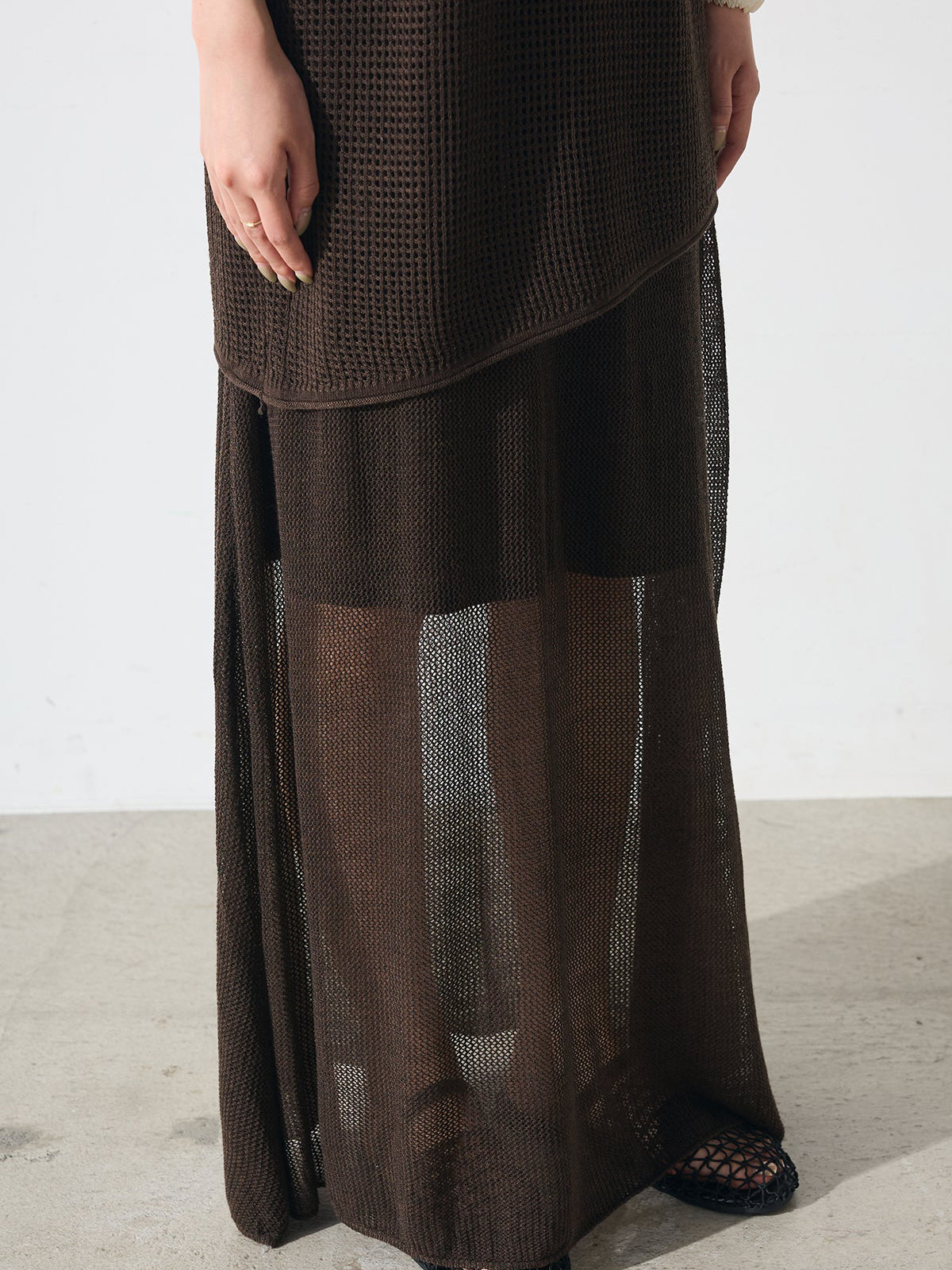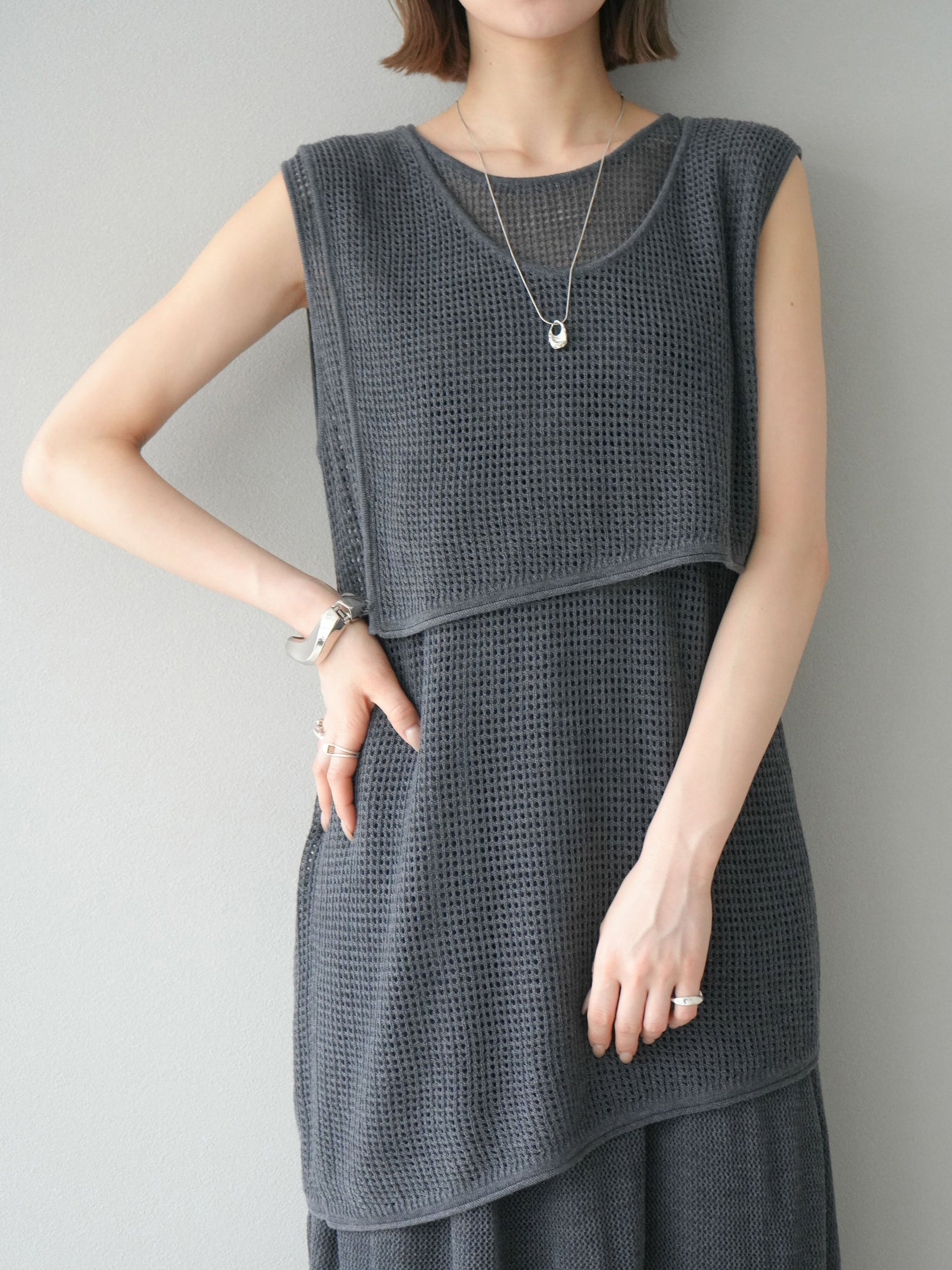 透け感のあるメッシュニット素材を使用しています。