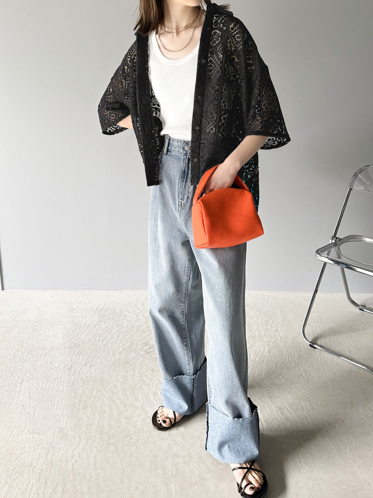 【レトロなシアークロシェが甘くなりすぎない大人コーデにぴったり】