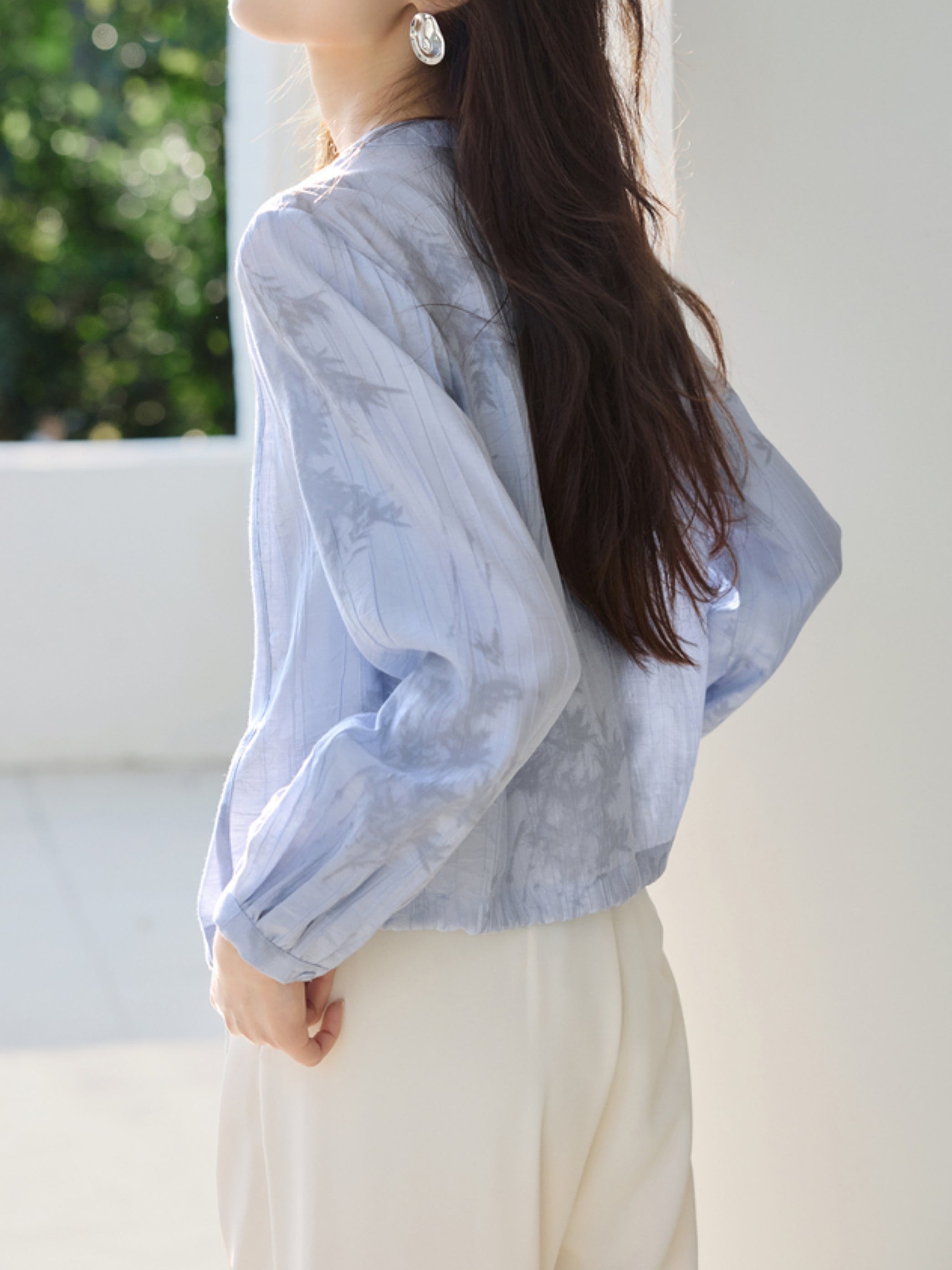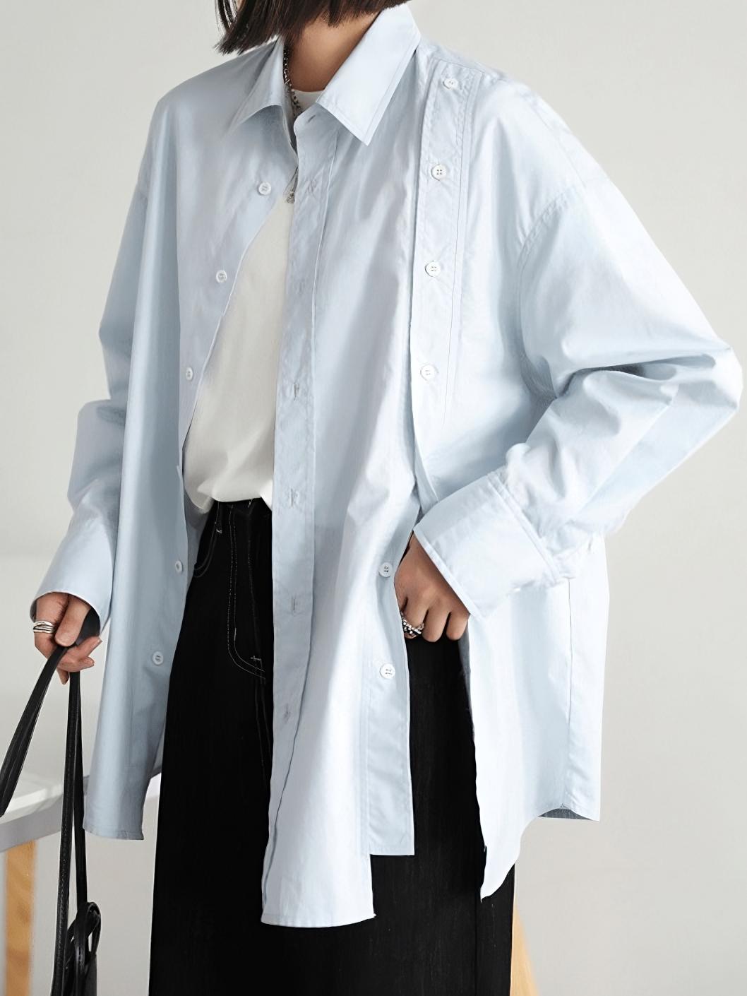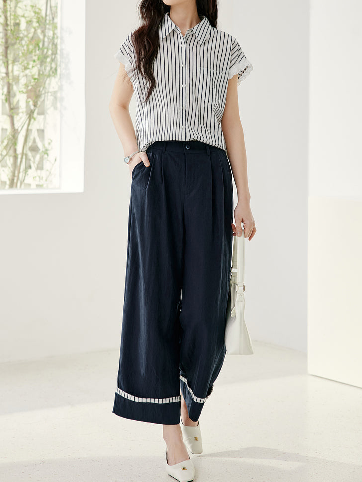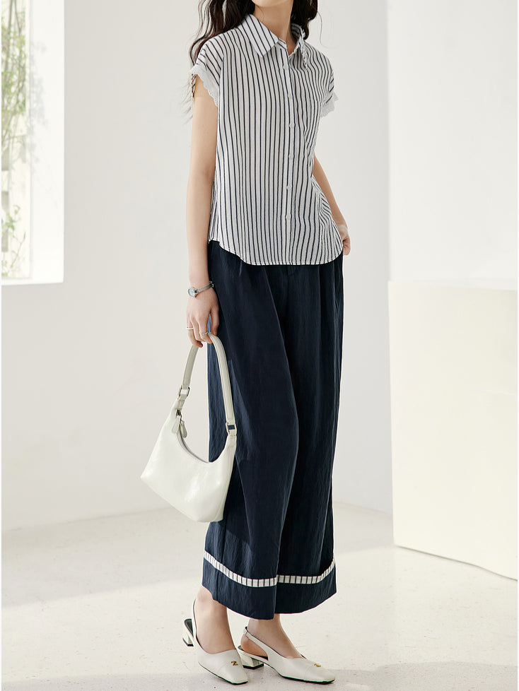 レースヘムストライプシャツ+ストライプドッキングワイドパンツSET