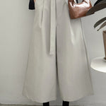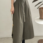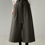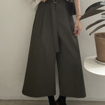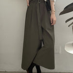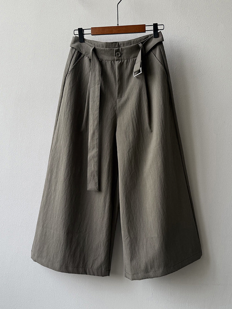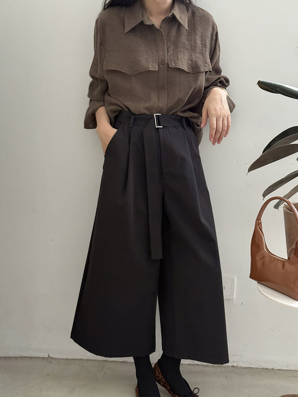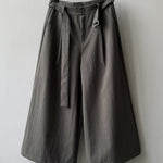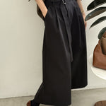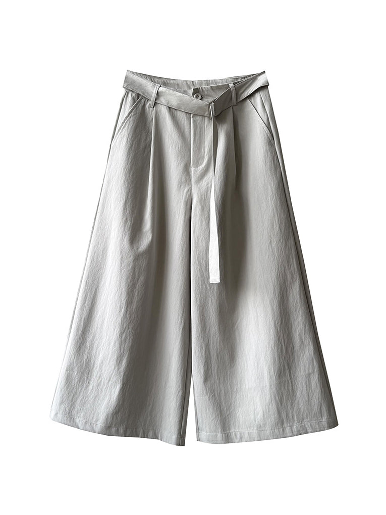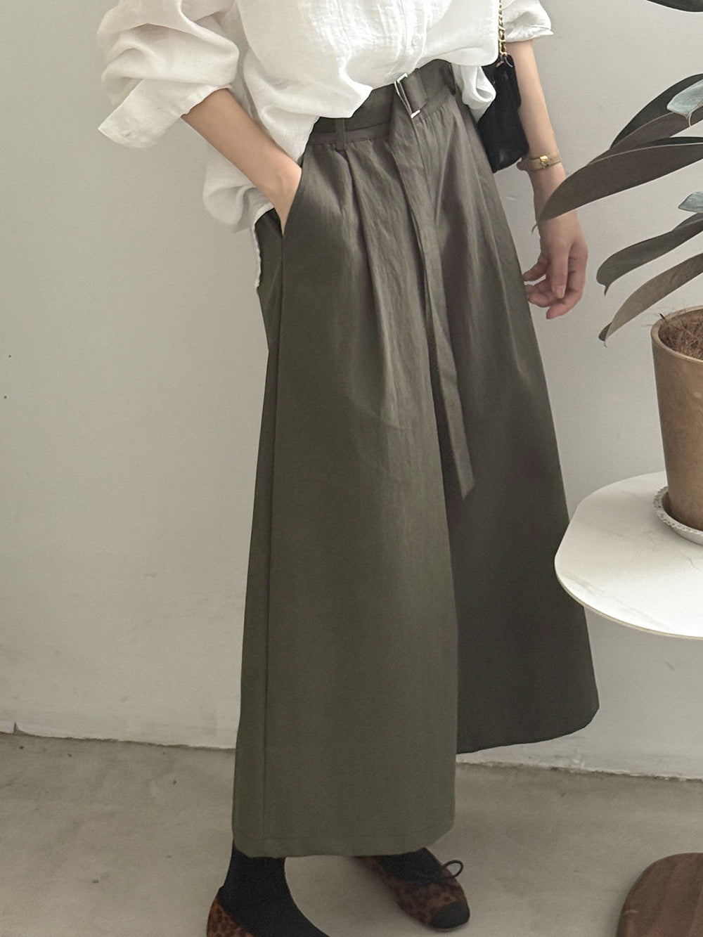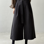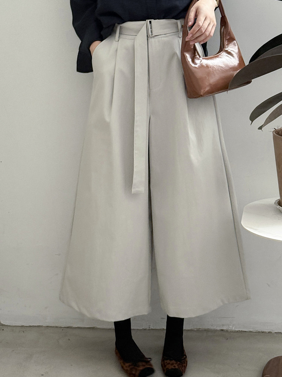 ウエストの共布ベルトと深めのタックが美シルエットを叶える、上品ワイドパンツ。