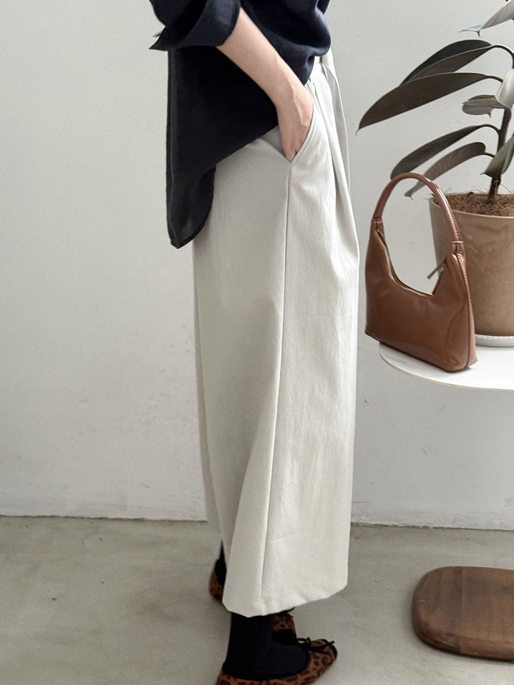 ☆ほんのり広がったワイドラインが、気になる脚のラインをカバーしつつ、リラクシーな印象に。