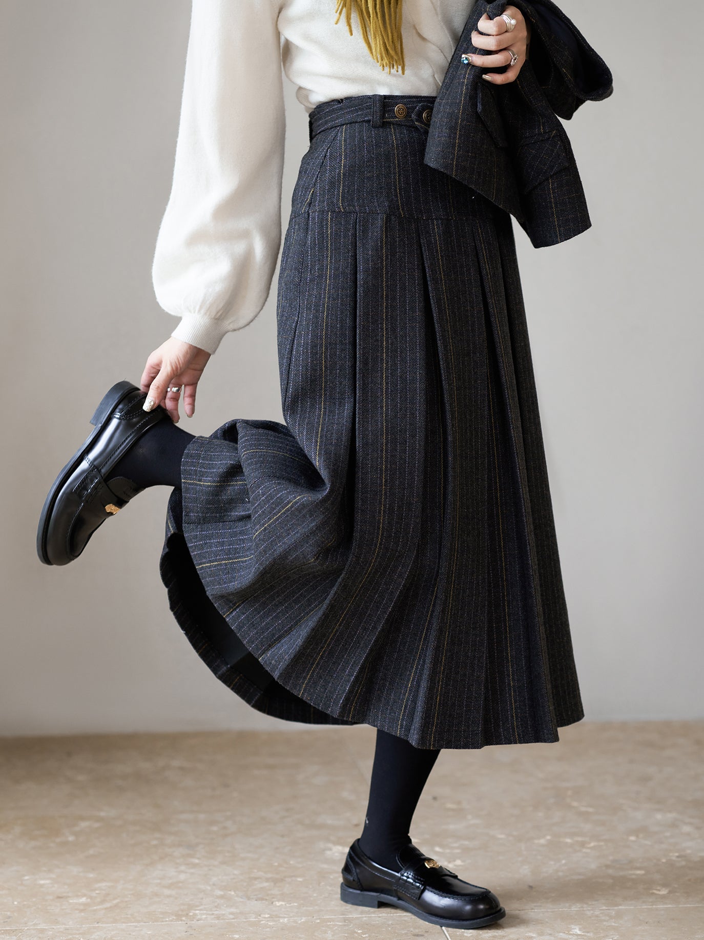 一着あると着回し抜群なプリーツスカート。