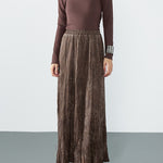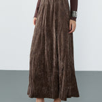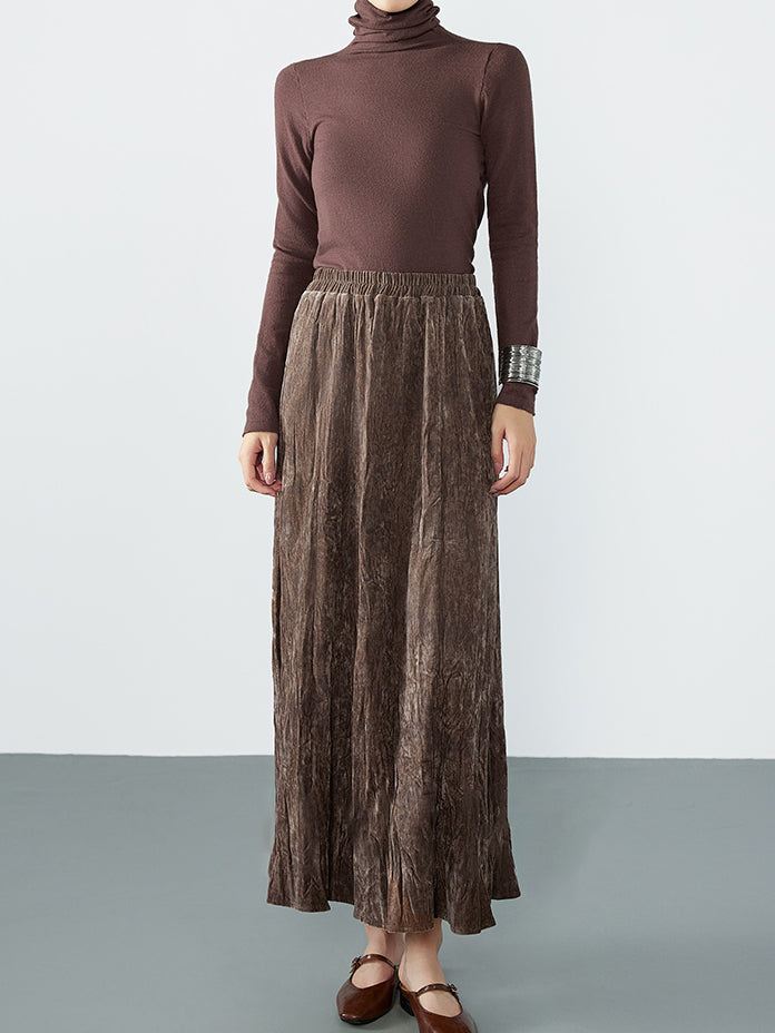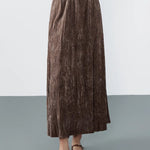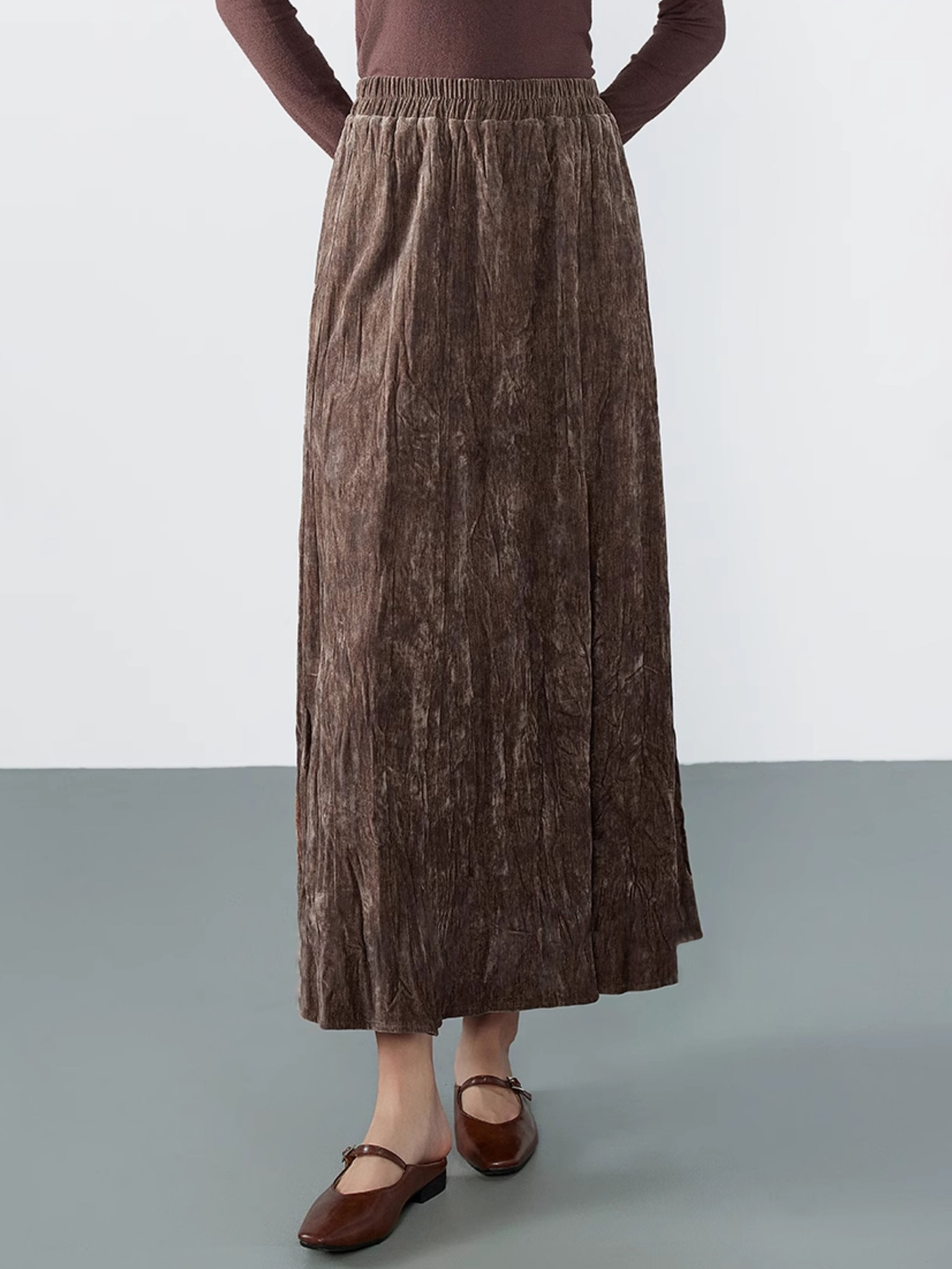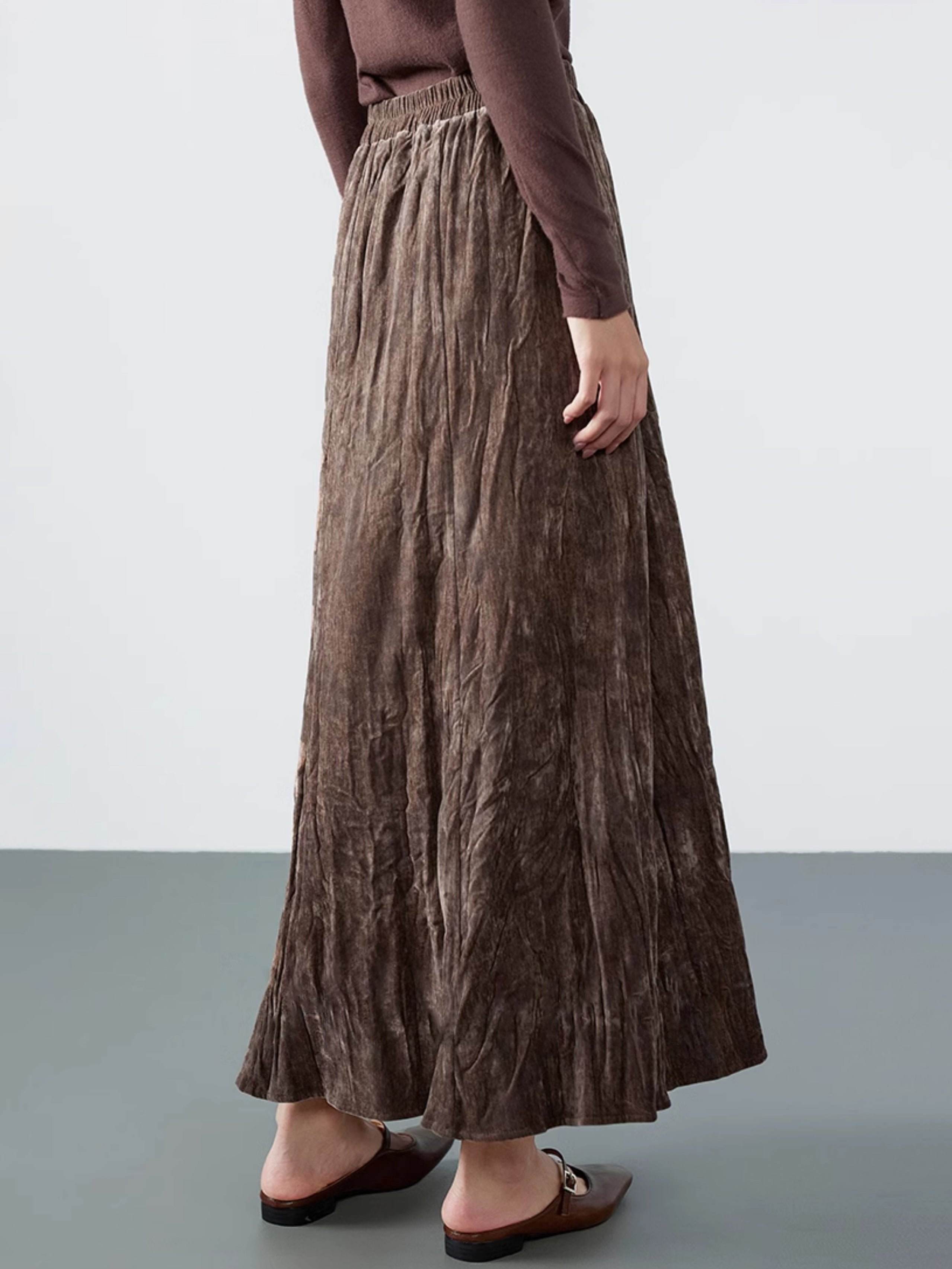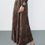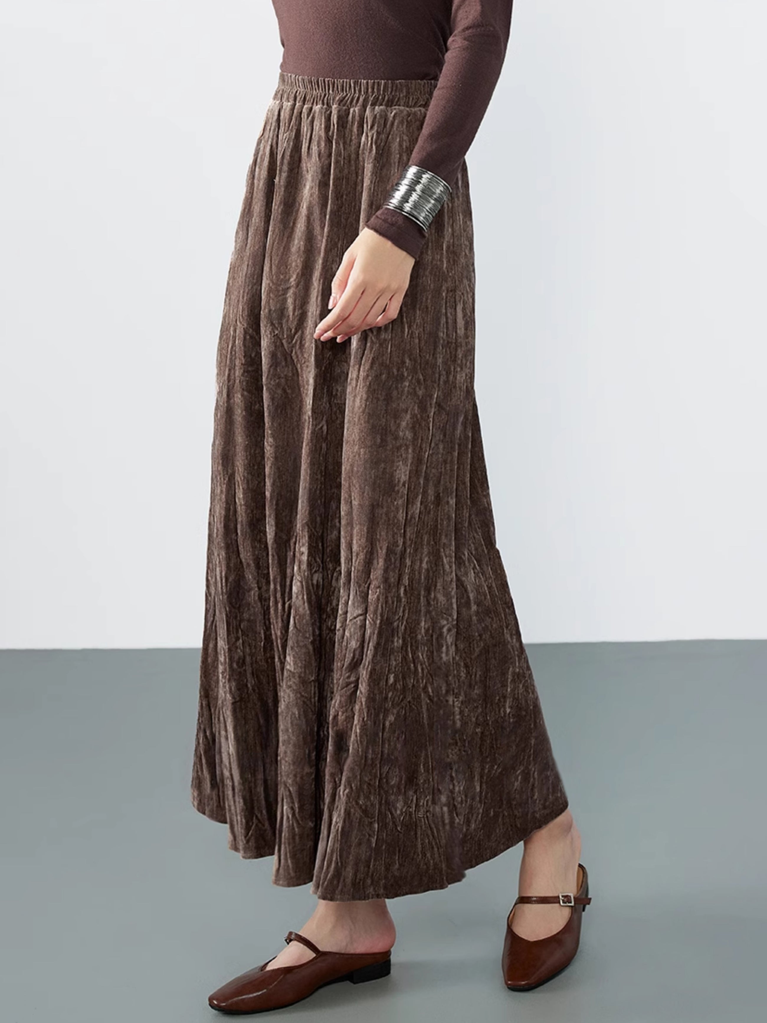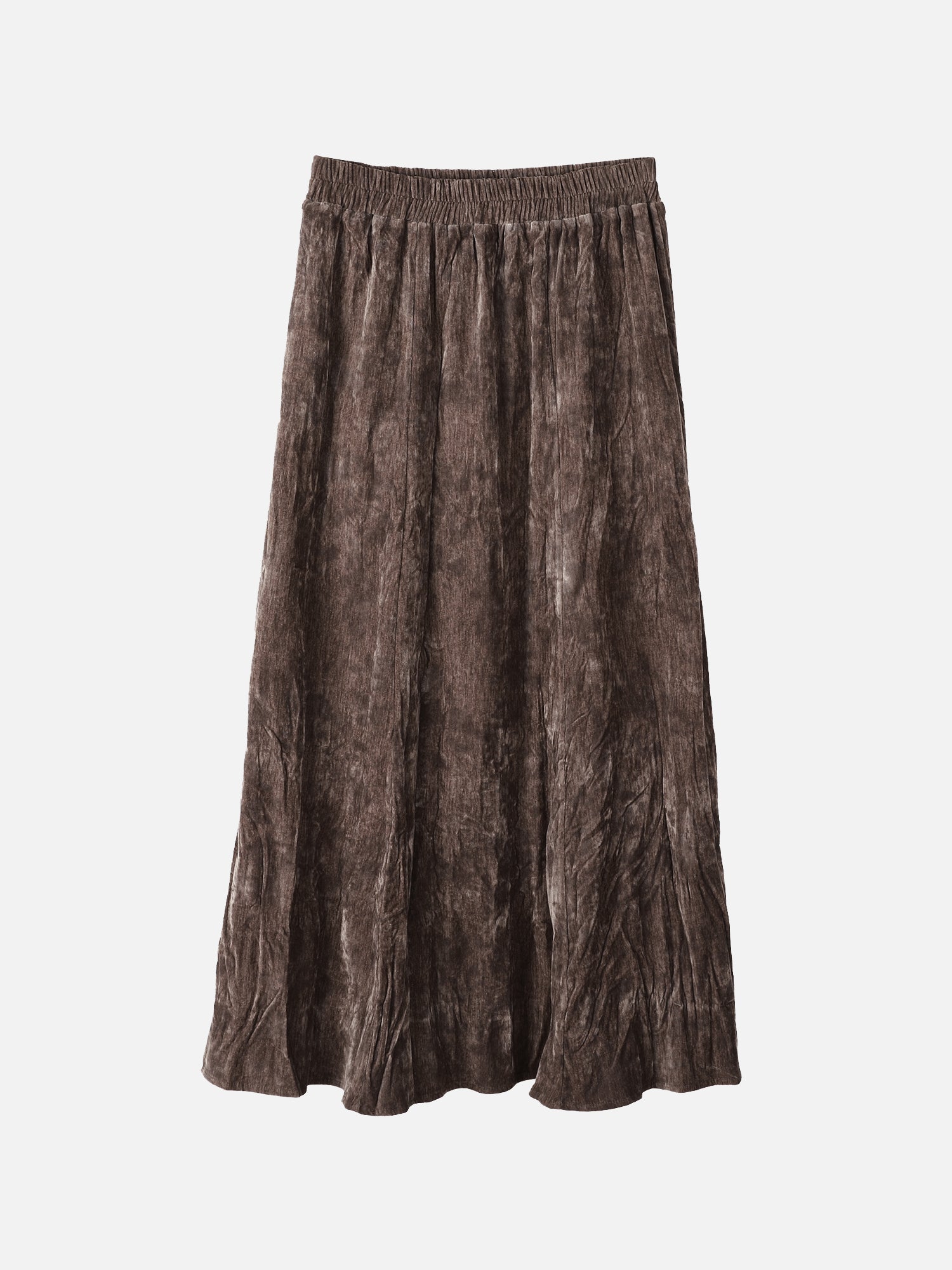 なめらかな光沢感が魅力のベロア素材を使用したフレアスカート。