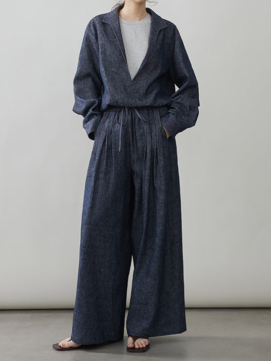 紐付きイージーデニムワイドパンツ<セットアップ可能>