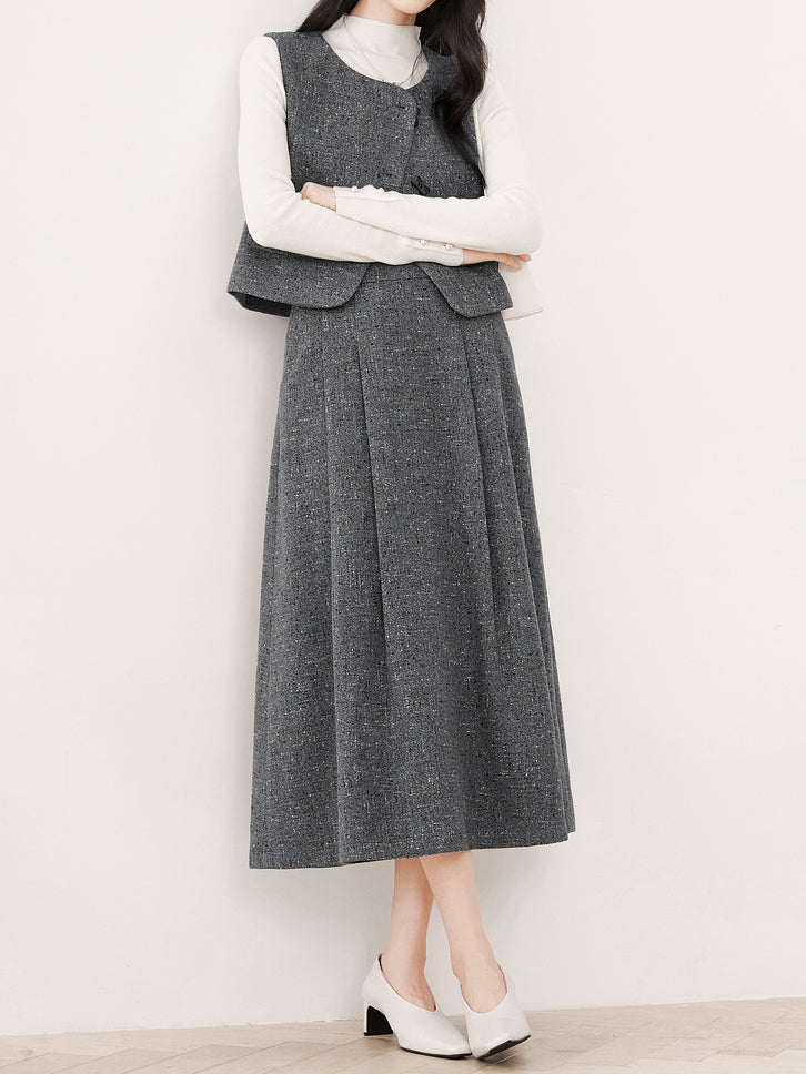 ツイードタックフレアスカート<セットアップ可能>